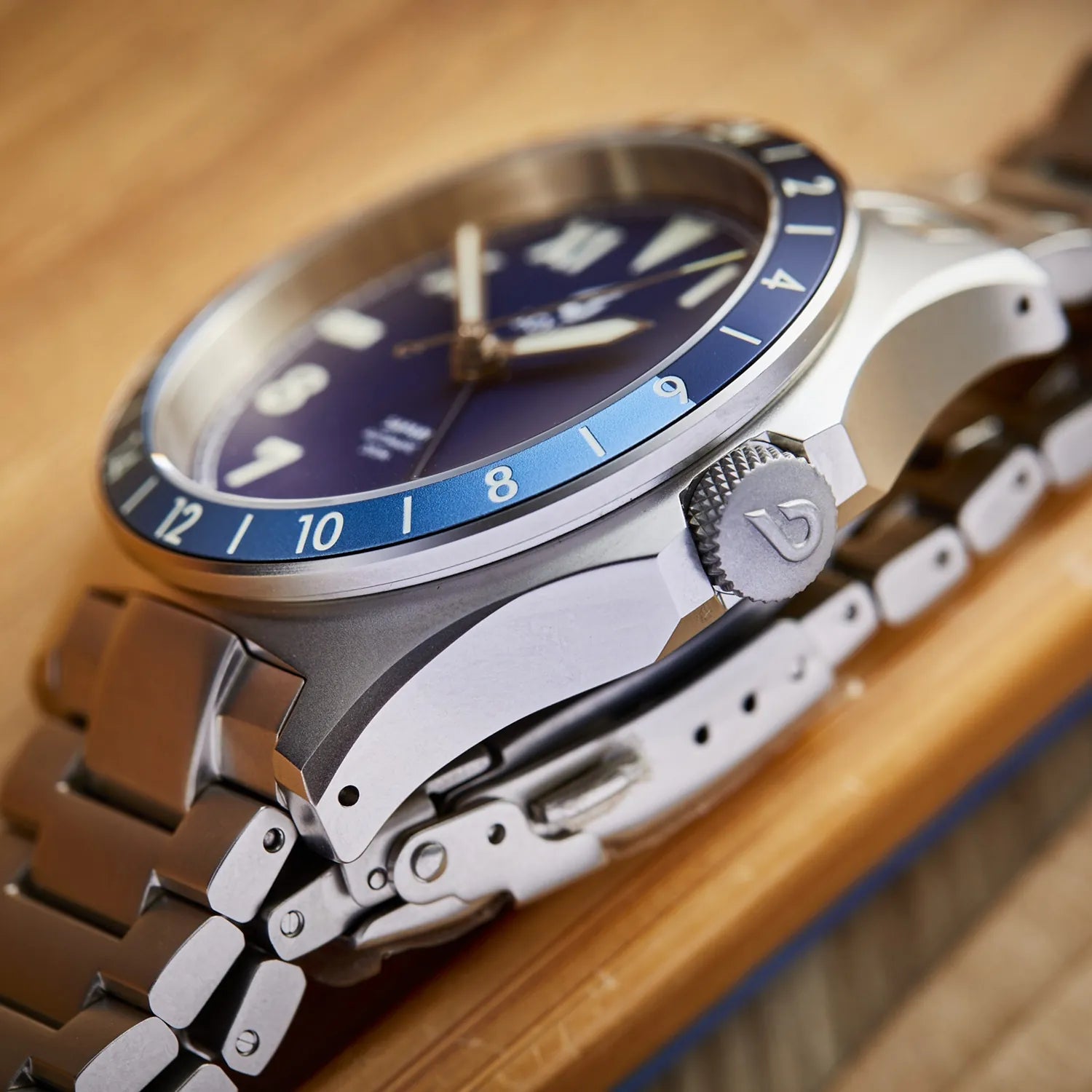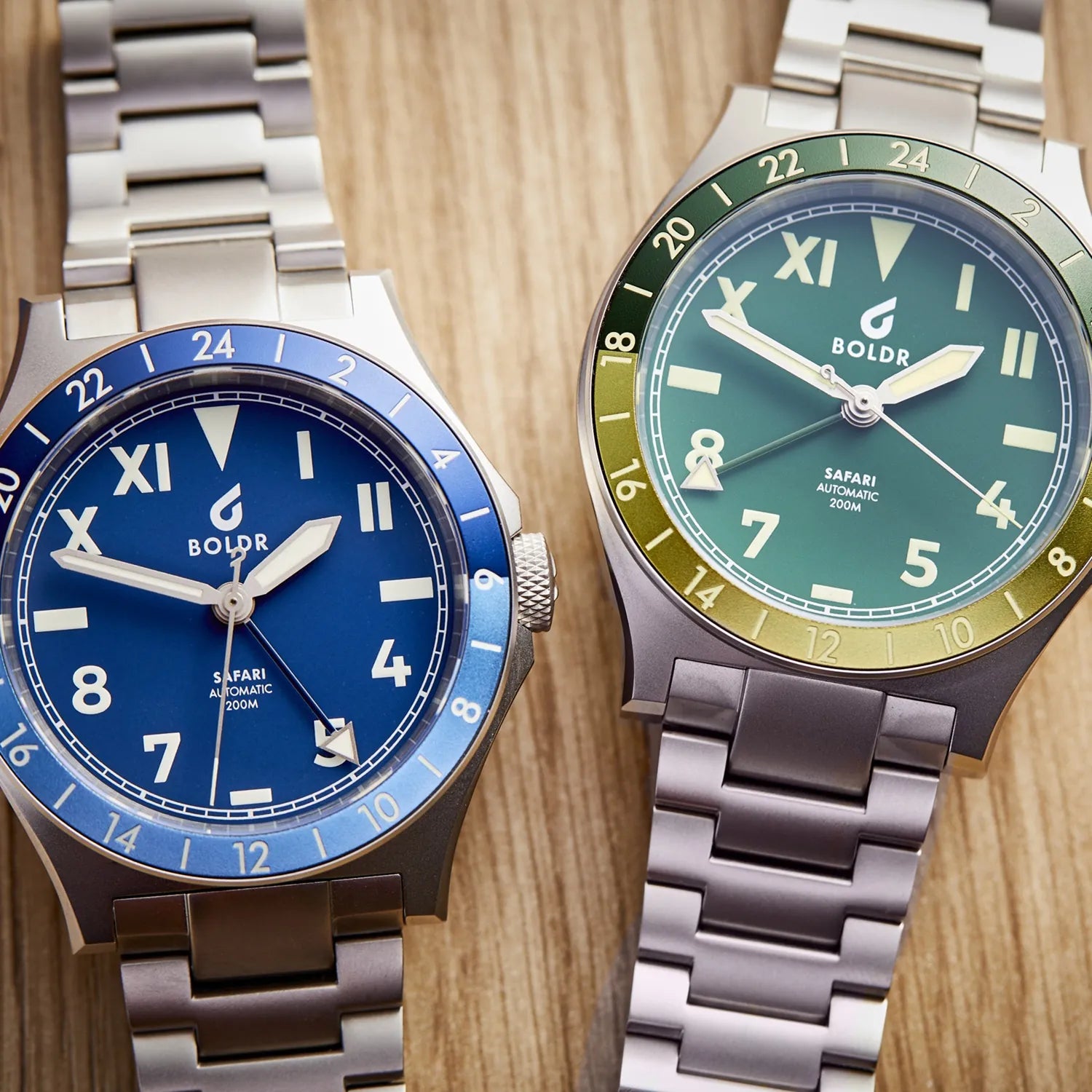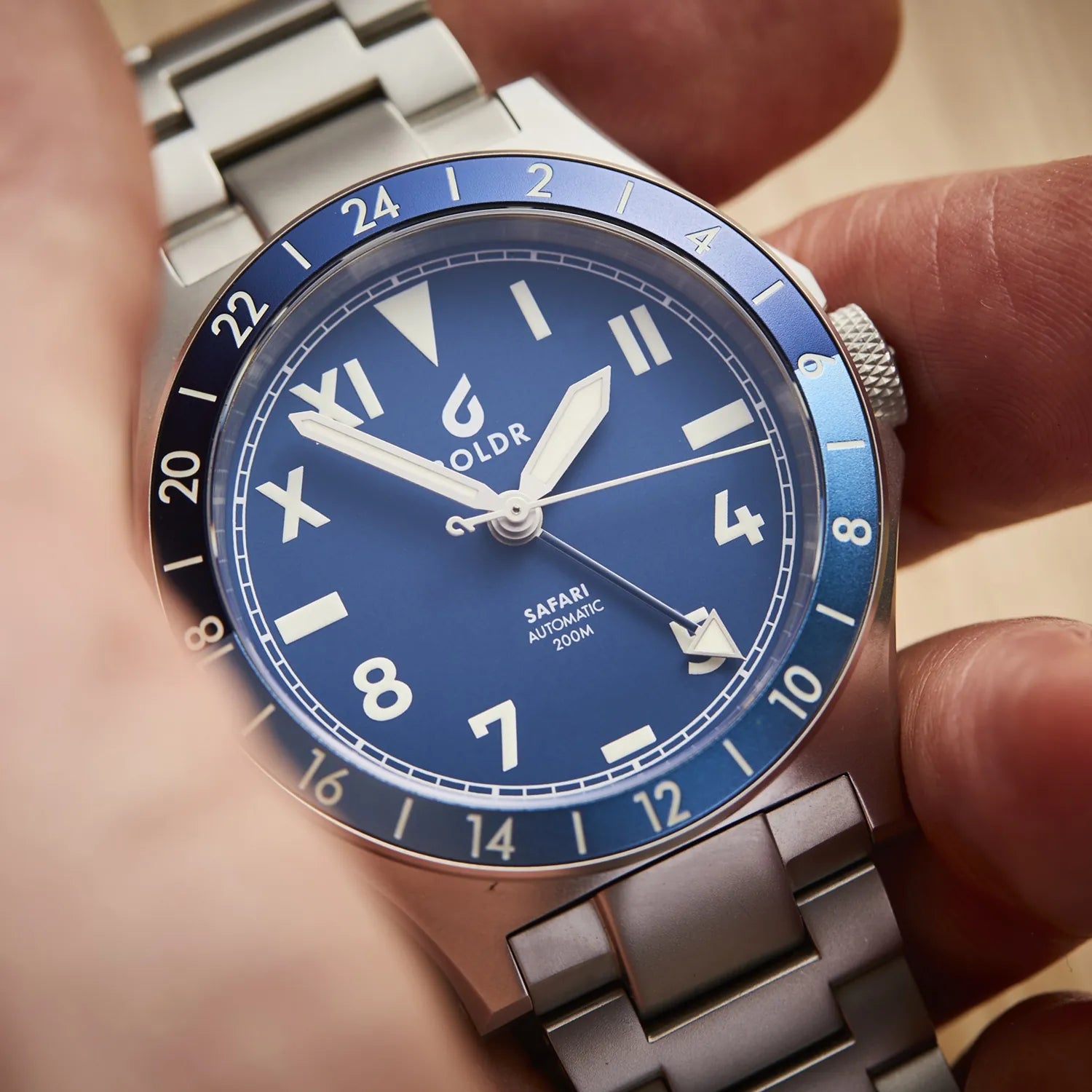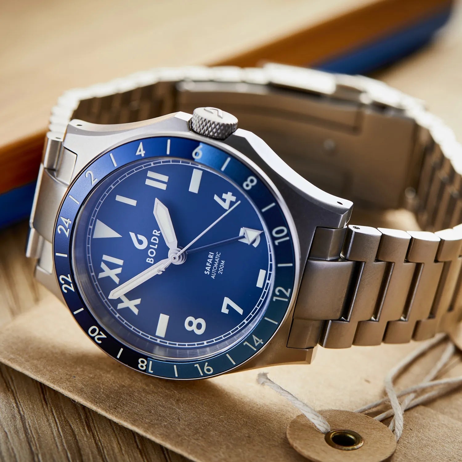 The Safari is a compact beast forged with tough stainless steel and a determination for exploration. Measuring 40mm across your wrist, this GMT edition has a fixed dual-tone bezel graduated for 24 hours, handy for tracking two timezones simultaneously.