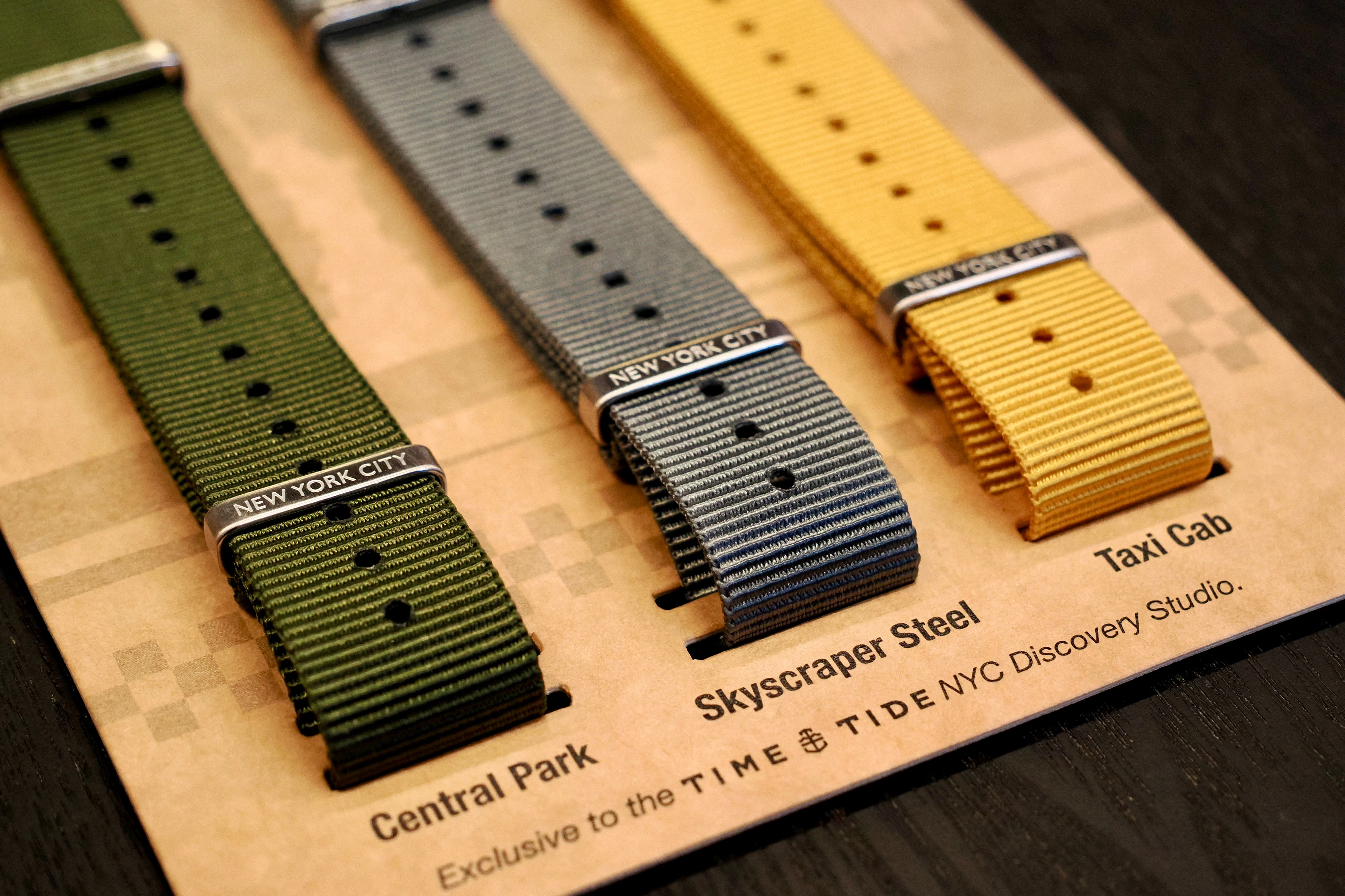 THE COLORWAYS: Arguably the home of modern watch culture, New York City inspired this exclusive 3-pack of straps through its everyday symbols: the green of Central Park, the grey of its soaring skyscrapers, and the yellow of its famous taxis. Available only at Time+Tide New York City.