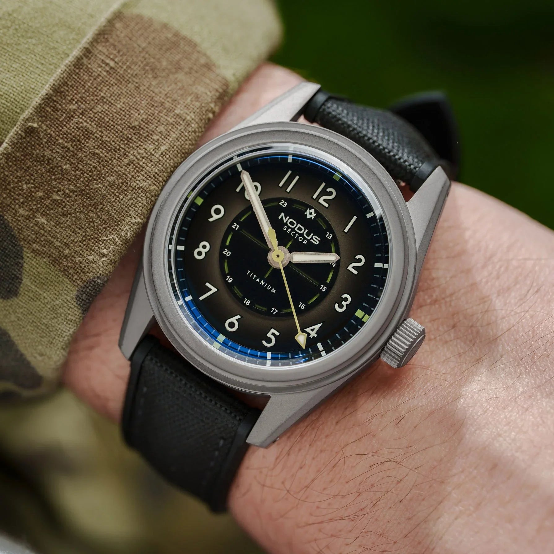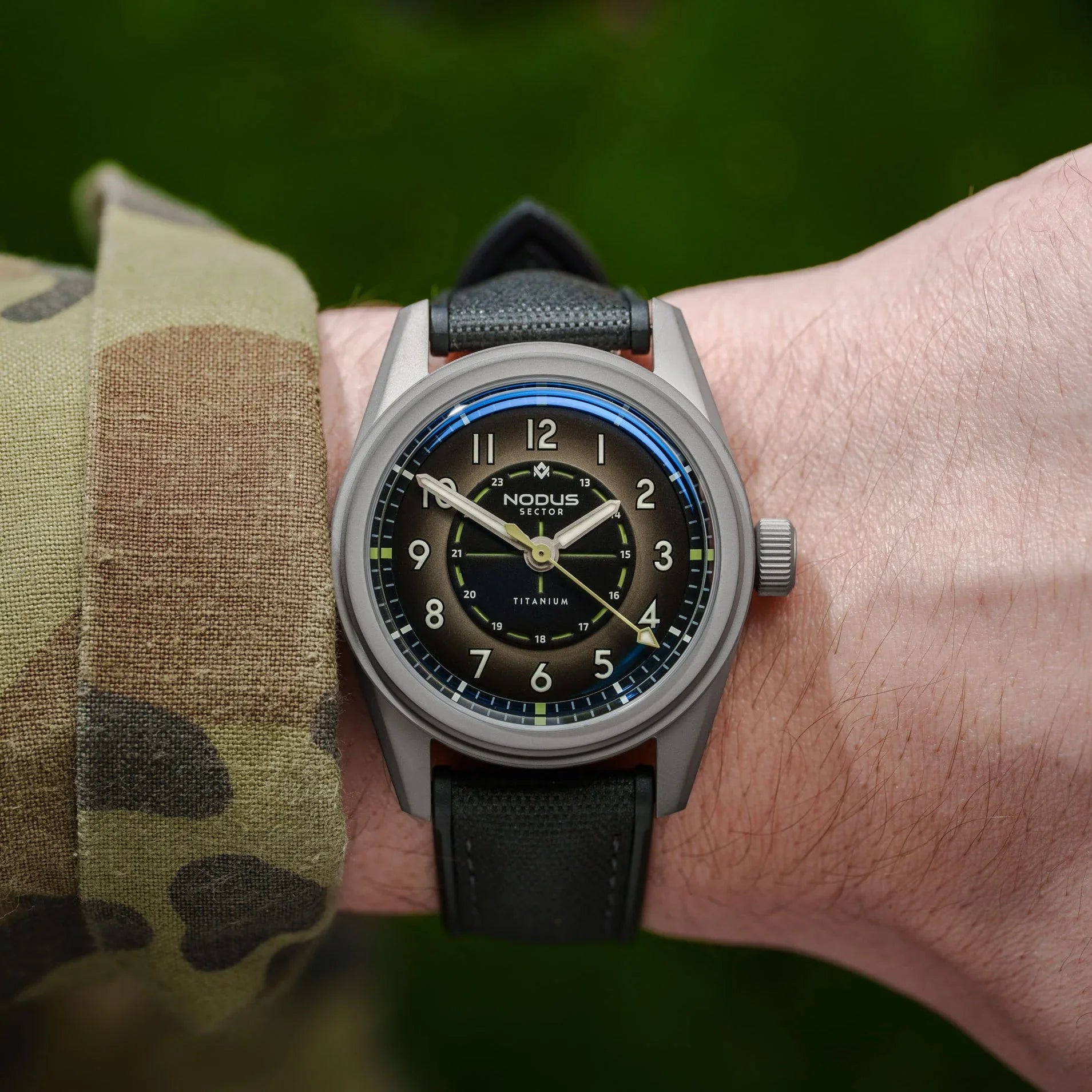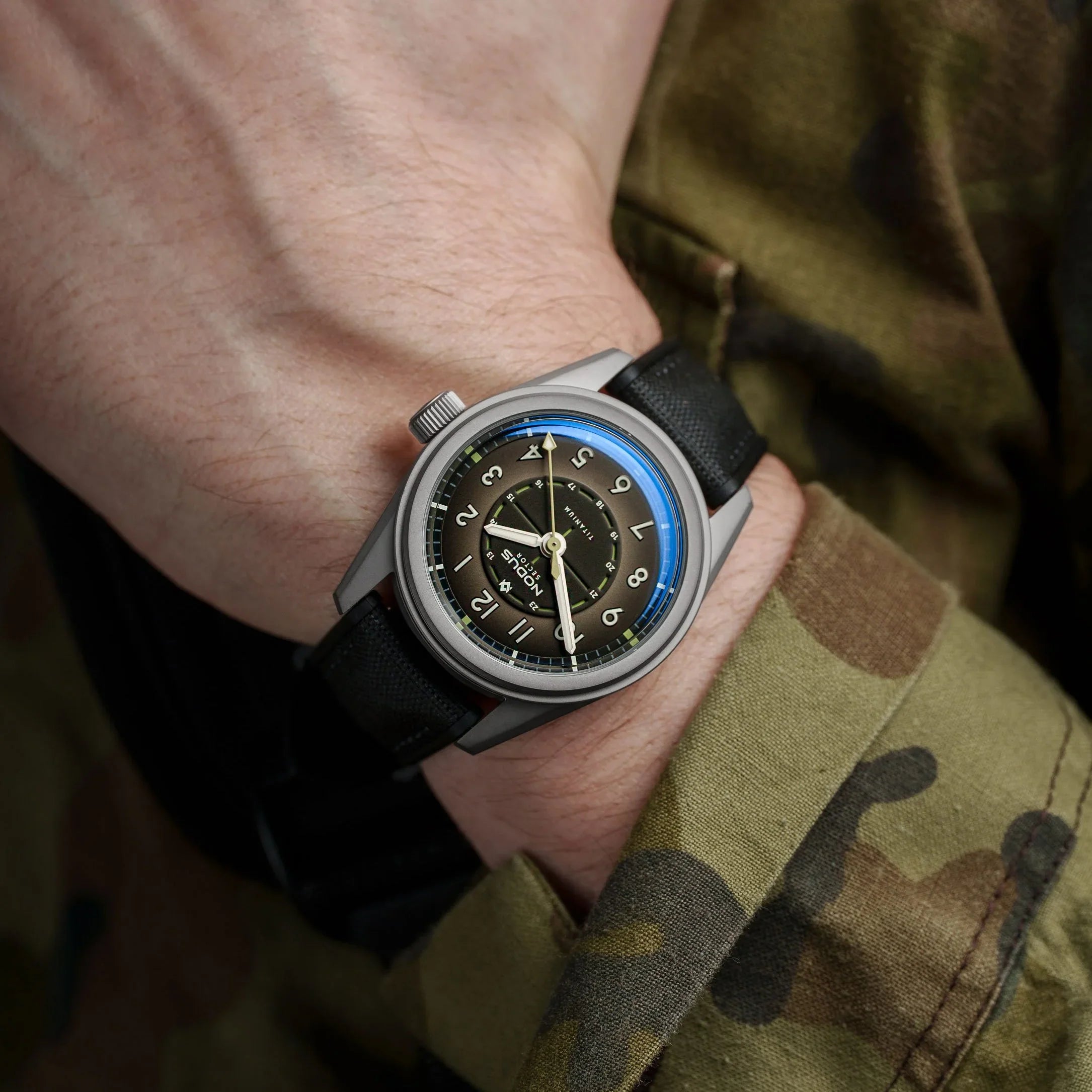 The Sector Field is back - this time utilizing the Sector II platform with lightweight titanium. Inspired by the rugged timepieces worn by soldiers in the heat of battle, the Sector II Field Titanium embodies that same spirit of reliability and unwavering functionality. Just as those original field watches were crucial tools for coordinating maneuvers and navigating treacherous conditions, the Sector II Field Titanium is built for today's adventures.