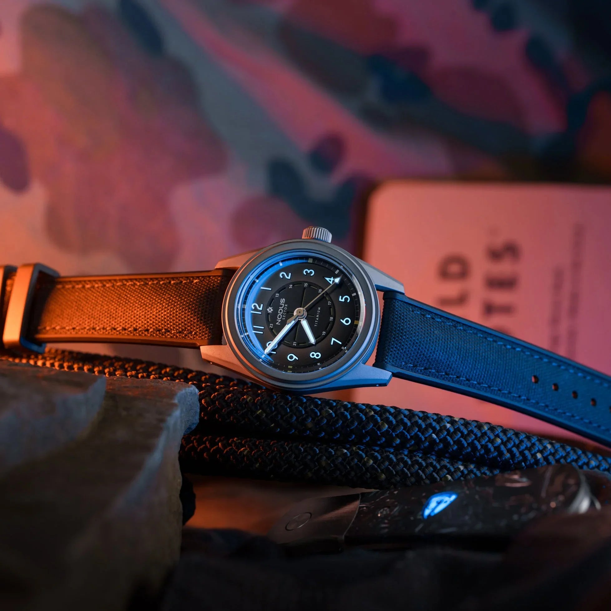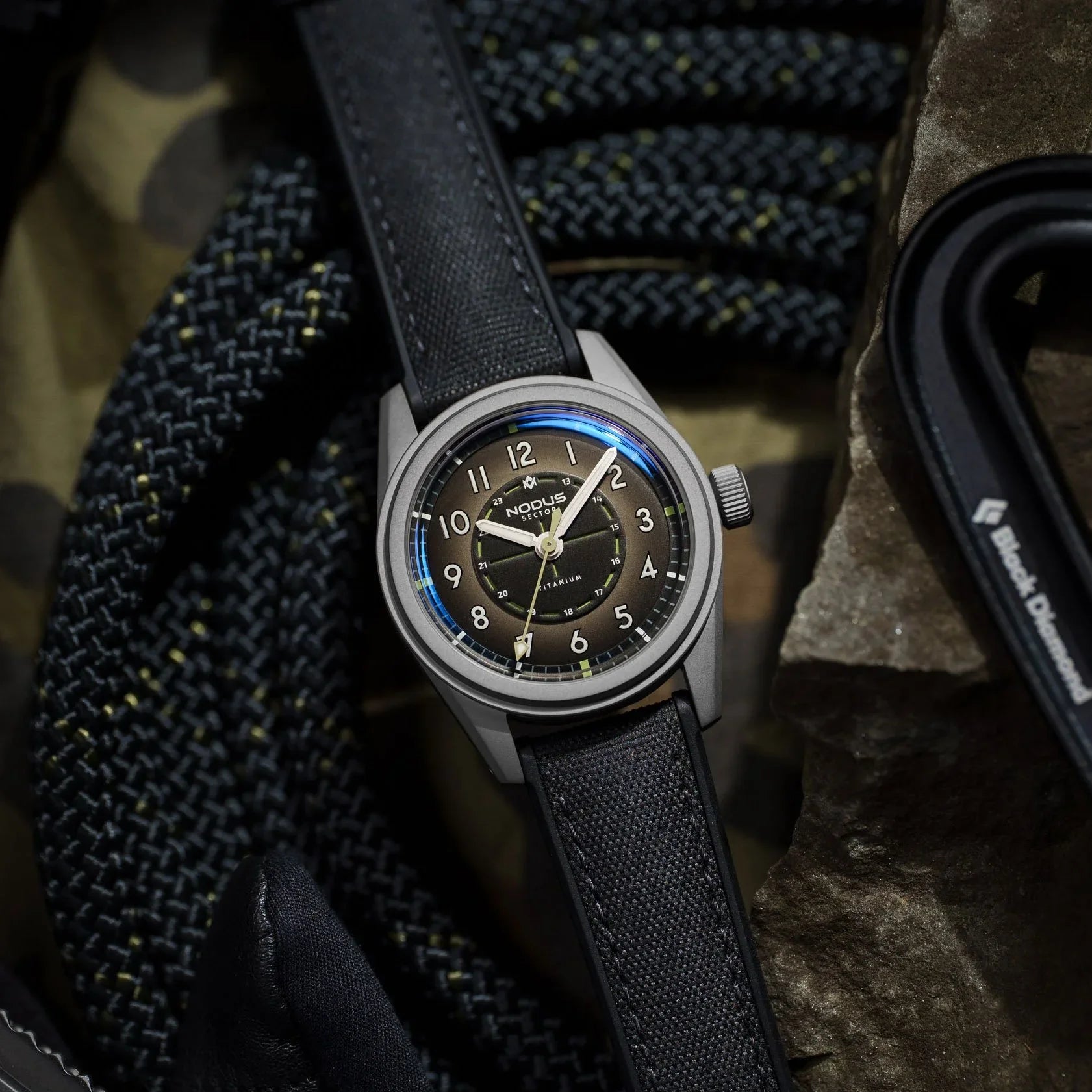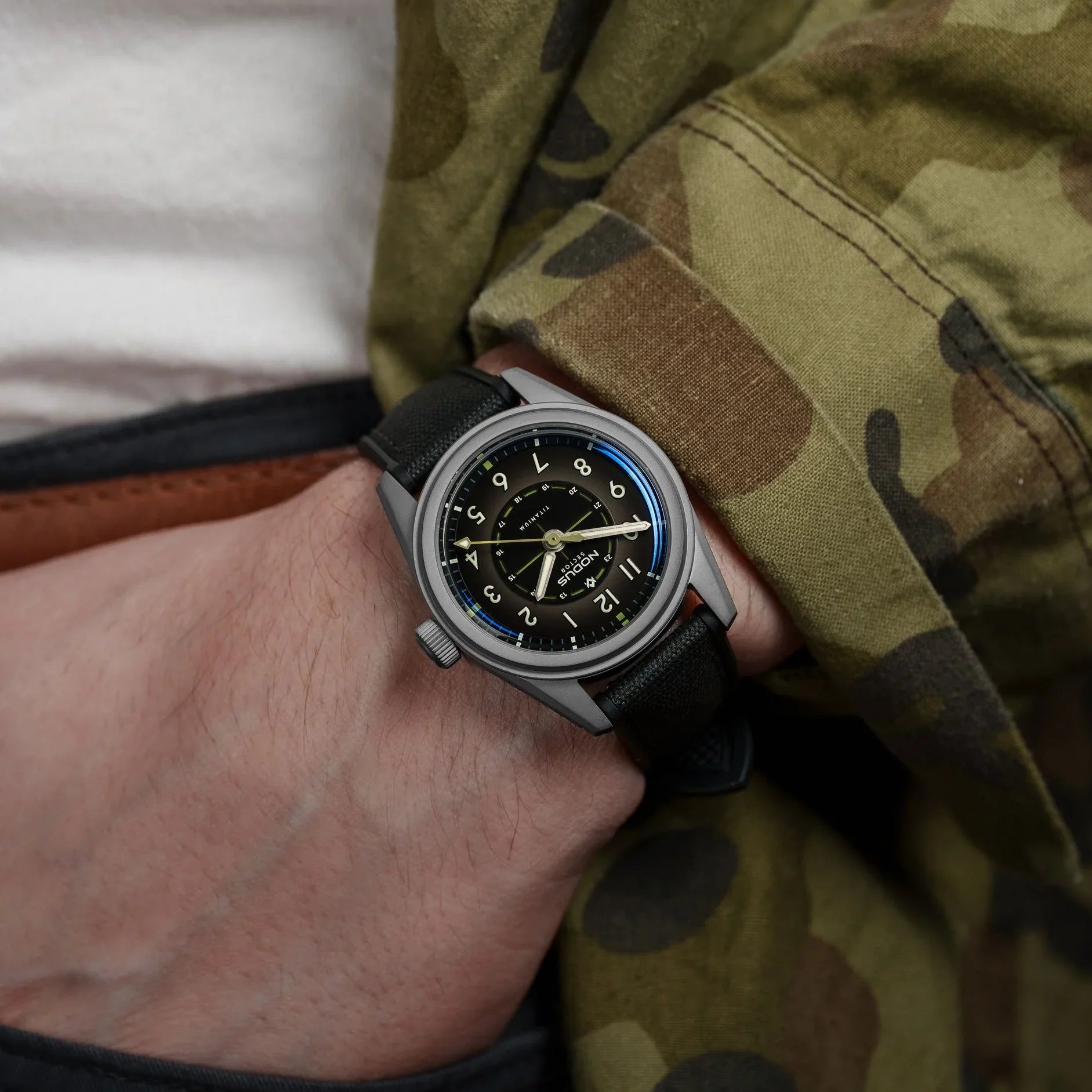 The Sector Field is back - this time utilizing the Sector II platform with lightweight titanium. Inspired by the rugged timepieces worn by soldiers in the heat of battle, the Sector II Field Titanium embodies that same spirit of reliability and unwavering functionality. Just as those original field watches were crucial tools for coordinating maneuvers and navigating treacherous conditions, the Sector II Field Titanium is built for today's adventures.