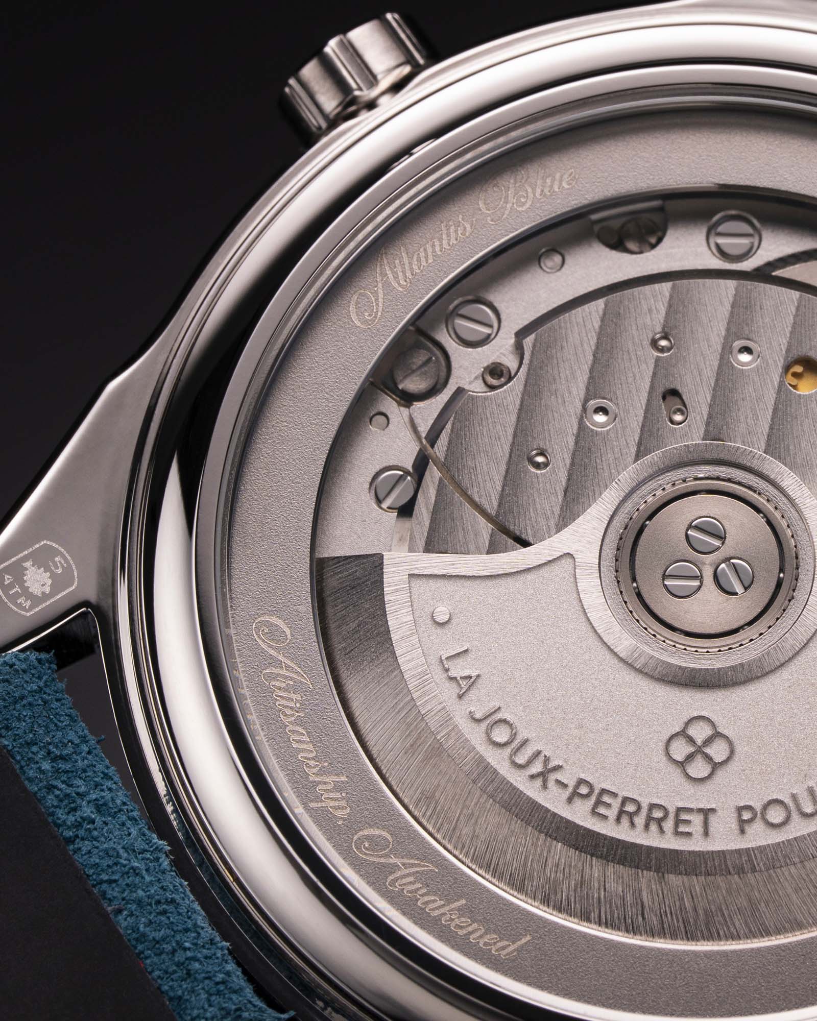 Powering the Atlantis Blue is the La Joux-Perret G101 automatic movement, known for its reliability and impressive 68-hour power reserve.