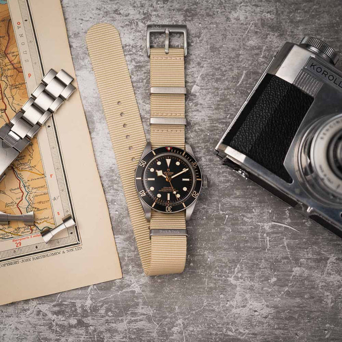 Discover the pinnacle of nylon strap engineering at Tme+Tide with Bark & Jack’s Ribbed Nylon lineup. Crafted from high-strength ballistic nylon in a unique ribbed weave, the NATO straps are built for extreme durability. Complete with stainless steel hardware and heat-sealed holes, the Ribbed Nylon is the ultimate choice for those who constantly pish their watches to the limits.