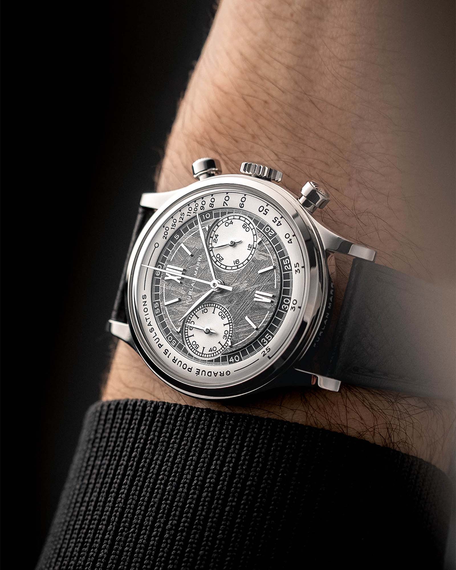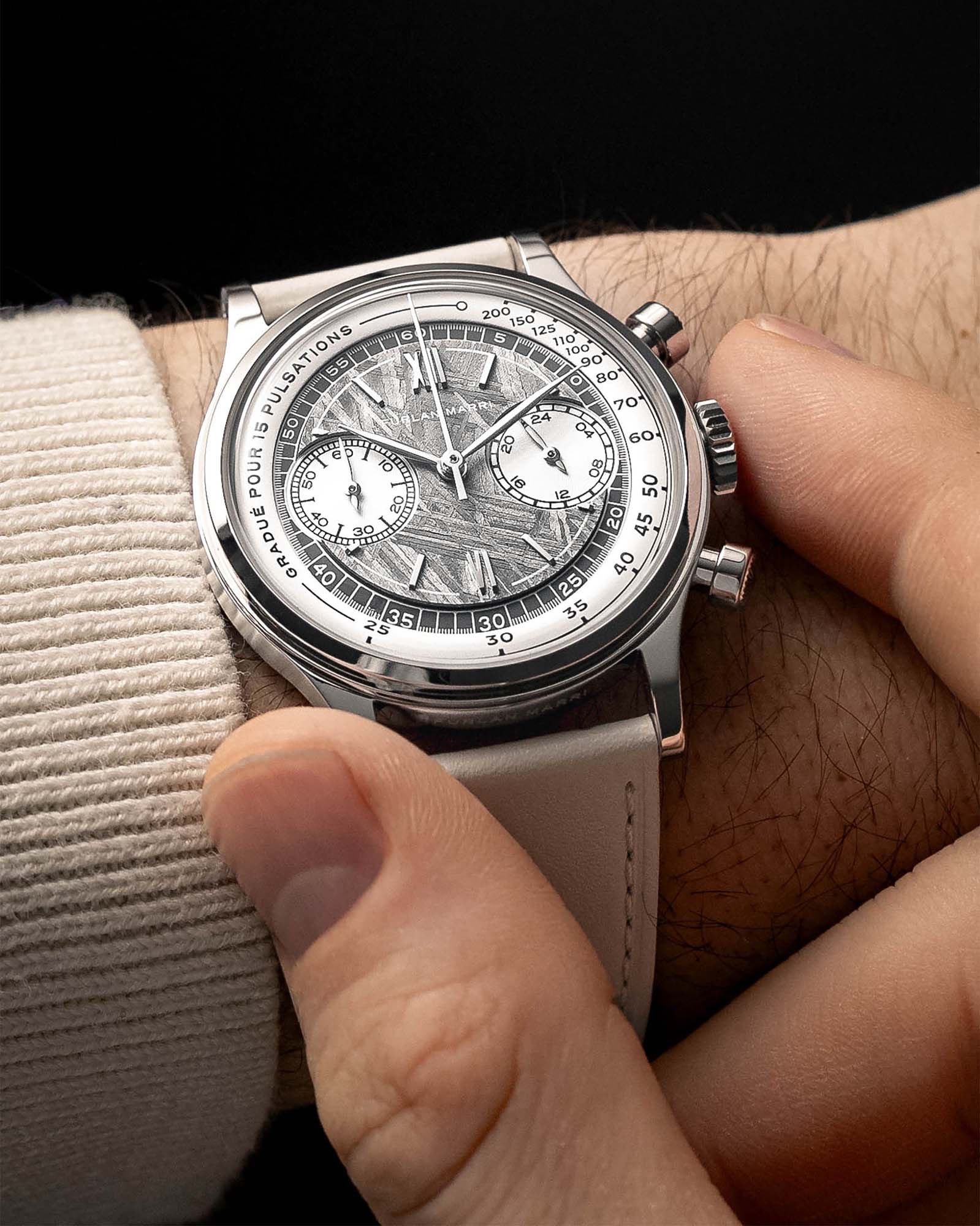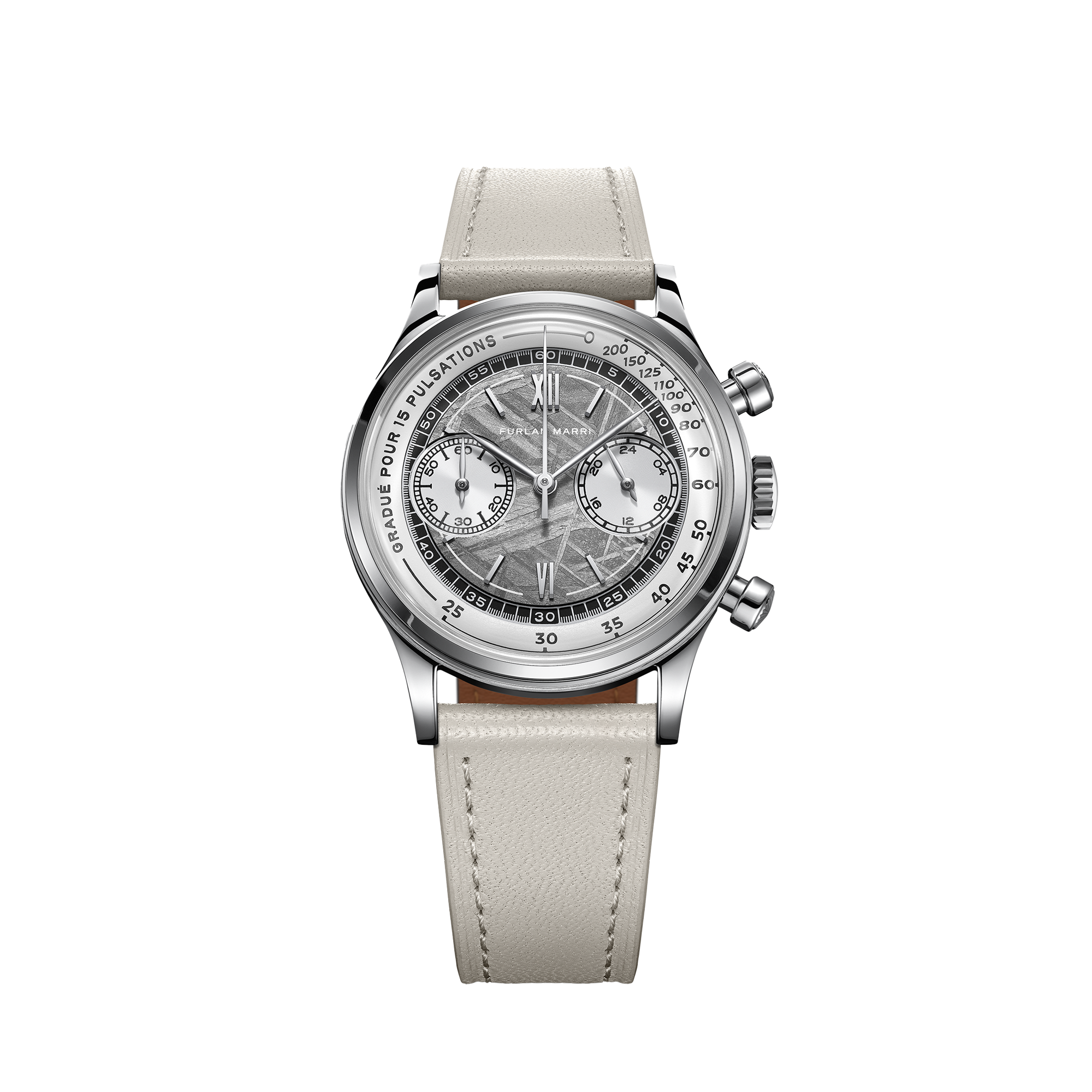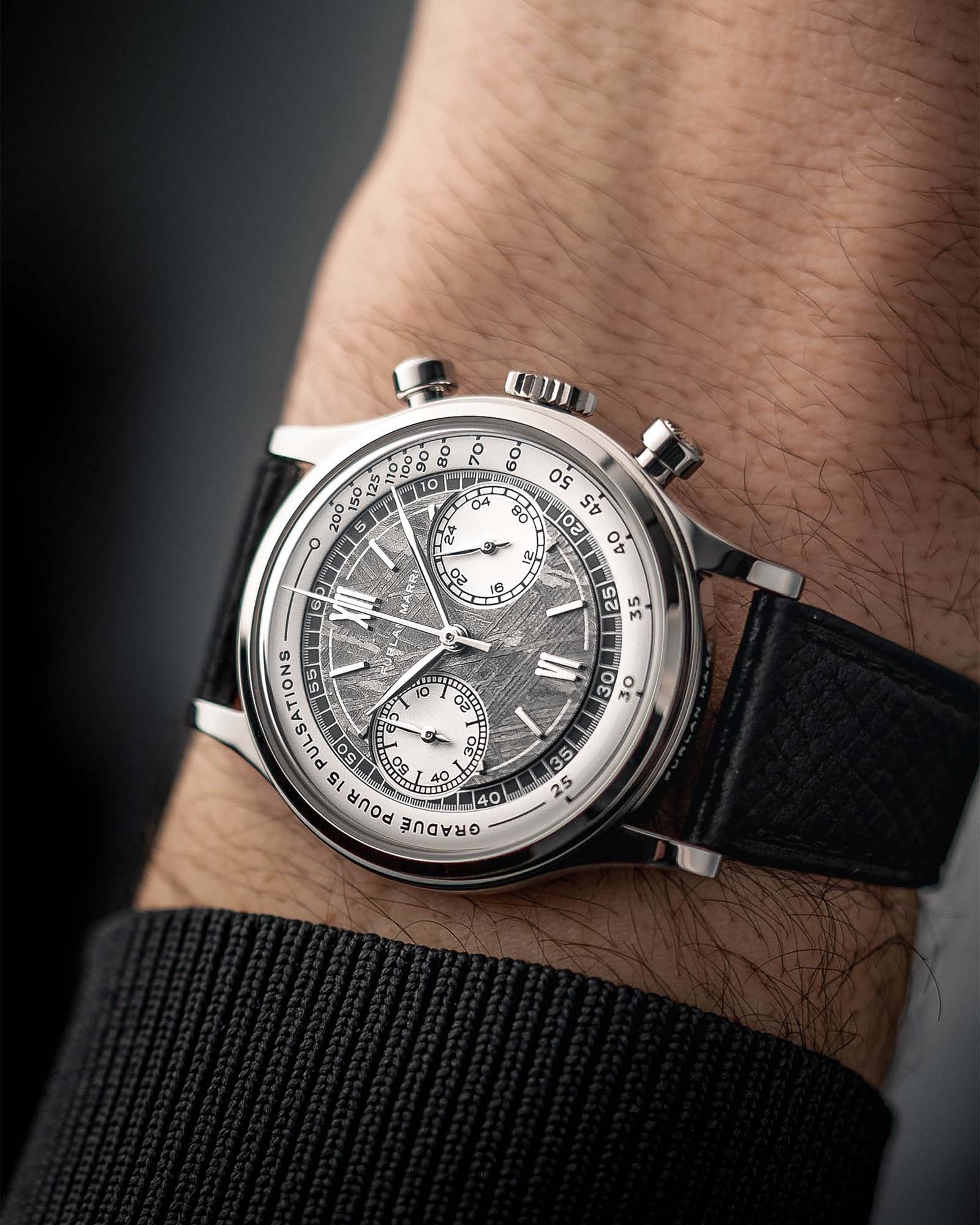 Expect a smooth sweeping chronograph seconds hand, crisp pusher action, and instant reset — alongside a pulsometer scale, a nod to traditional watchmaking functionality.
