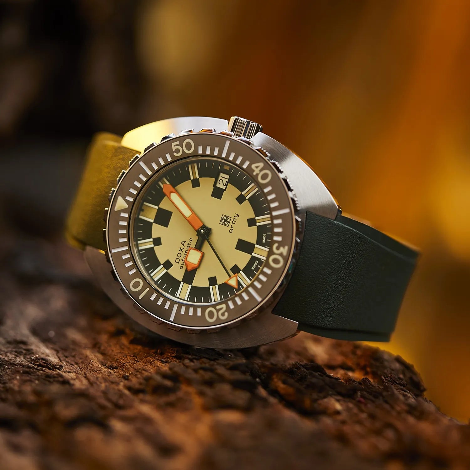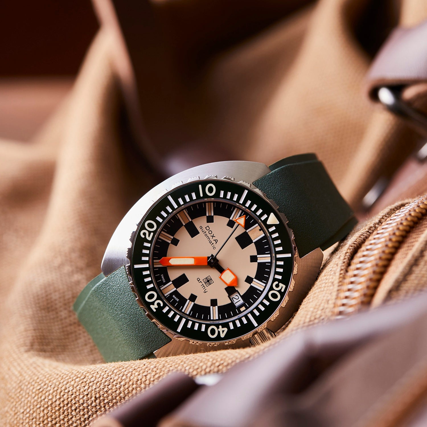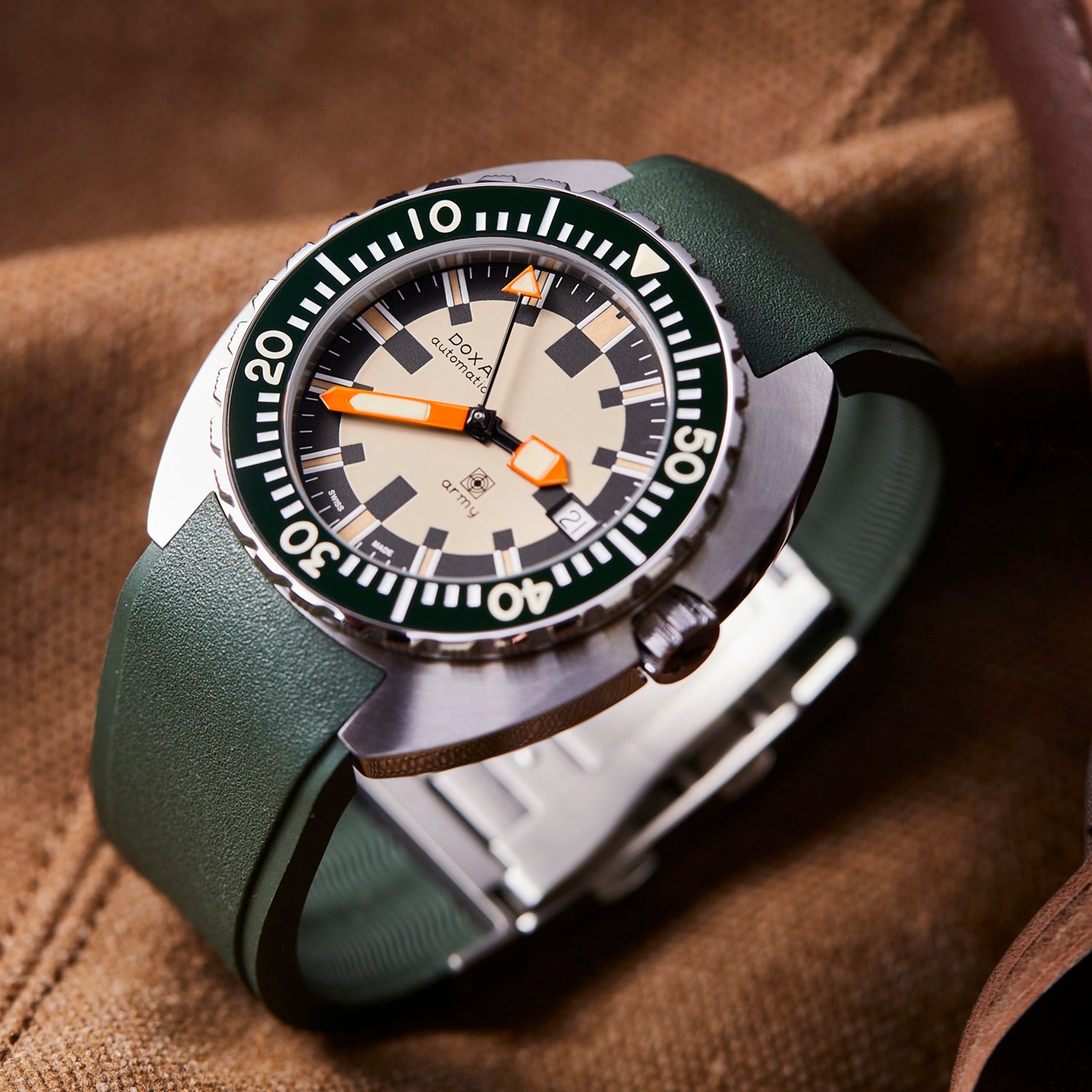 The DOXA Army follows through on the design aesthetic of the original, adding a subtle touch of modernity and performance in tune with today.