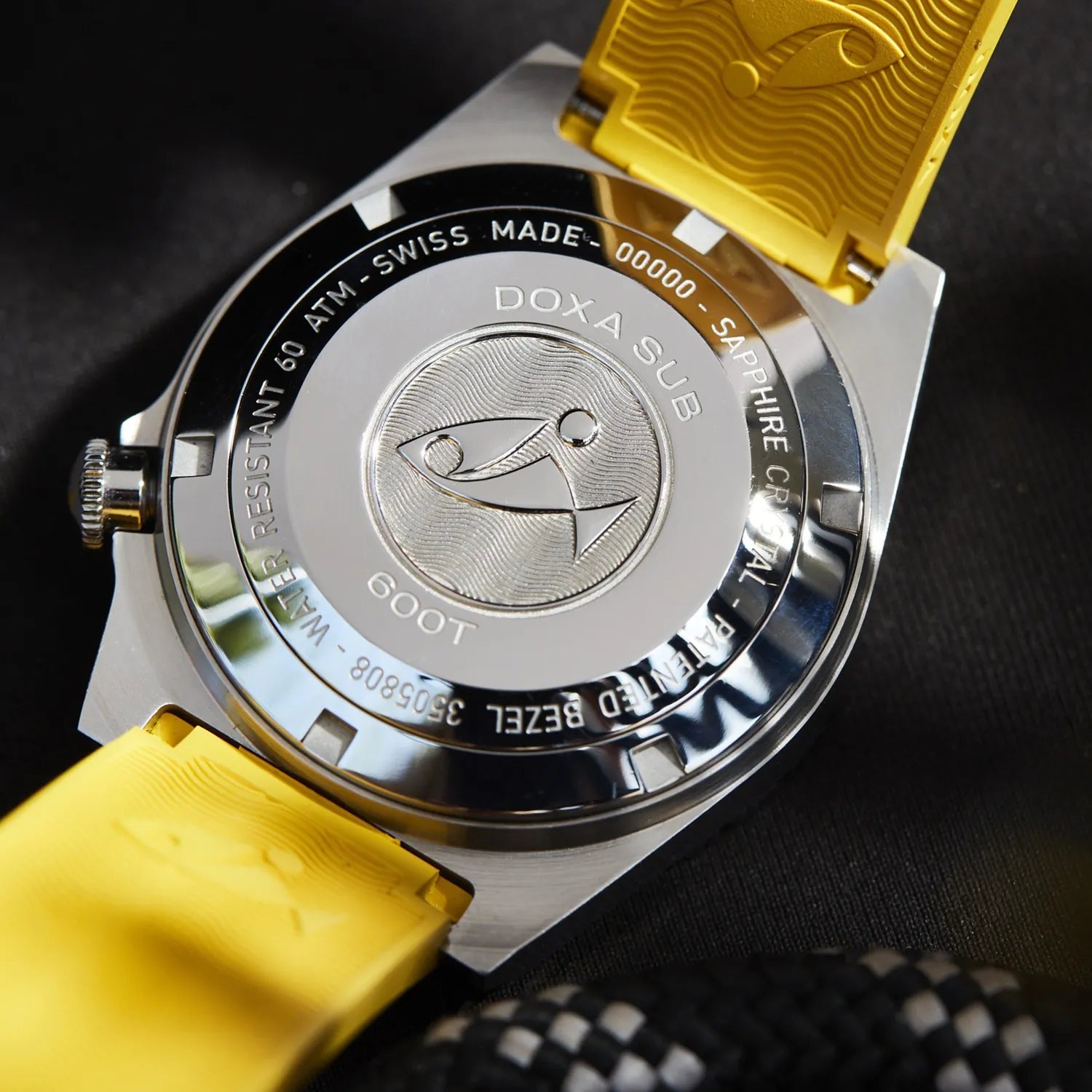At 40mm, the case diameter of the DOXA SUB 600T remains unchanged – judging by the perceived expanse of the dial, one would never guess that this is in fact the smallest diameter in the family. Made of 316L stainless steel and topped with a sapphire crystal, the case, and thus the movement it protects, is pressure-resistant to 60 bar (600 meters). This leaves plenty of margin, even for the most ambitious diver as to the depths to explore. The crown is still at 4 o'clock and the patented rotating bezel unidirectional as it should be – to calculate a safe ascent without decompression stops. The bezel, with dual indication of the dive time (minutes) and depth (feet), can be ordered either with a sandblasted steel insert or with a black ceramic insert.