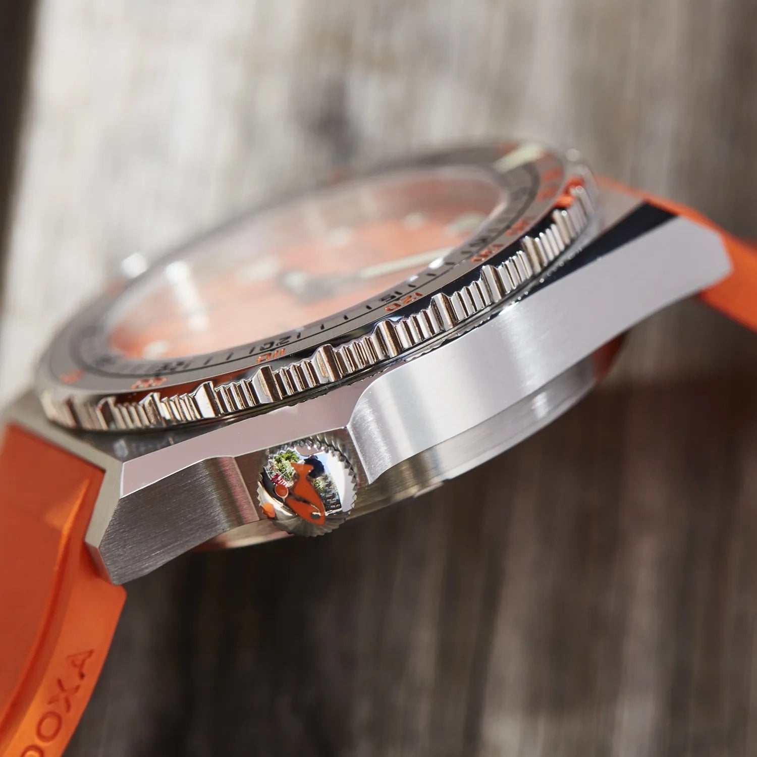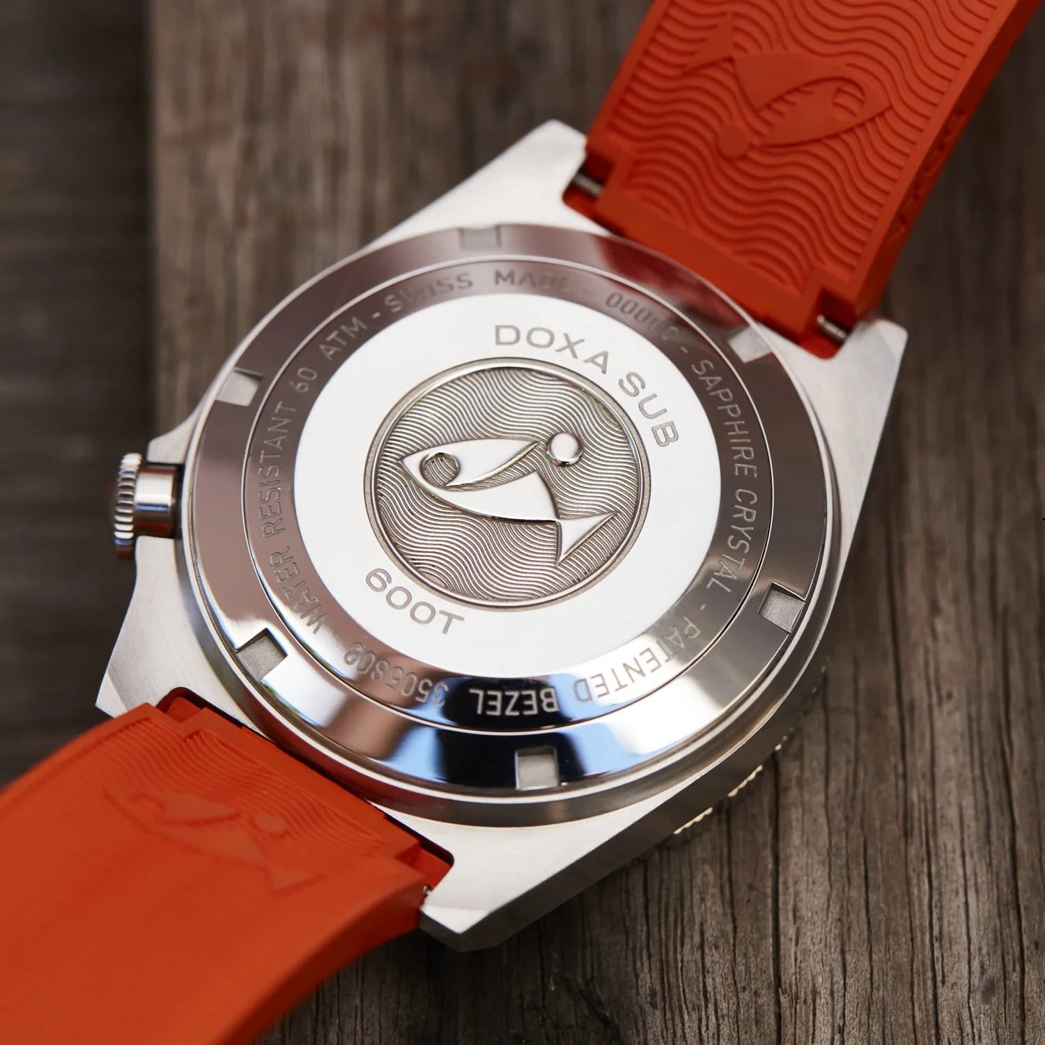 At 40mm, the case diameter of the DOXA SUB 600T remains unchanged – judging by the perceived expanse of the dial, one would never guess that this is in fact the smallest diameter in the family. Made of 316L stainless steel and topped with a sapphire crystal, the case, and thus the movement it protects, is pressure-resistant to 60 bar (600 meters). This leaves plenty of margin, even for the most ambitious diver as to the depths to explore. The crown is still at 4 o'clock and the patented rotating bezel unidirectional as it should be – to calculate a safe ascent without decompression stops. The bezel, with dual indication of the dive time (minutes) and depth (feet), can be ordered either with a sandblasted steel insert or with a black ceramic insert.