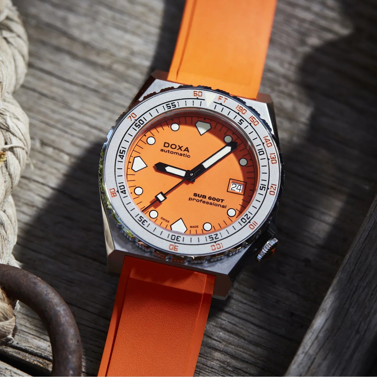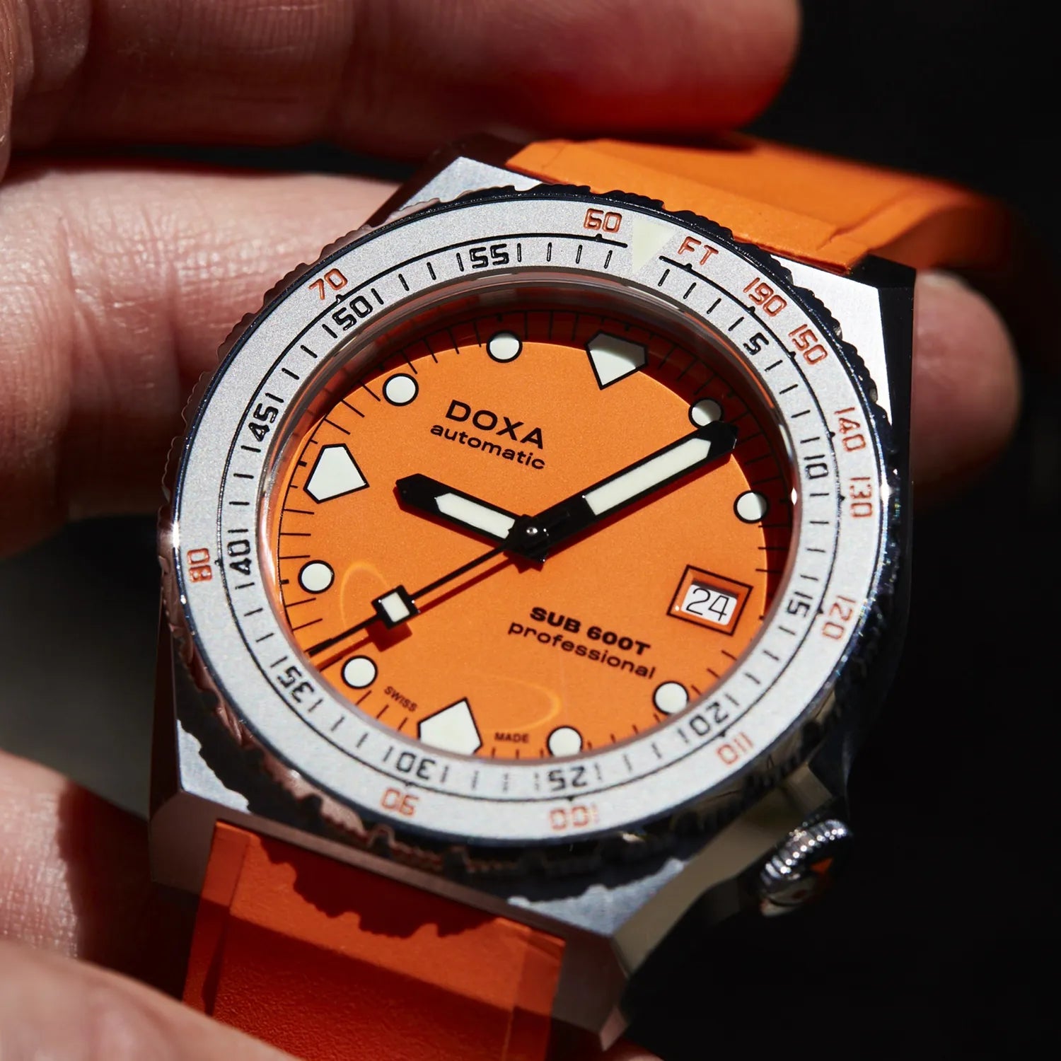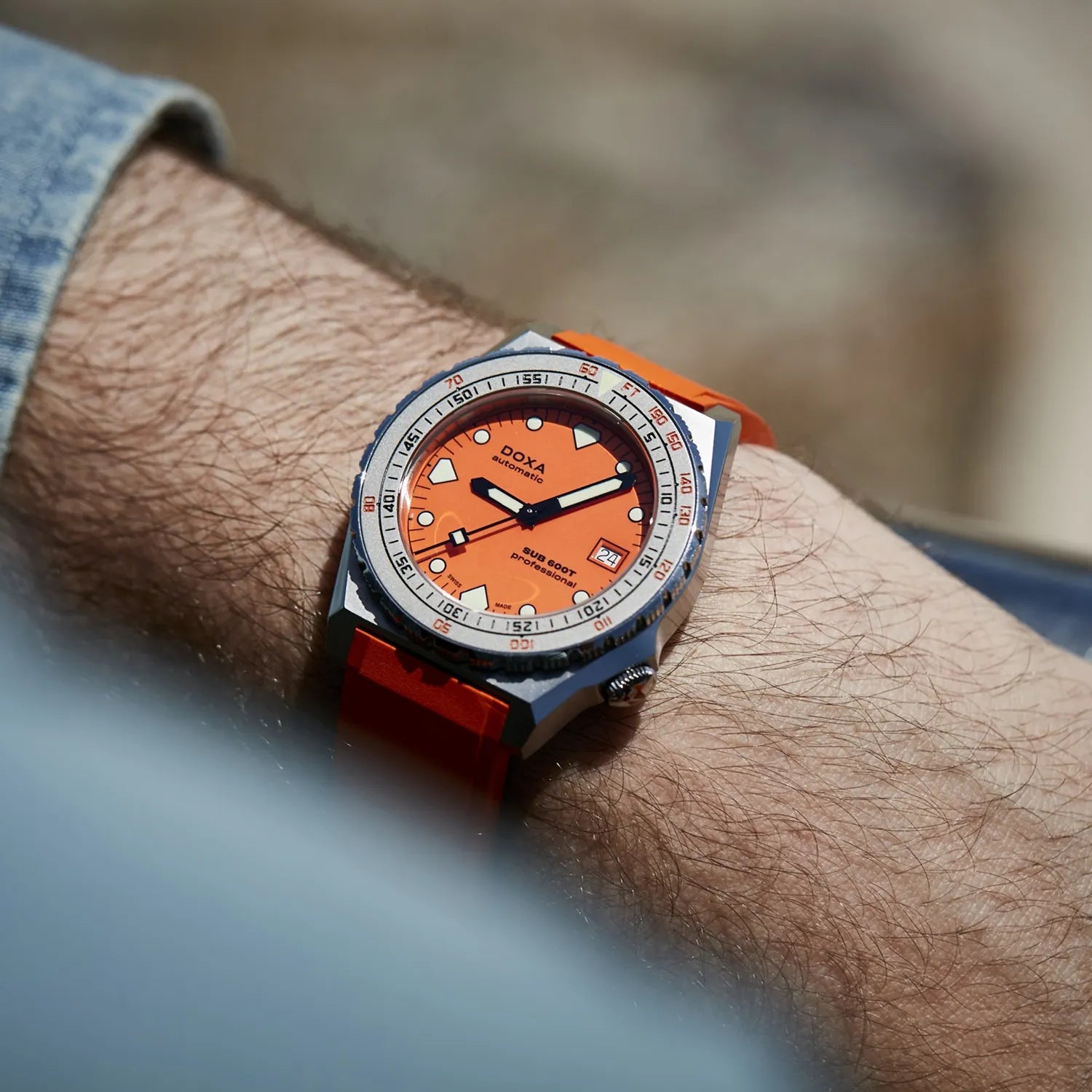 The SUB 600T with 3 hands and date remains true as ever to the aesthetic of the SUB 600T that defined DOXA in the 80s and became an icon of its era. At the same time, it comes with features that make this the reliable, desirable and eminently wearable diver’s watch for today.