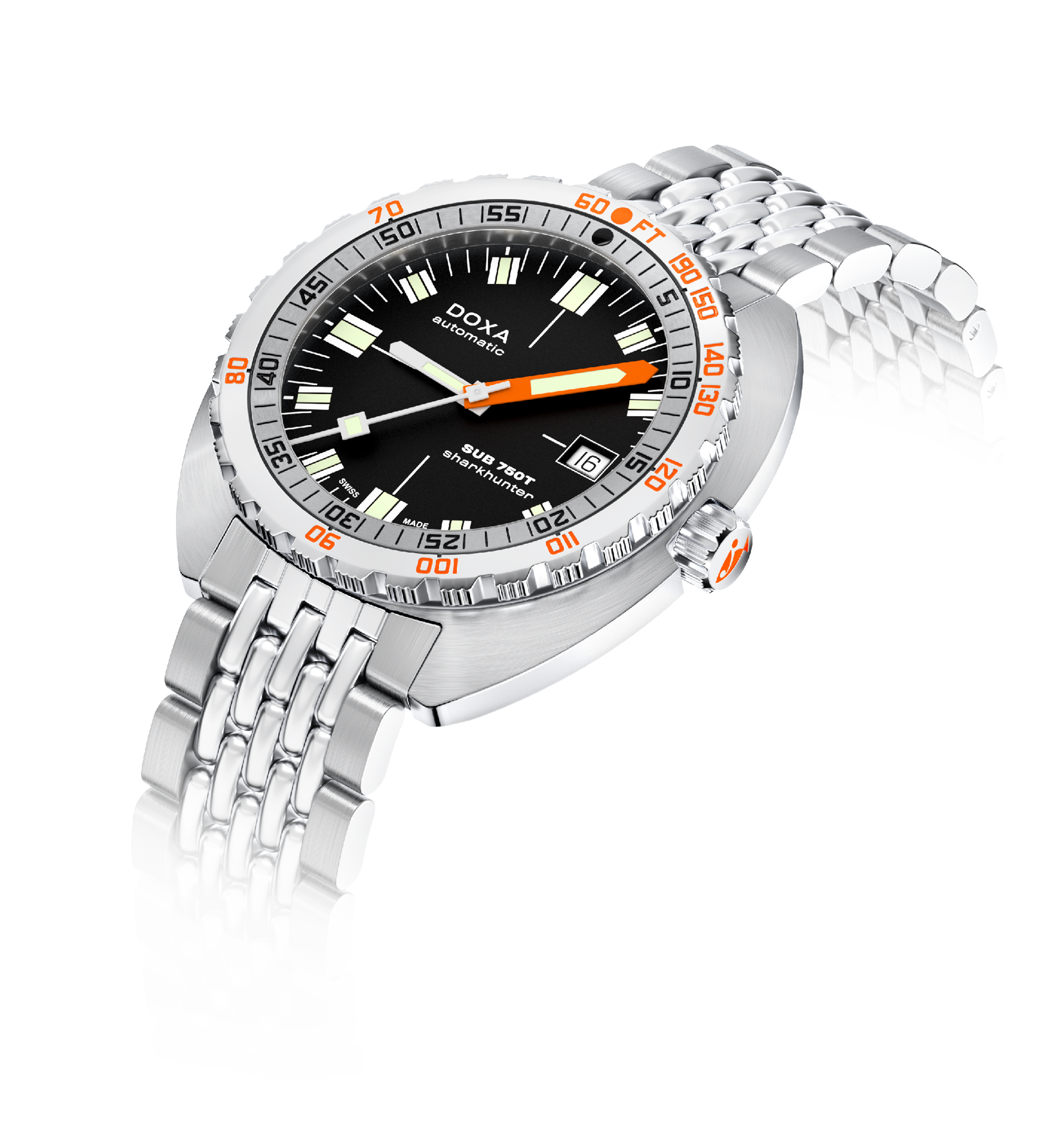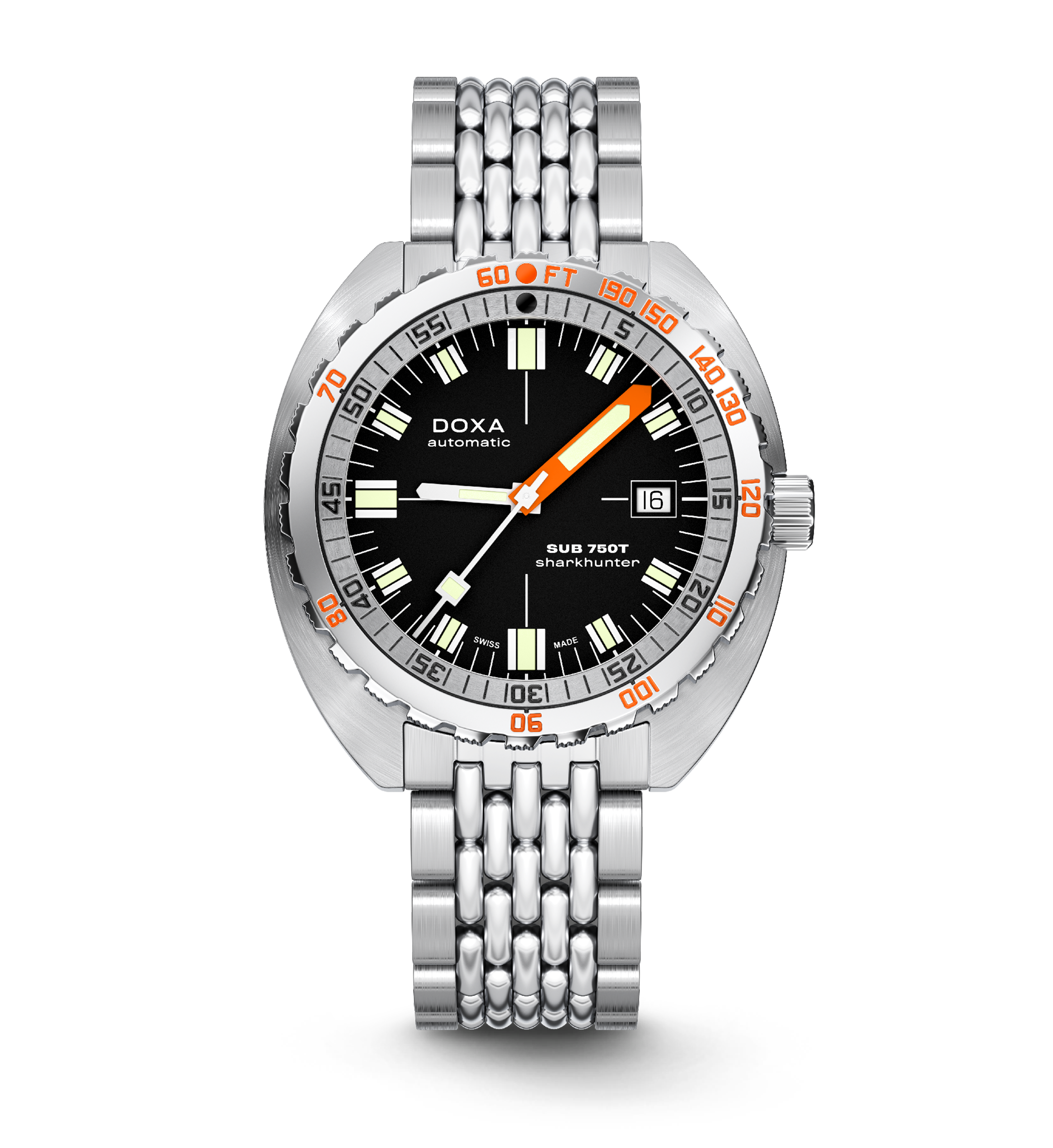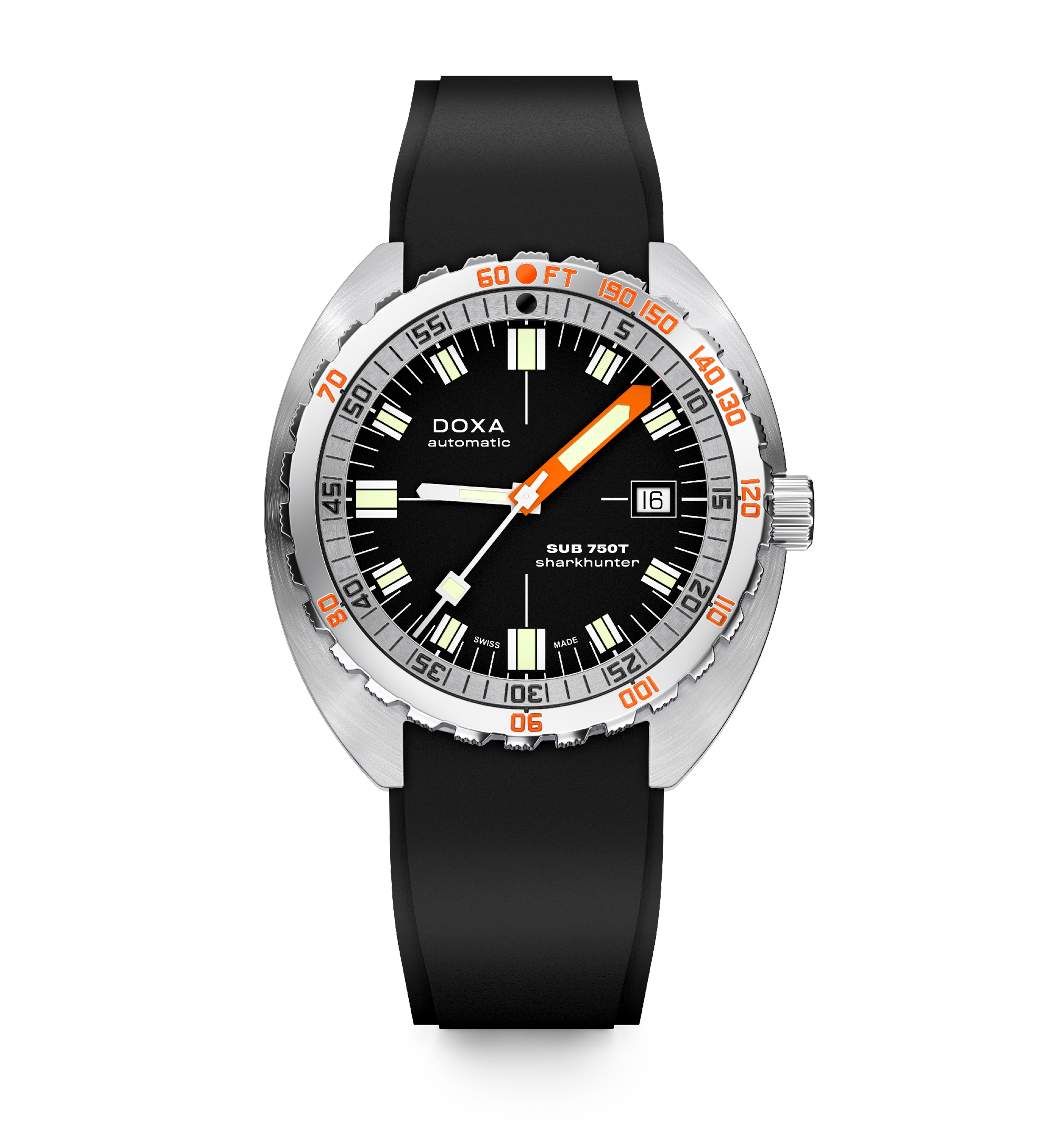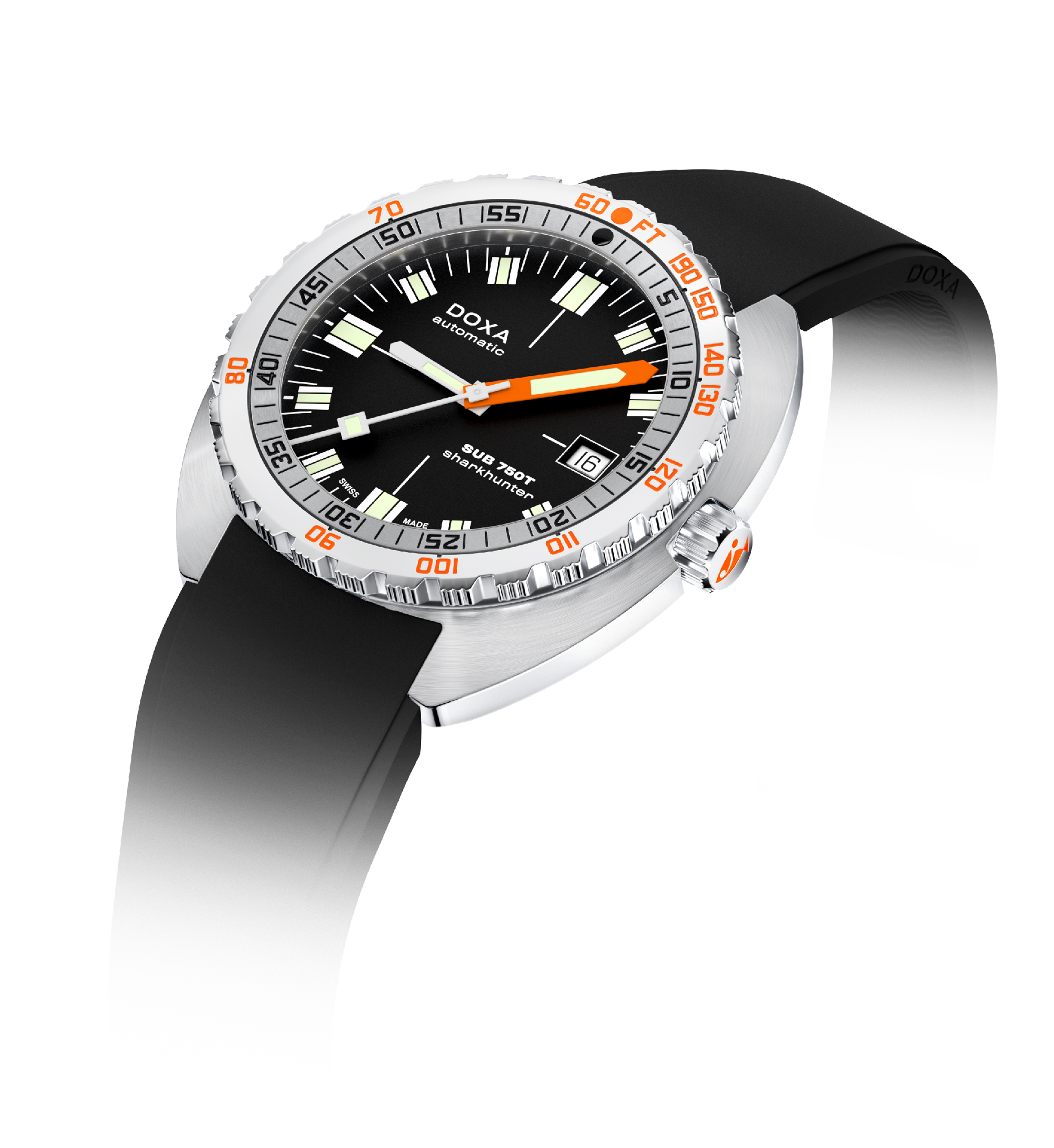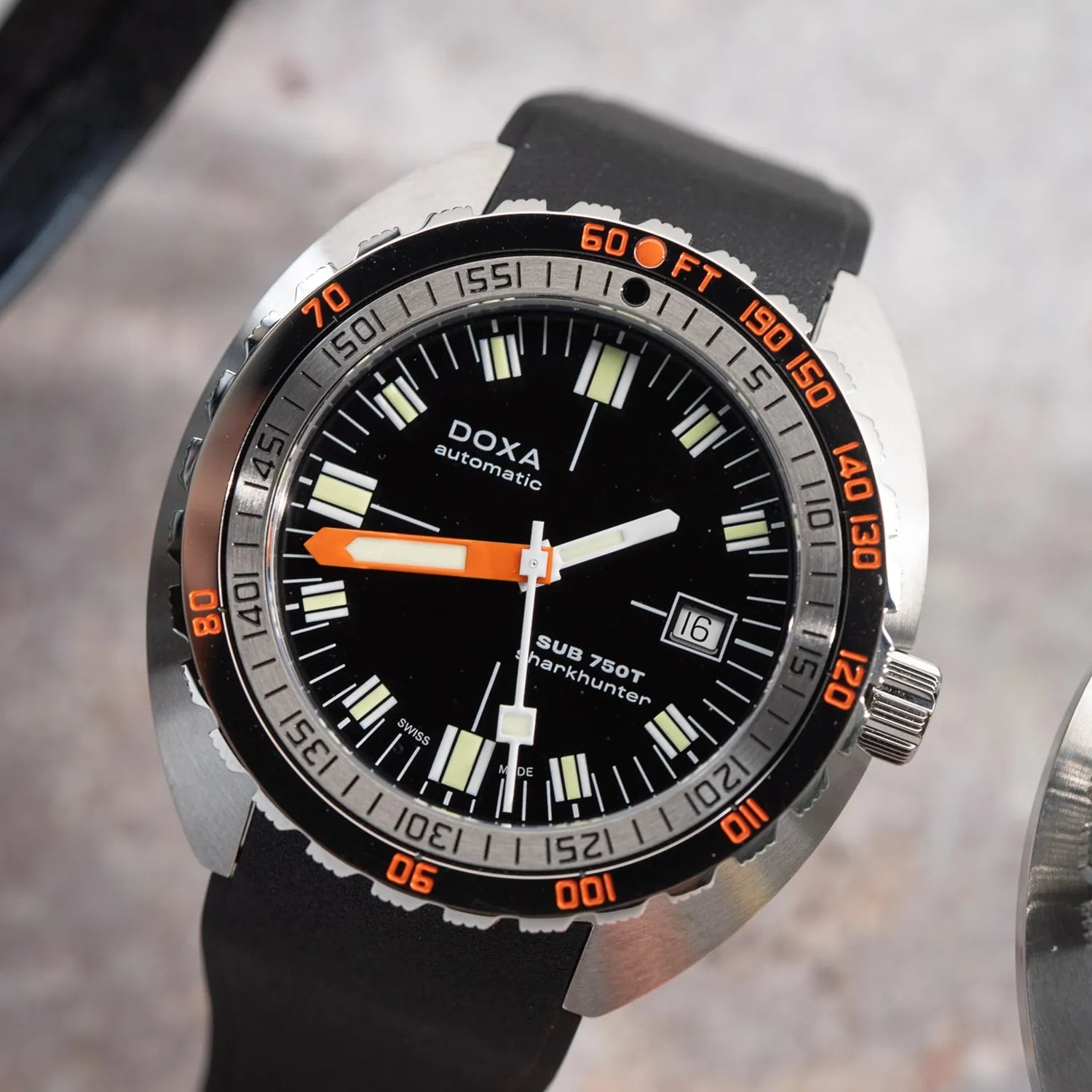 Today, DOXA brings this icon into the present with a completely reimagined design. The new SUB 750T preserves the DNA of the original with its bold presence, uncompromising build, and rugged reliability while introducing a slimmer and more modern silhouette. The redesigned case remains substantial at 45.00 x 47.00 mm but has been refined to 11.95 mm in thickness, making it lighter, more comfortable, and better suited to contemporary wear.
