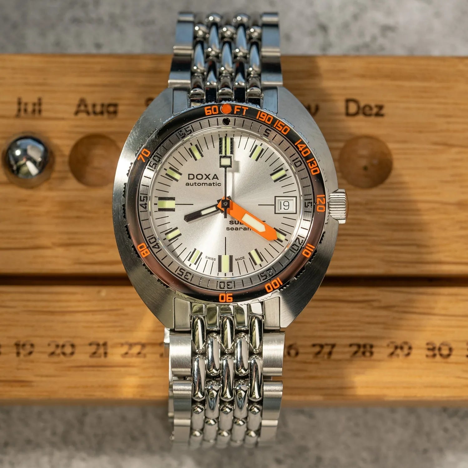 Crafted from premium 316L stainless steel, the SUB 200T is a 3-hand dive watch featuring DOXAs famous patented unidirectional rotating bezel with its integrated US Navy no-decompression limit table, the benchmark for diver safety.