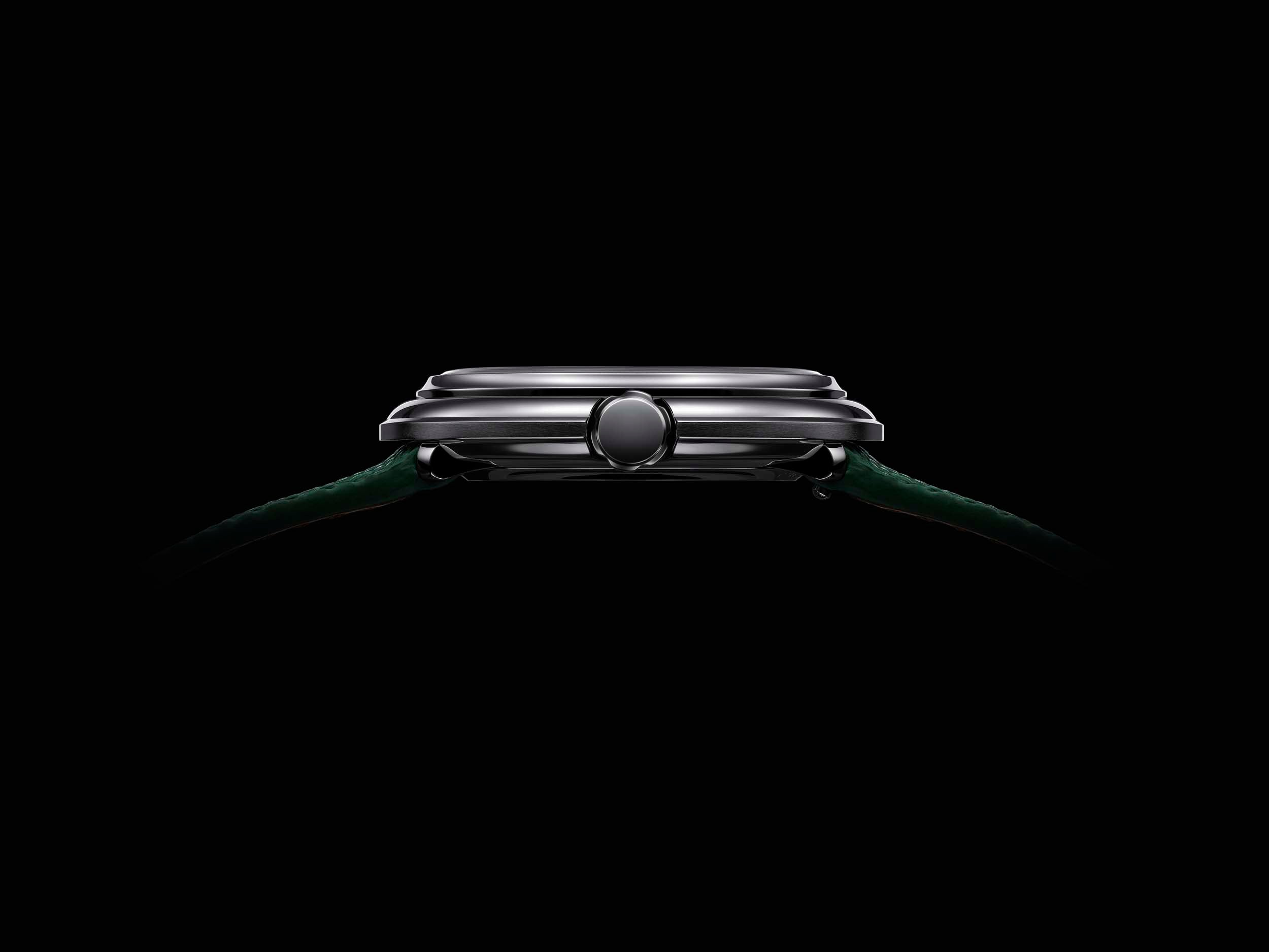 Andrea Furlan and Hamad Al Marri have reimagined the Disco Volante with a keen eye on modern trends. Sporting a 38 mm case – more prominent than the vintage 36 mm – this watch perfectly blends classic and contemporary. The rounded shapes and curved bezel add a touch of elegance, while the intricate, four-part dial with sharp, meticulously crafted angles showcases Furlan Marri’s dedication to detail. The dial is balanced with applied hour markers at 12, 3 and 9 o’clock, double-printed indicators and text, and a subdial displaying the small seconds at 6 o’clock. Both circles surrounding the hour and minute and small second indications are enhanced by a different shade of Super-LumiNova depending on the reference, creating a luminous signature.