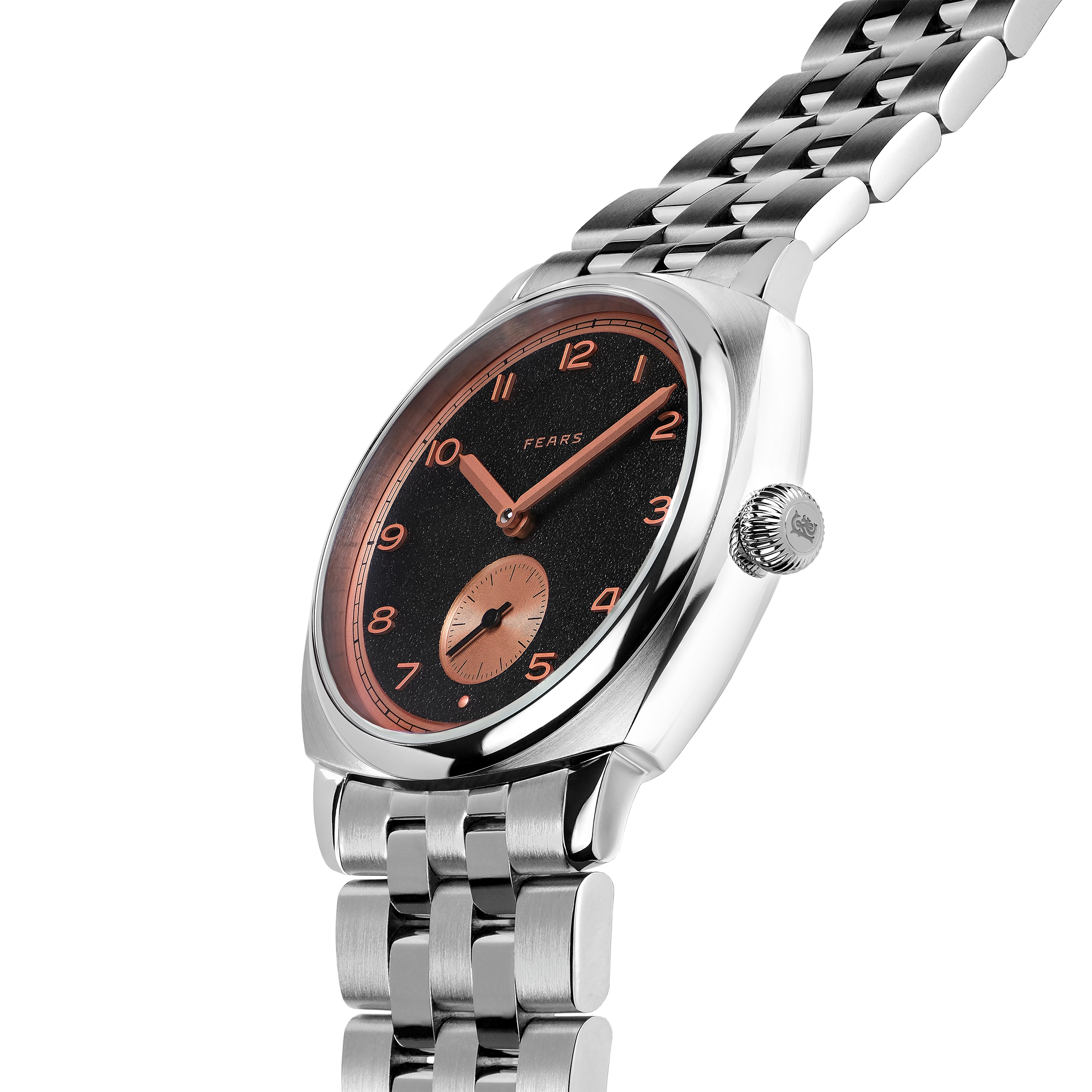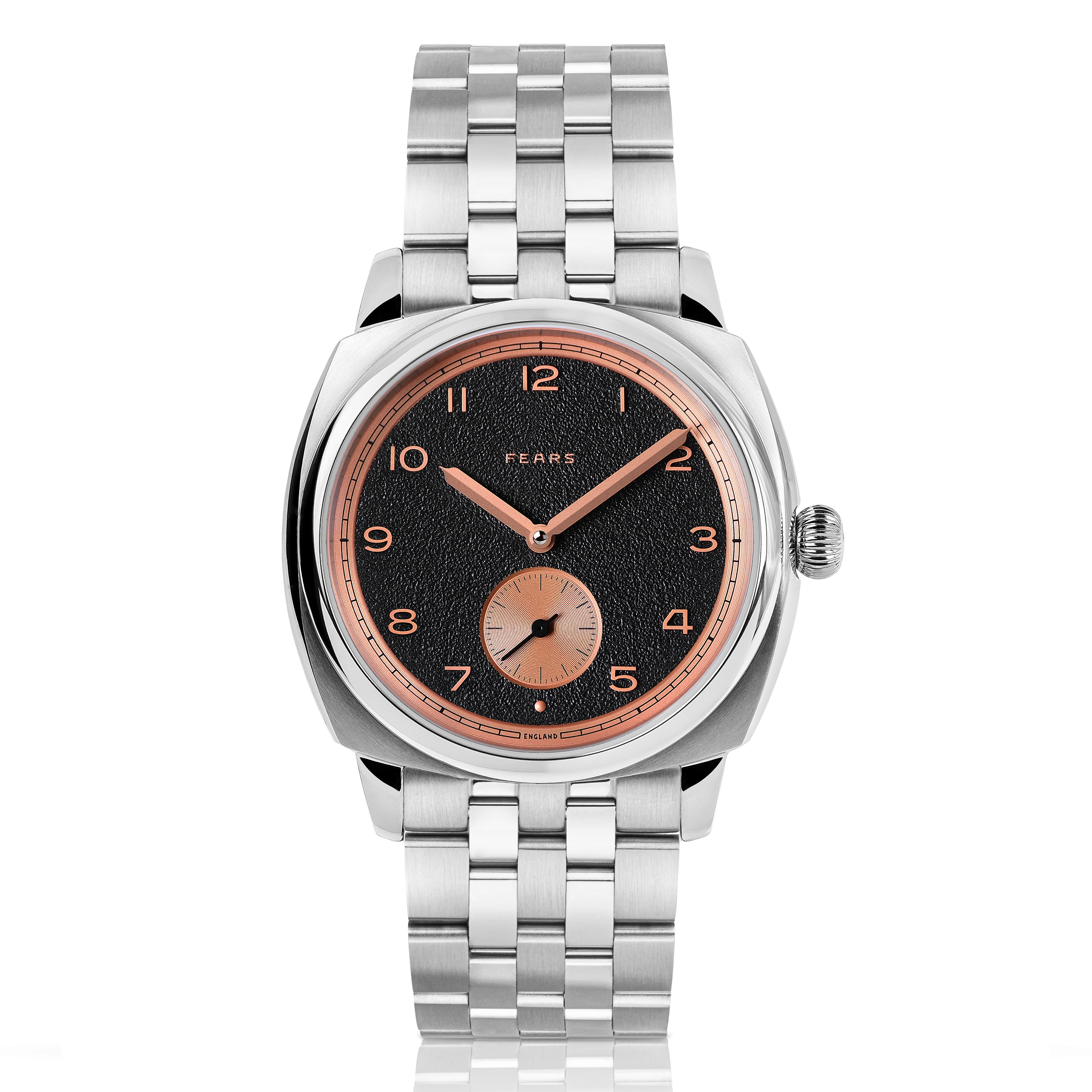 The Brunswick 38 'Charcoal Rose' is also available with Fears bespoke stainless steel 5-link bracelet.