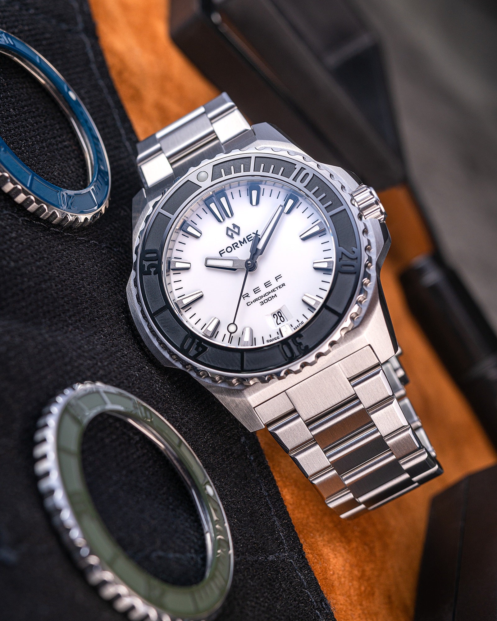 Known for its elegant, technologically sophisticated sports watches, independent Swiss brand Formex extends that same philosophy into the depths with its Reef collection. First and foremost, a serious dive watch, the Reef pairs genuine underwater capability with a refined, contemporary aesthetic, allowing it to transition seamlessly from ocean exploration to black-tie occasions without missing a beat.