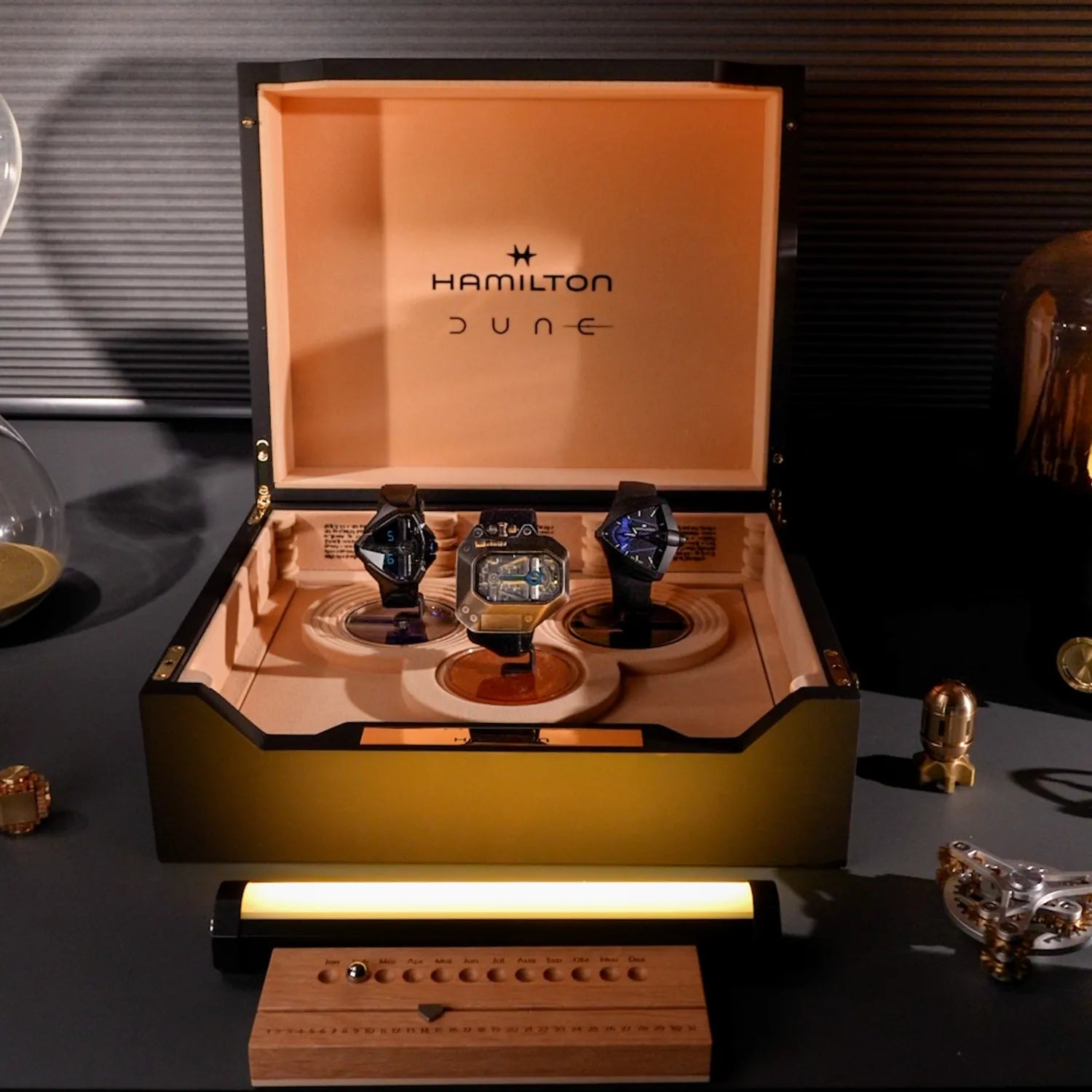 In an exclusive collaboration with Legendary Entertainment and Warner Bros. Pictures, Hamilton designed a custom "Desert Watch" specifically requested by filmmaker Denis Villeneuve for his highly anticipated film, "Dune: Part Two," the sequel to his cinematic masterpiece "Dune."