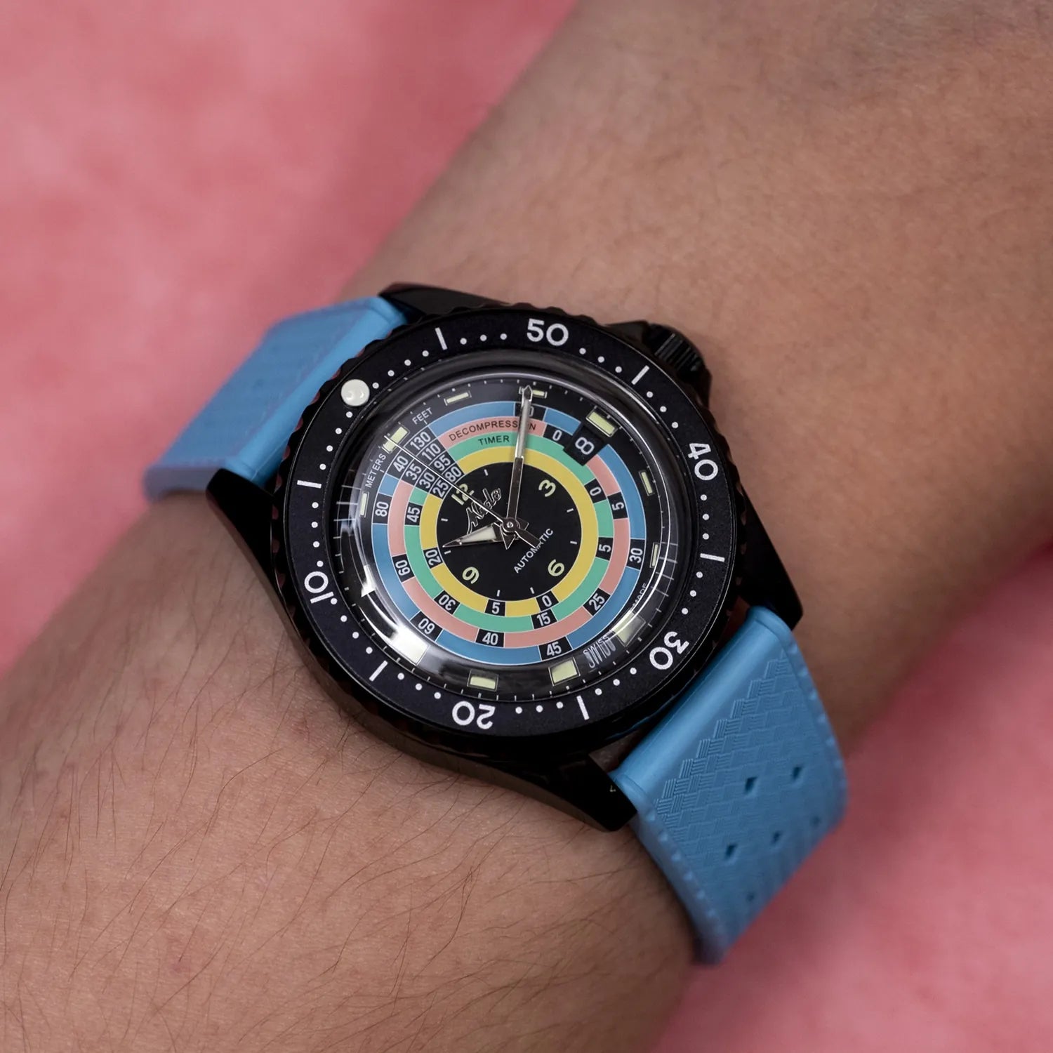 The Ocean Star Decompression Timer 1961 from MIDO is back, paying homage to its original 1961 model, the Ocean Star Skin Diver Watch. In it's forth iteration, this limited edition watch is presented in a glossy black PVD case. This contrasts nicely against the legendary multi-coloured decompression scale. This watch is exclusively available for Australian watch enthusiasts via Time+Tide.
