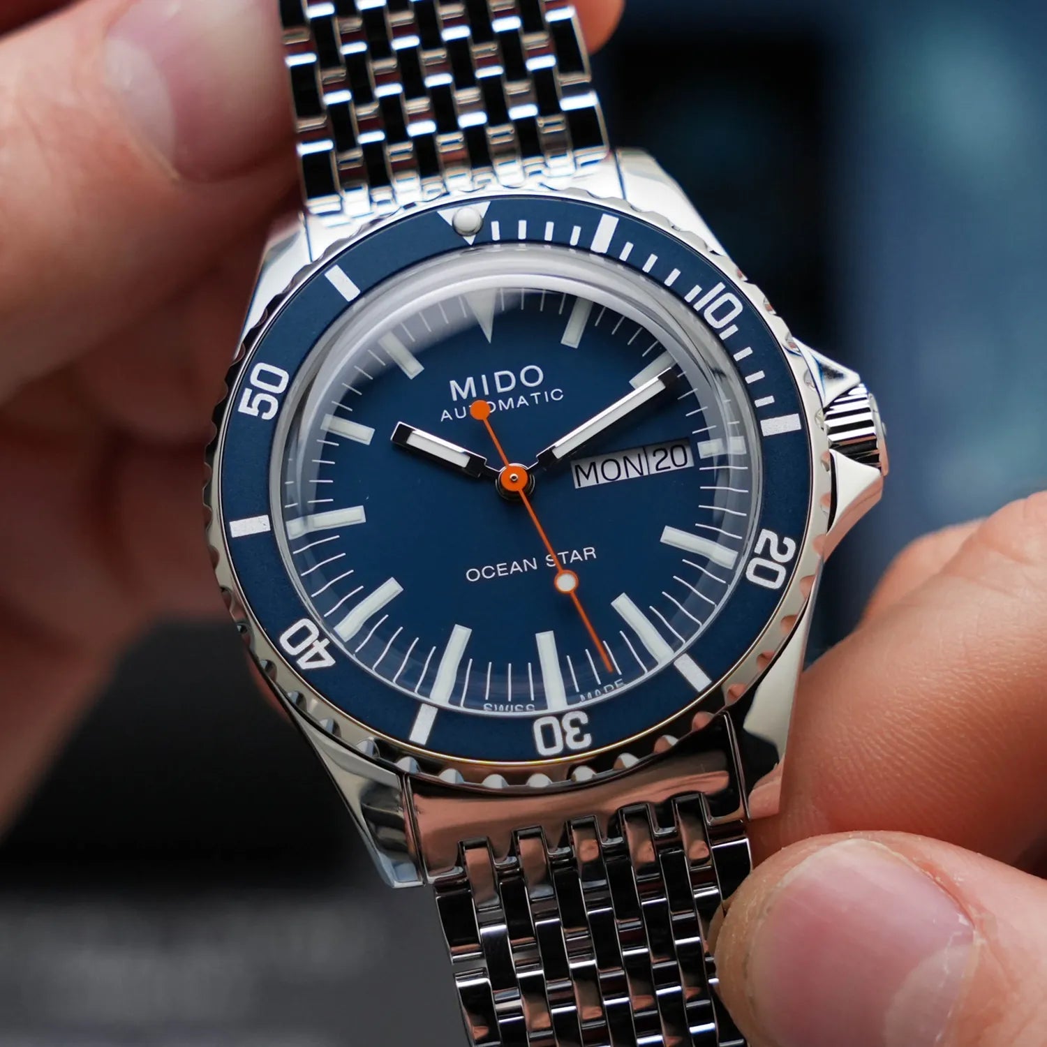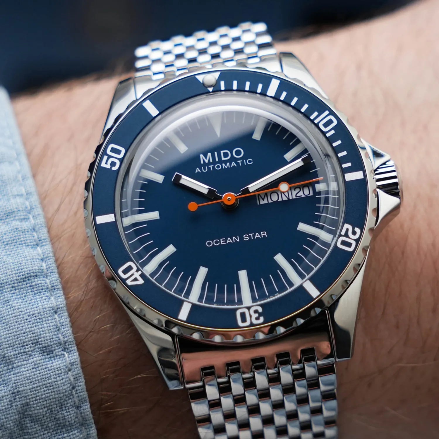 Mido Ocean Star Tribute - Stainless Steel - interchangeable Stainless Steel Strap and Blue Fabric Strap