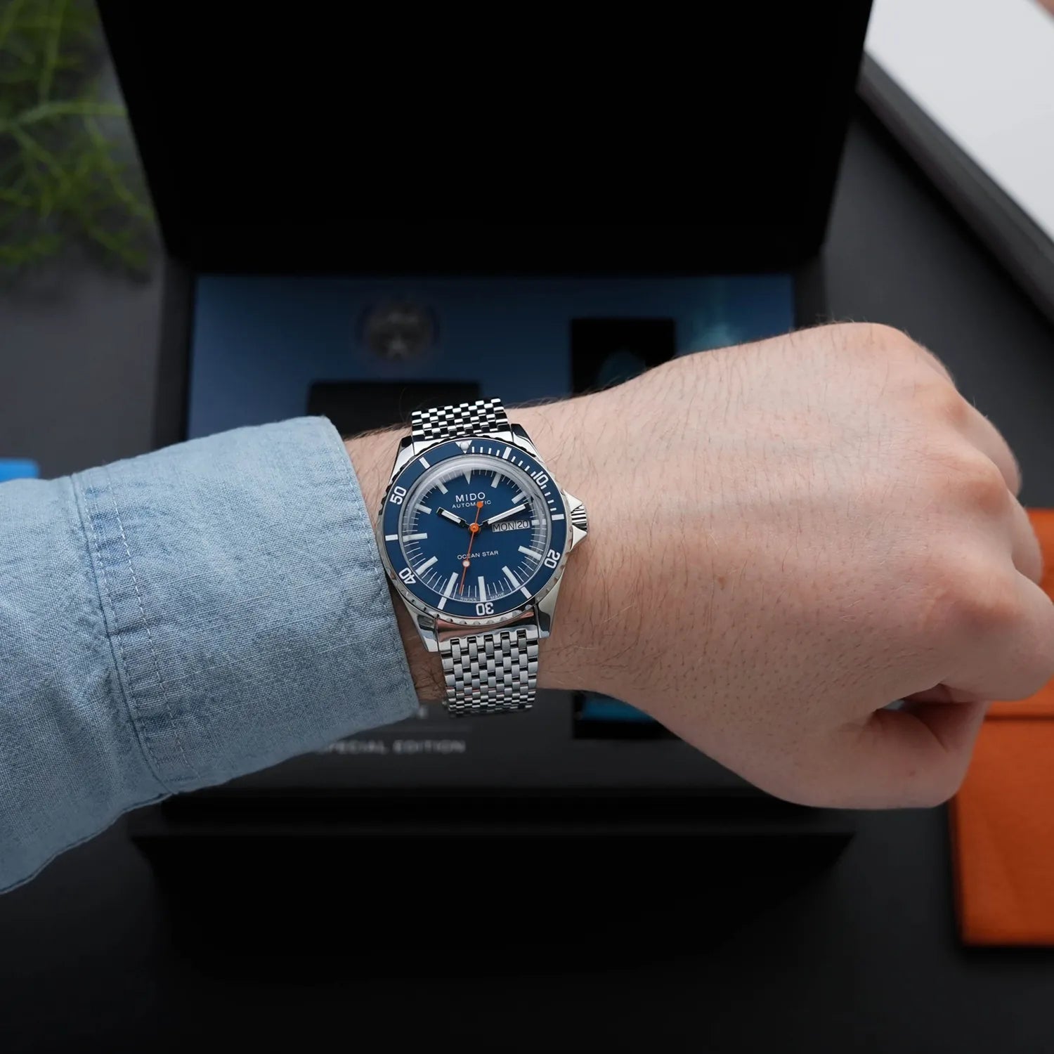 Mido pays tribute to the Ocean Star collection on its 75th anniversary! In subtle reference to the past, the Ocean Star Tribute reinterprets the aesthetic codes of the diving models from the 1960s. It offers a host of qualities: it is fitted with the Caliber 80 automatic movement, is water-resistant up to a pressure of 20 bars (200 m/656 ft) and features a unique strap offering maximum comfort.