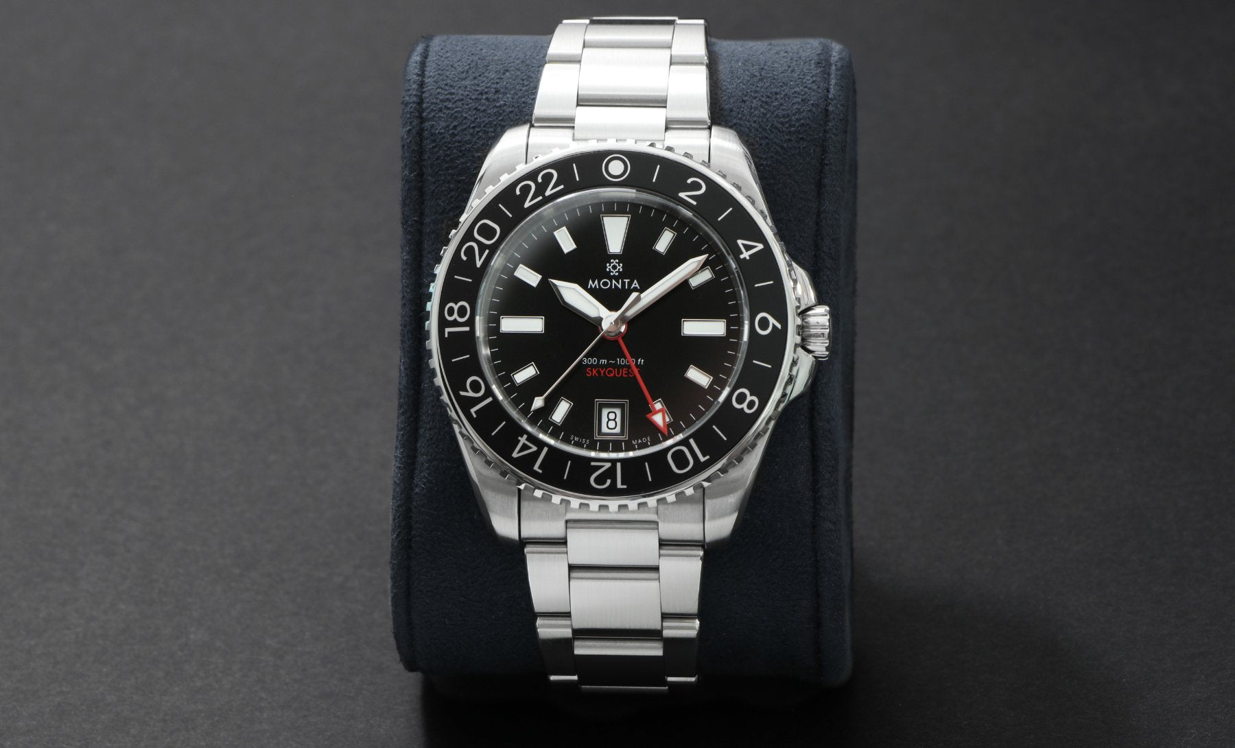 The Skyquest is designed for the MONTA customer with an adventurous spirit. Since its inception, the Skyquest has become a GMT tool watch which is perfectly balanced between capability, precision, and sophistication.