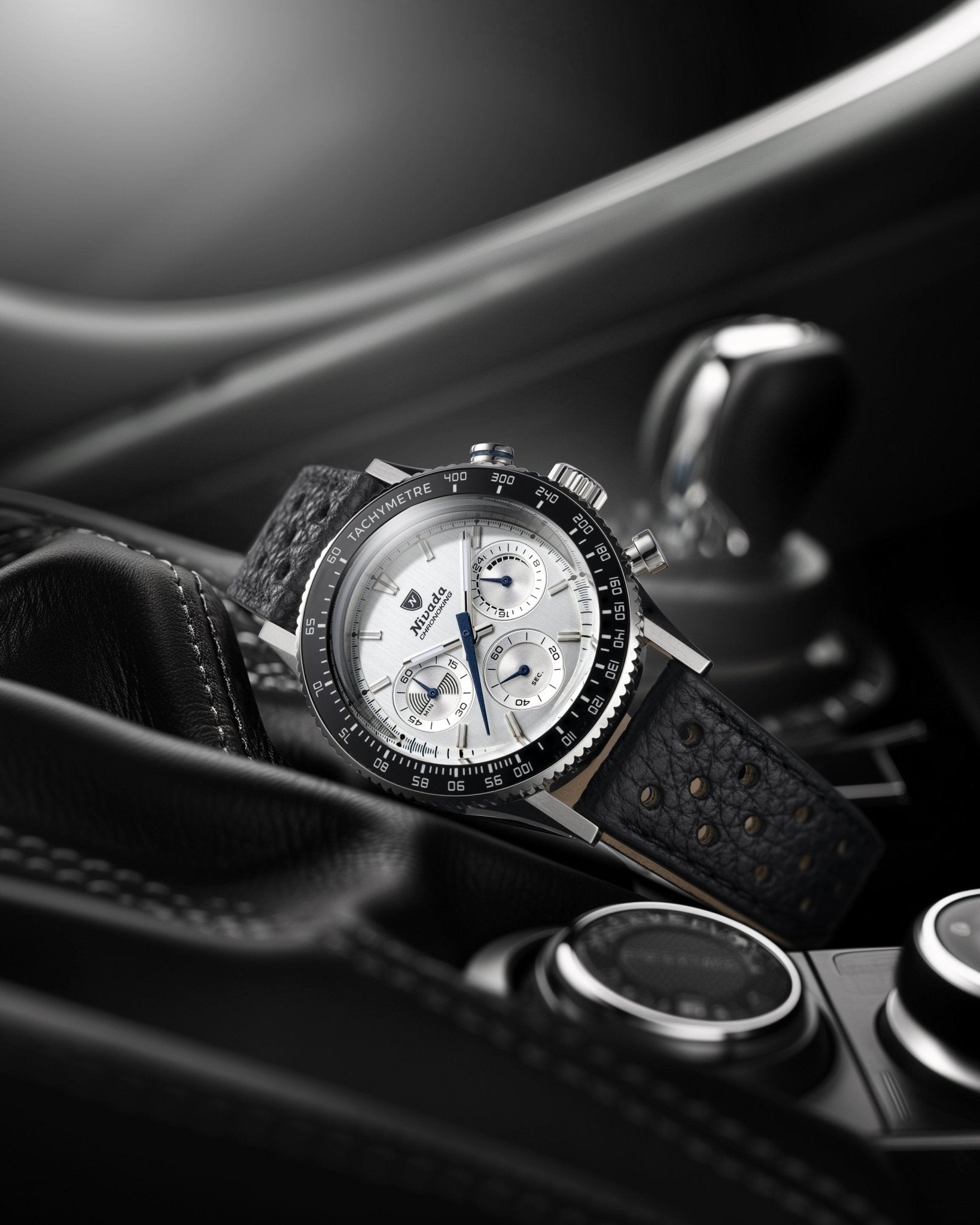 The Silver Dial edition embodies sophistication with its clean, radiant finish. Its brushed metallic tones highlight the colorful chronograph counters, while the 38mm case size keeps it true to its 1970s heritage. A versatile choice that bridges vintage elegance with playful customization.