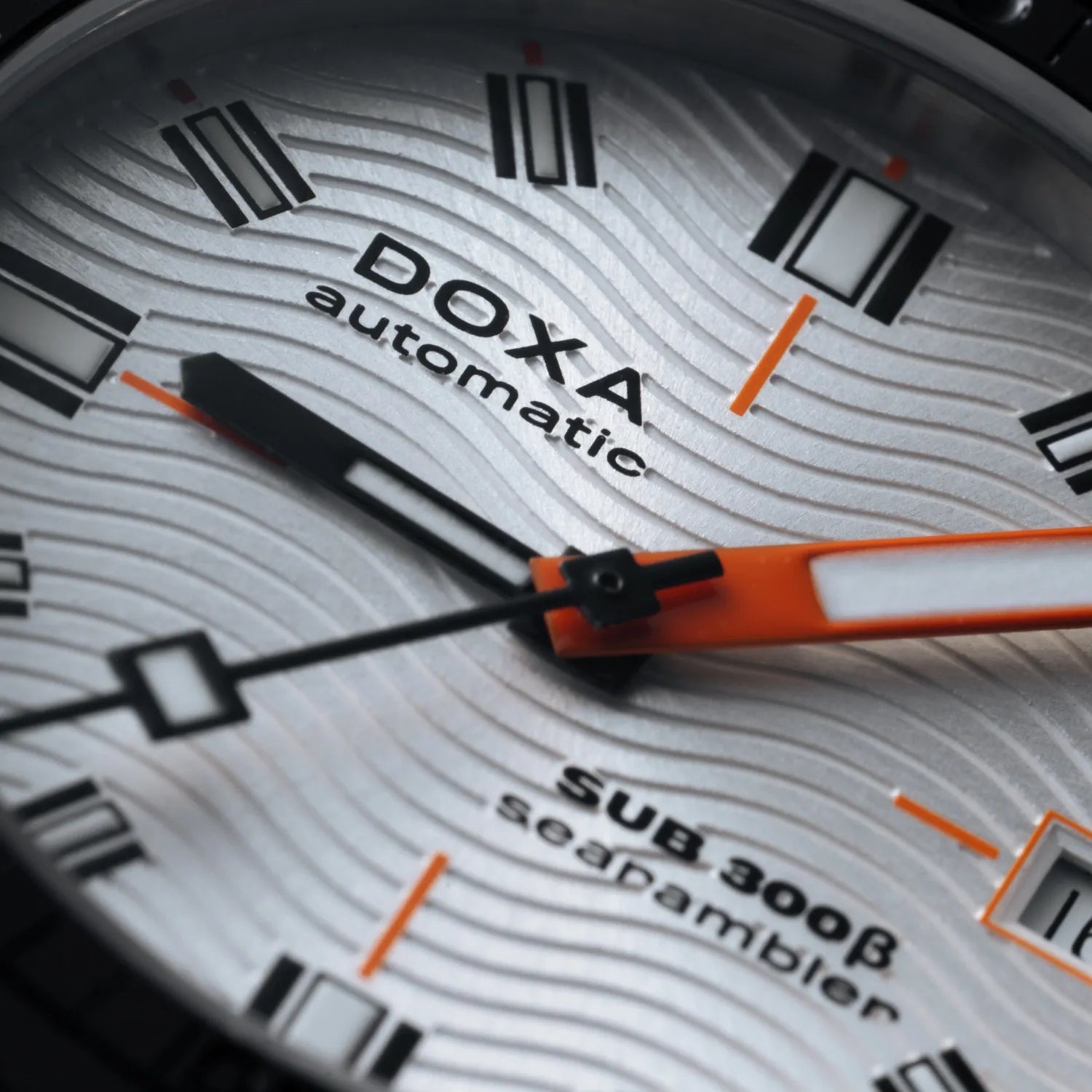 The SUB 300 sports watch combines functionality with style, maintaining foundational tool watch features in a redesigned 42.5 mm diameter case, now slimmer at 11.95 mm. The black ceramic bezel and screw-down crown enhance its sport-chic character, complemented by a sophisticated sunburst dial finish. Available with an FKM rubber strap or stainless-steel "Beads of Rice" bracelet, both featuring a ratcheting folding clasp, the watch is water-resistant up to 300 meters. With a scratch-resistant sapphire crystal, Swiss automatic movement, and a power reserve of around 38 hours, the SUB 300 is engineered for safety and exploration. True to DOXA's unconventional ethos, it blends the spirit of the times with an elegant, modern sport-chic look suitable for urban settings.