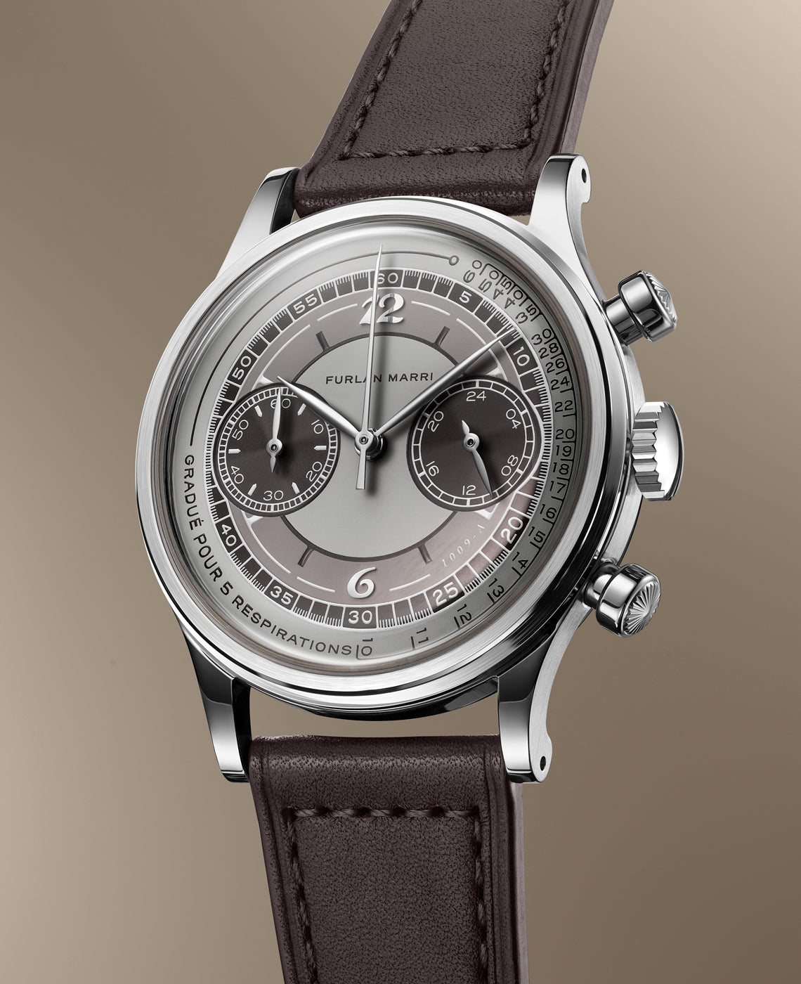 An attractive chronograph crafted with care for details, such as the engraved pushers, the decagonal screwed caseback with interior perlage finish and deep engravings, exterior circular brushed and polished finish, logo and case reference number are deep engraved. The hands are domed and curved to bring even more desirable details into this 38mm case wristwatch.