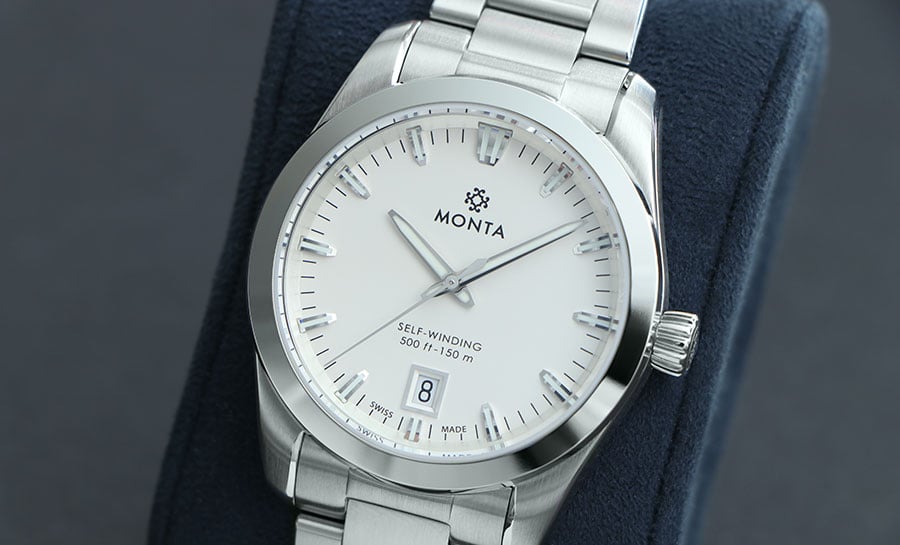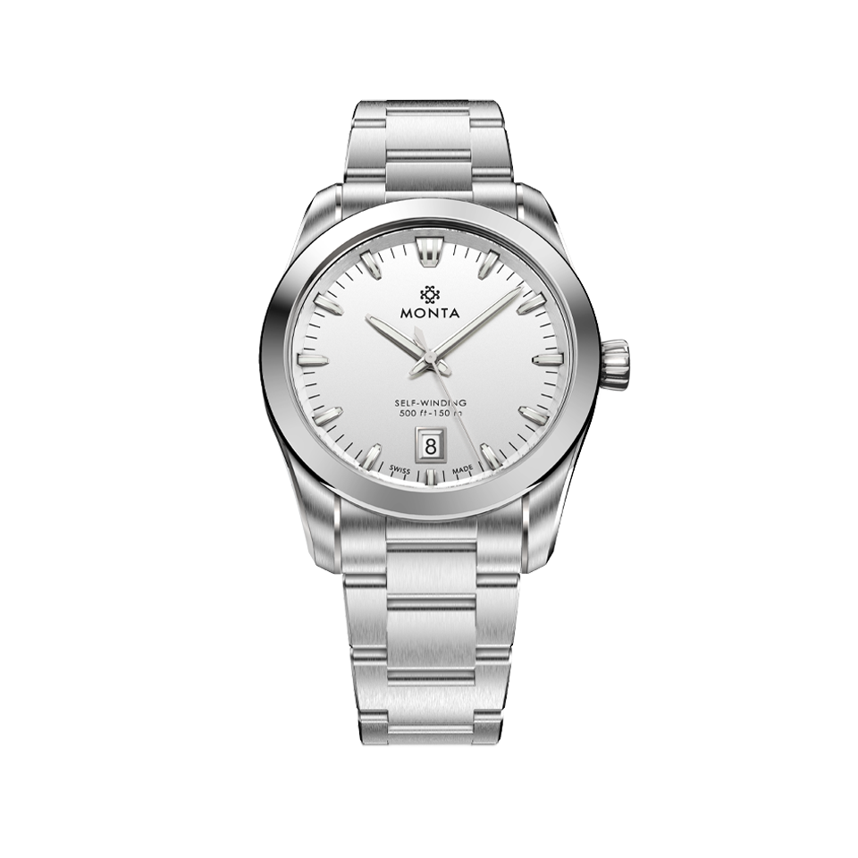 MONTA's bracelet is perfectly crafted for durability and comfort, with solid links and a robust clasp that creates a secure fit, easily worn for any occasion. The thoughtful design reinforces the watch's strong character, making it a staple for everyday wear and active pursuits.