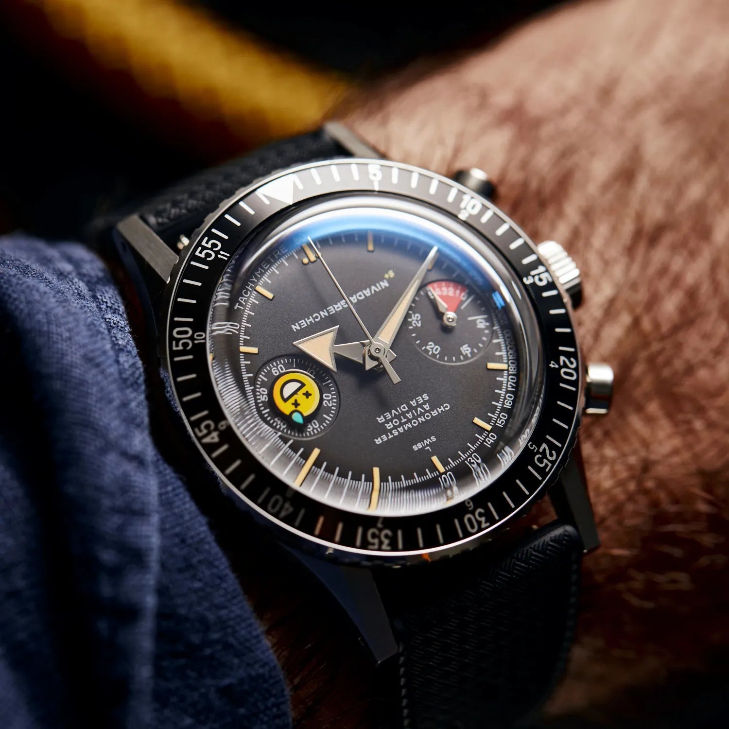 How do you respond to a world turned upside down? Are you spun out? Are you fine? Are you fantastic? With a little help from our friends, we present to you the Nivada Grenchen x Time+Tide x seconde/seconde/ triple threat - the Chronomaster Aviator Sea Diver Chaosmaster editions.