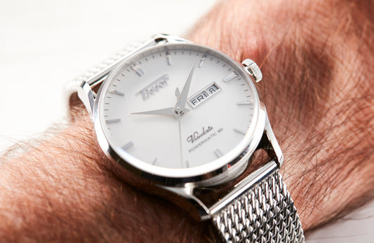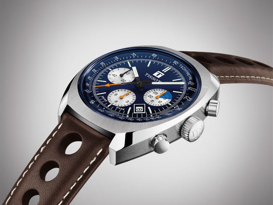 Inspired by the past yet unmistakable modern, the Tissot Heritage 1973 combines classic charm with today’s advanced materials, appealing to adventure-seeking watch enthusiasts. With a bold 43mm cushion-shaped case and thickness of 14.8mm, this chronograph is made for those who appreciate presence on their wrist. Its brushed finish, with radial and horizontal textures, perfectly complements the case’s structure, adding a dynamic contest to the polished areas.