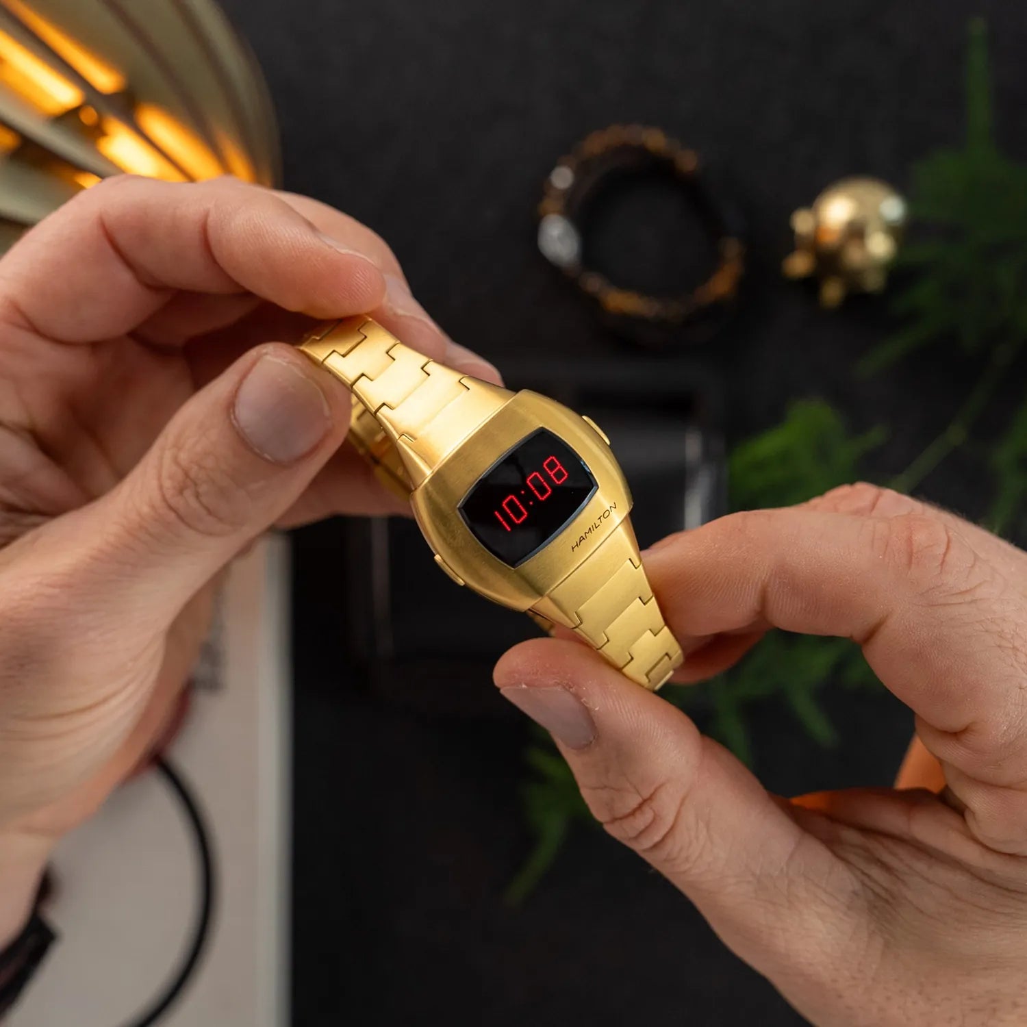 Celebrate the return of a digital legend with the Hamilton PSR 74, a modern homage to the original 1974 Pulsar Cushion design. Drawing on the 1970s' era of technological breakthroughs, this reimagined timepiece honours Hamilton’s pioneering spirit in digital horology.