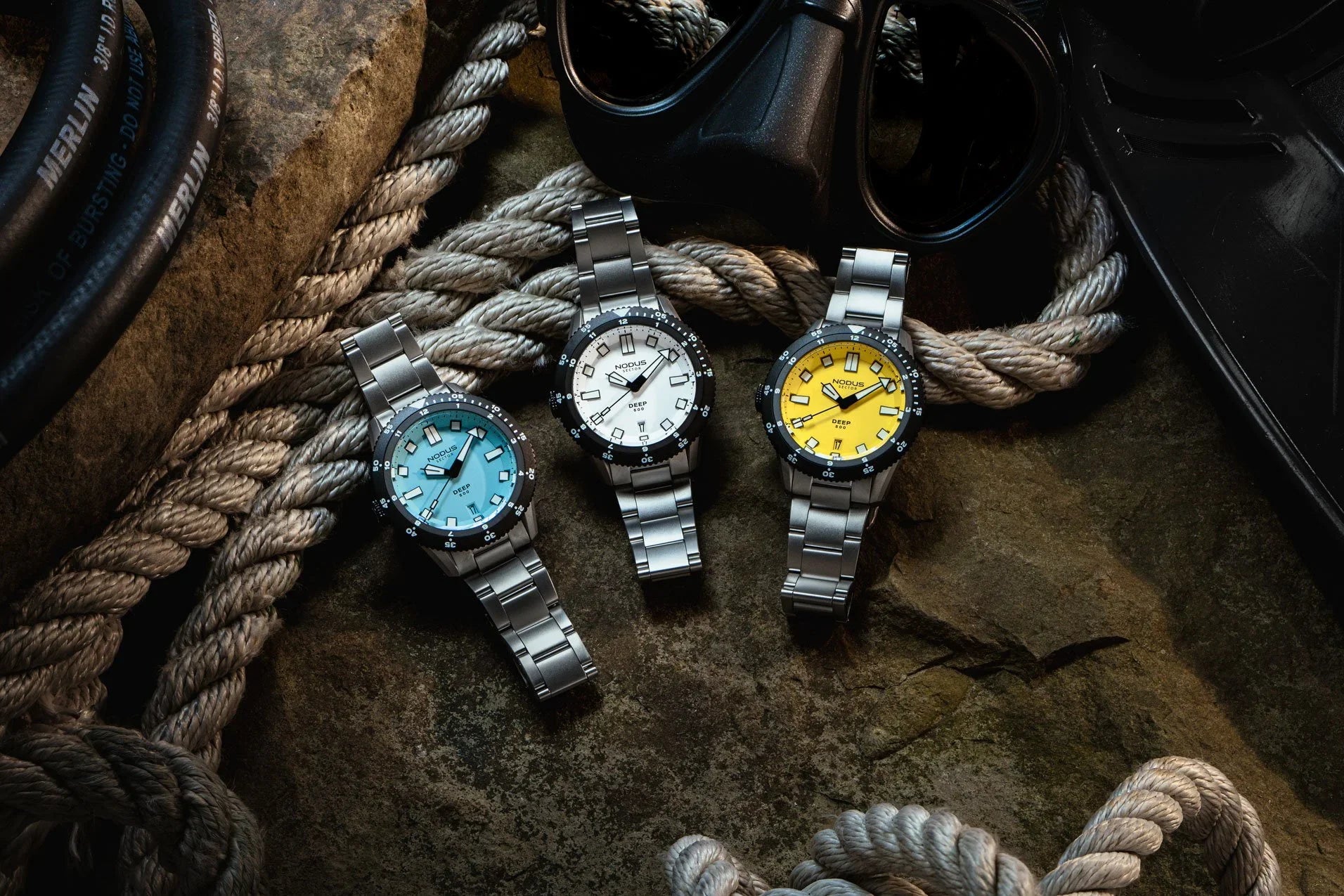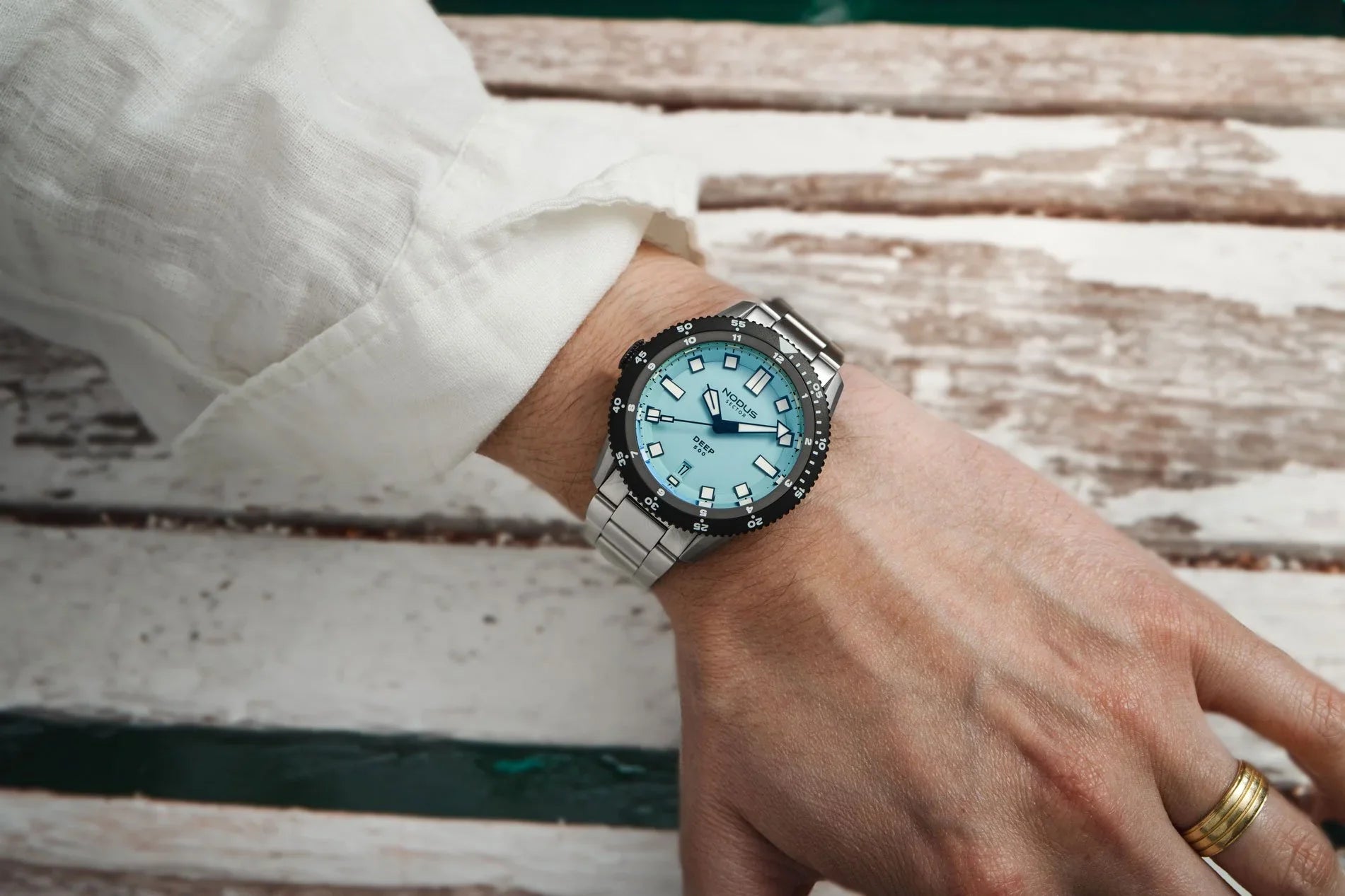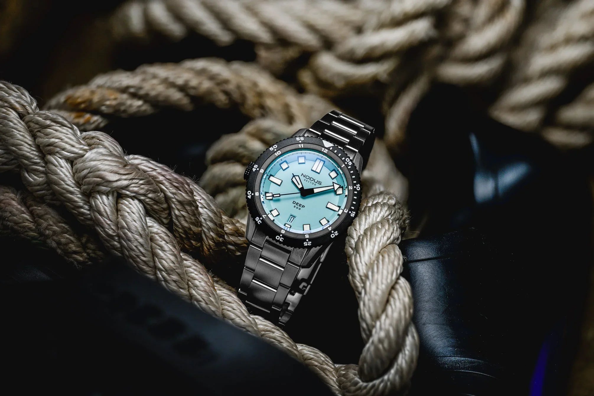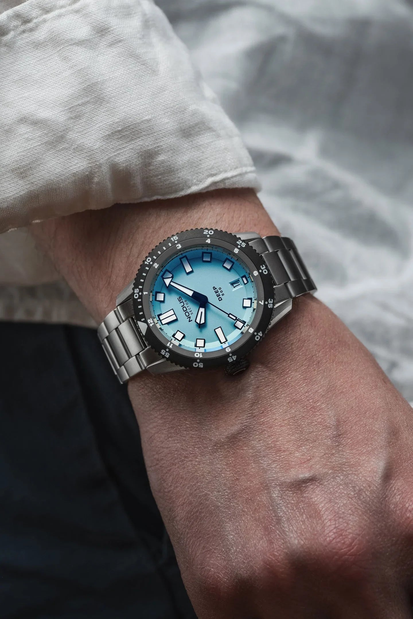Rated for 500 meters of depth, the Sector Deep is the most function-forward Sector to date. It features a hyper-contrast dial, dual function unidirectional bezel, "destro" crown orientation, and nearly nuclear amounts of luminous material. Legibility is the name of the game as you descend to the depths.