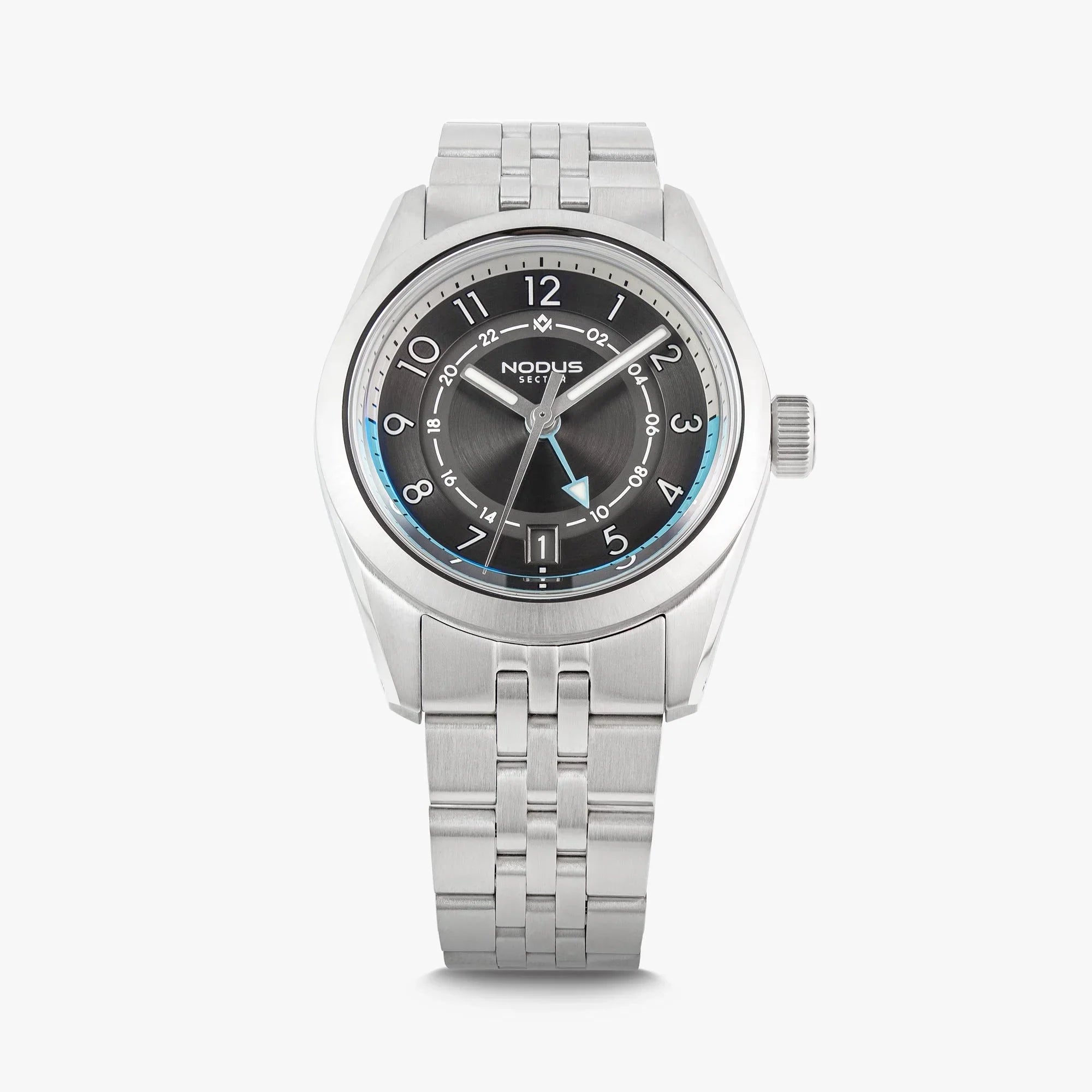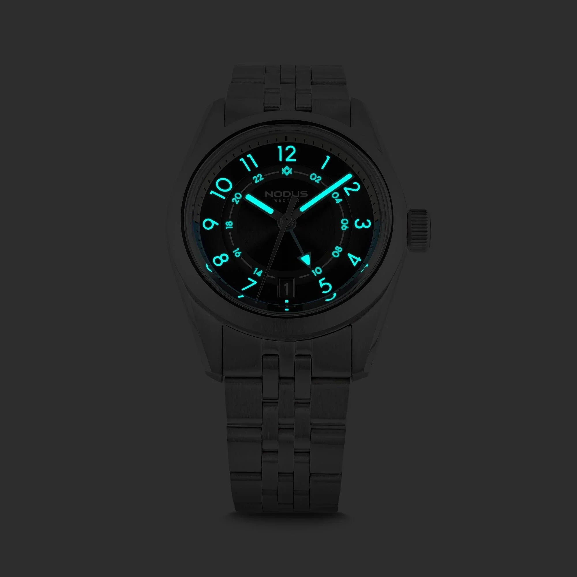 Blending style and function, the Sector II GMT is a sophisticated timepiece for the modern traveler. Its striking design with modernized-Bauhaus undertones is complemented by a practical GMT complication, allowing you to stay connected to home while exploring the world. Crafted with precision and built to last, the Sector II GMT is more than just a watch – it's a statement.