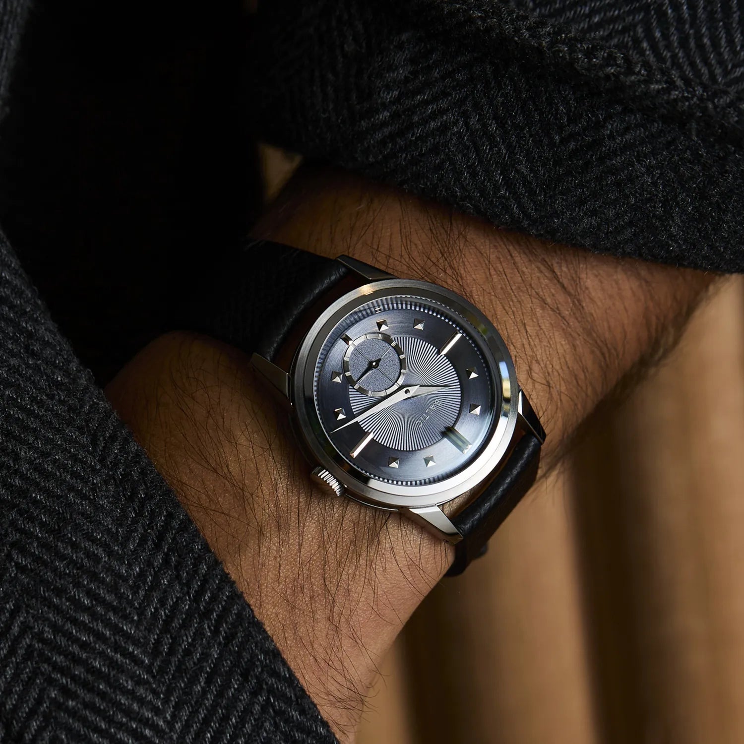 Complementing its exquisite case and movement design is Baltic’s first braided stainless steel bracelet. Due to the design, the bracelet molds to the curvature of the wrist for maximum comfort and style. With its quick-release system and adjustable sliding clasp, it's the perfect companion for any occasion (also available in leather).