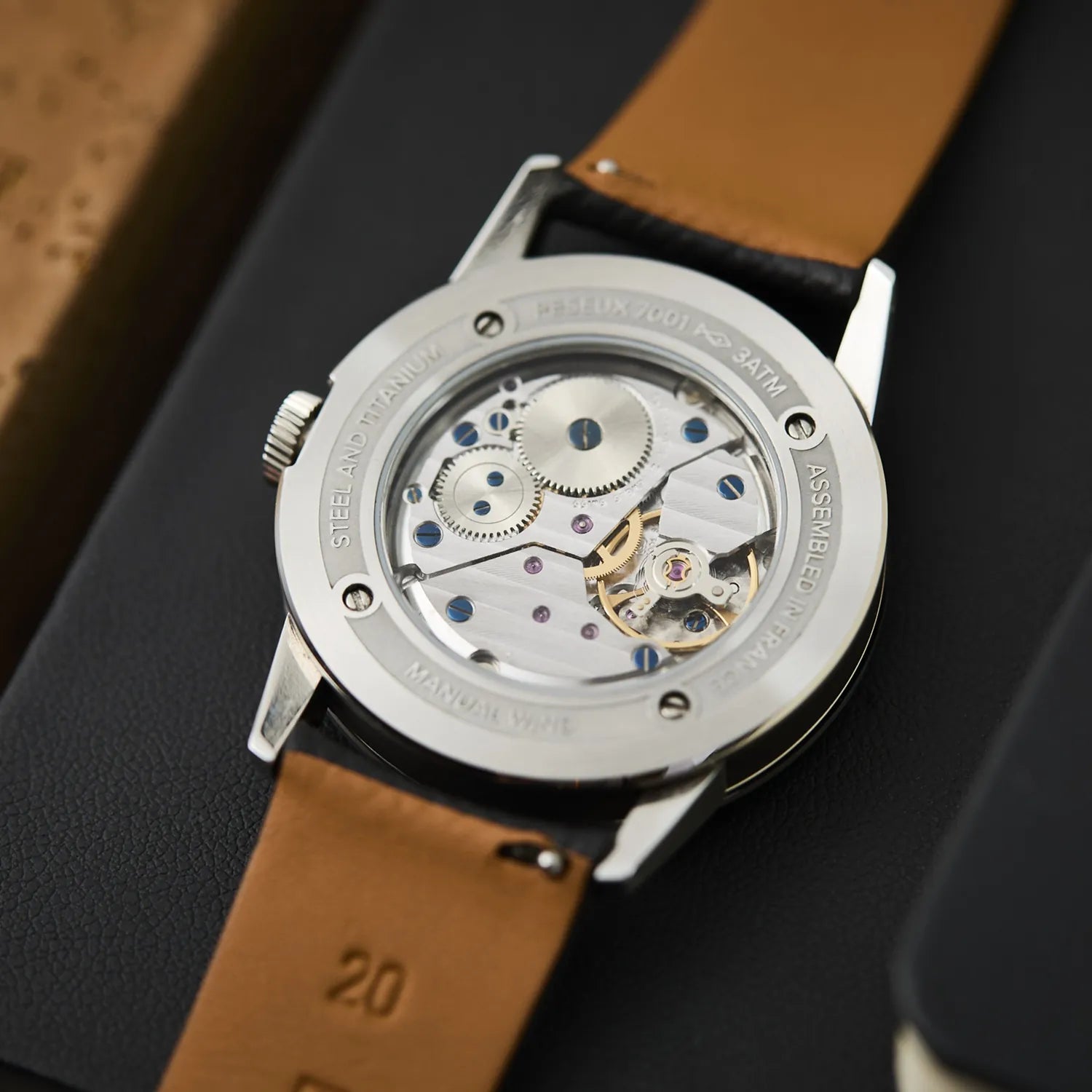 At the heart of the Prismic lies the renowned Peseux 7001 caliber, a Swiss mechanical movement (originally developed by ETA) celebrated for its precision and reliability. With a power reserve of 42 hours, this caliber ensures that the Prismic keeps ticking with unwavering accuracy.