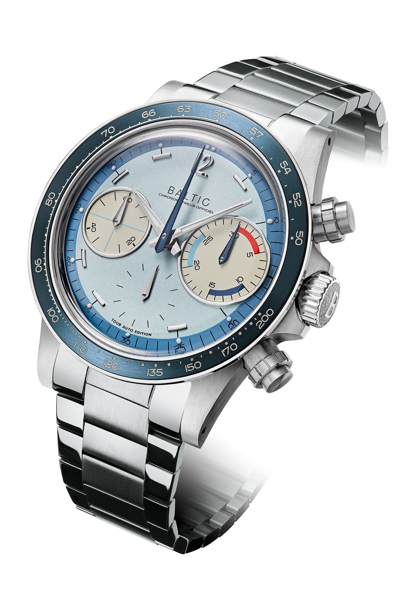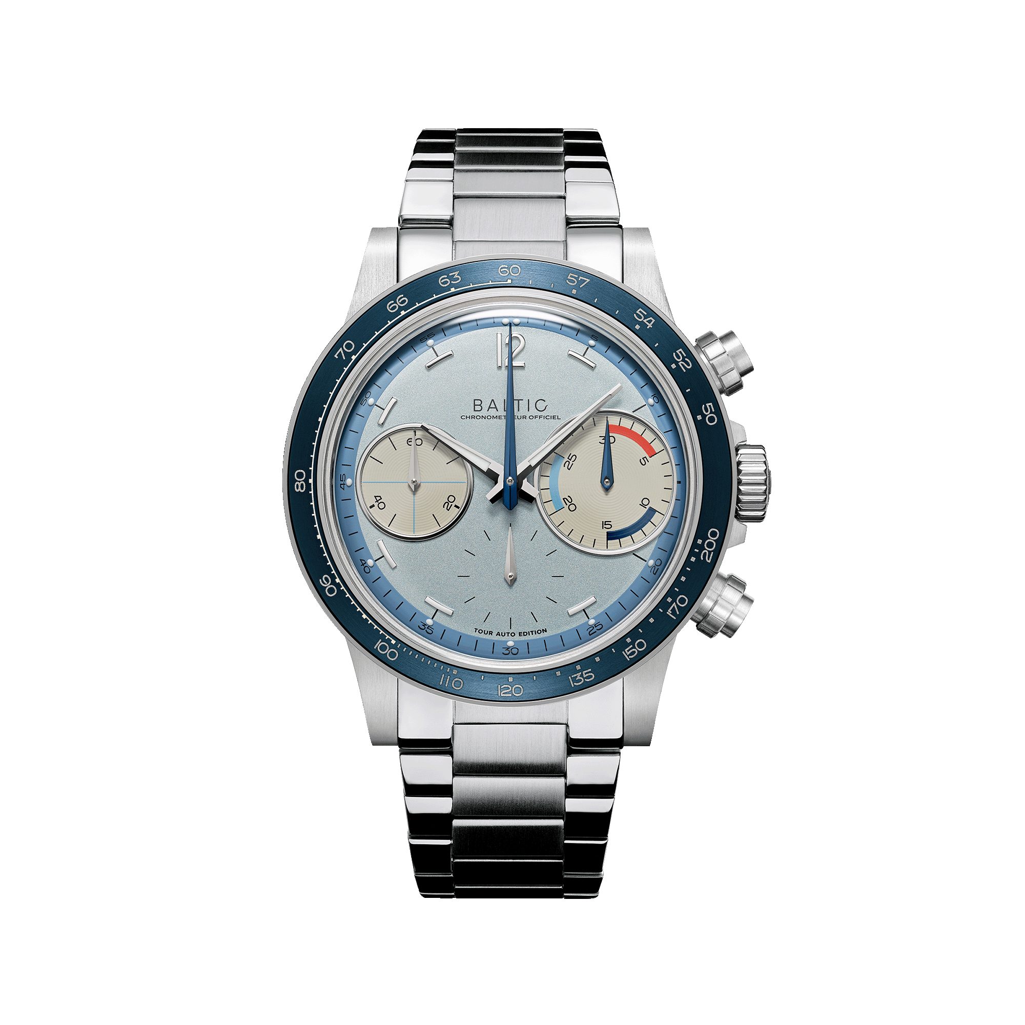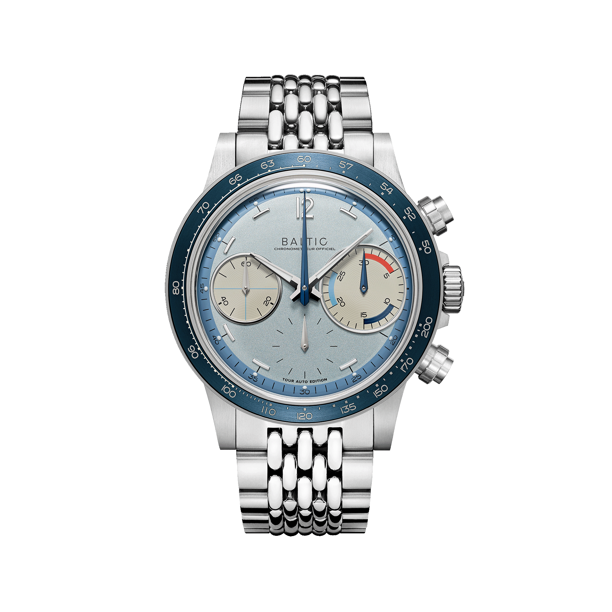 A modern interpretation of a classic design, the Scalegraph aspires to be a sports watch usable on a daily basis, yet more capable in extreme conditions thanks to its screw-down pushers. This new water resistant design, paired with the “Big Eye” layout and the concentric index line, are the signatures of this all new Scalegraph Tour Auto 2025 limited edition from the Baltic Racing department.
