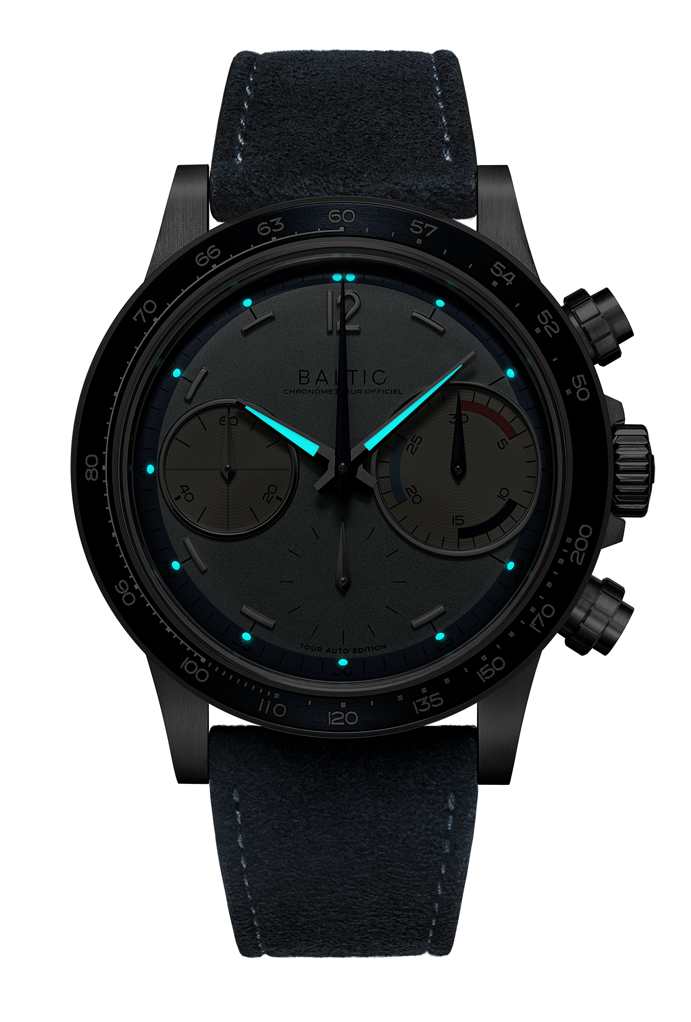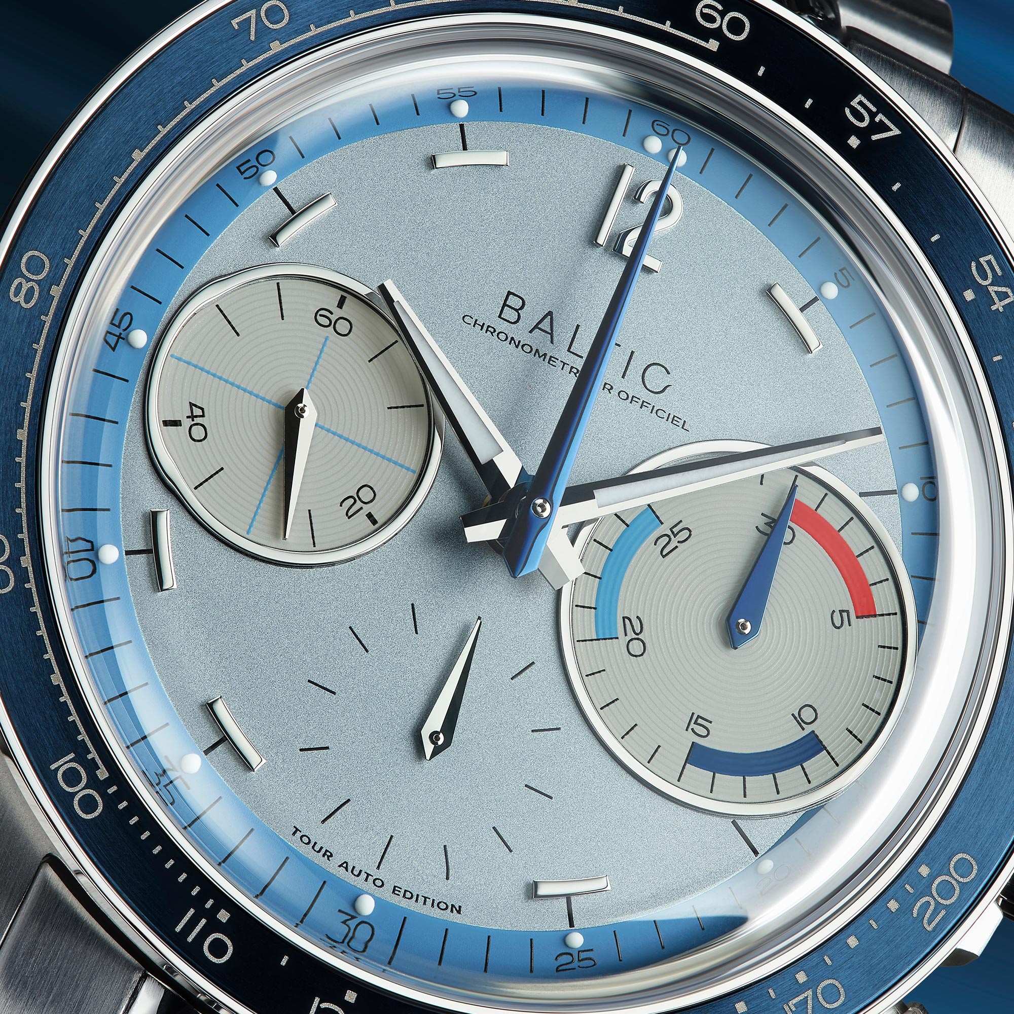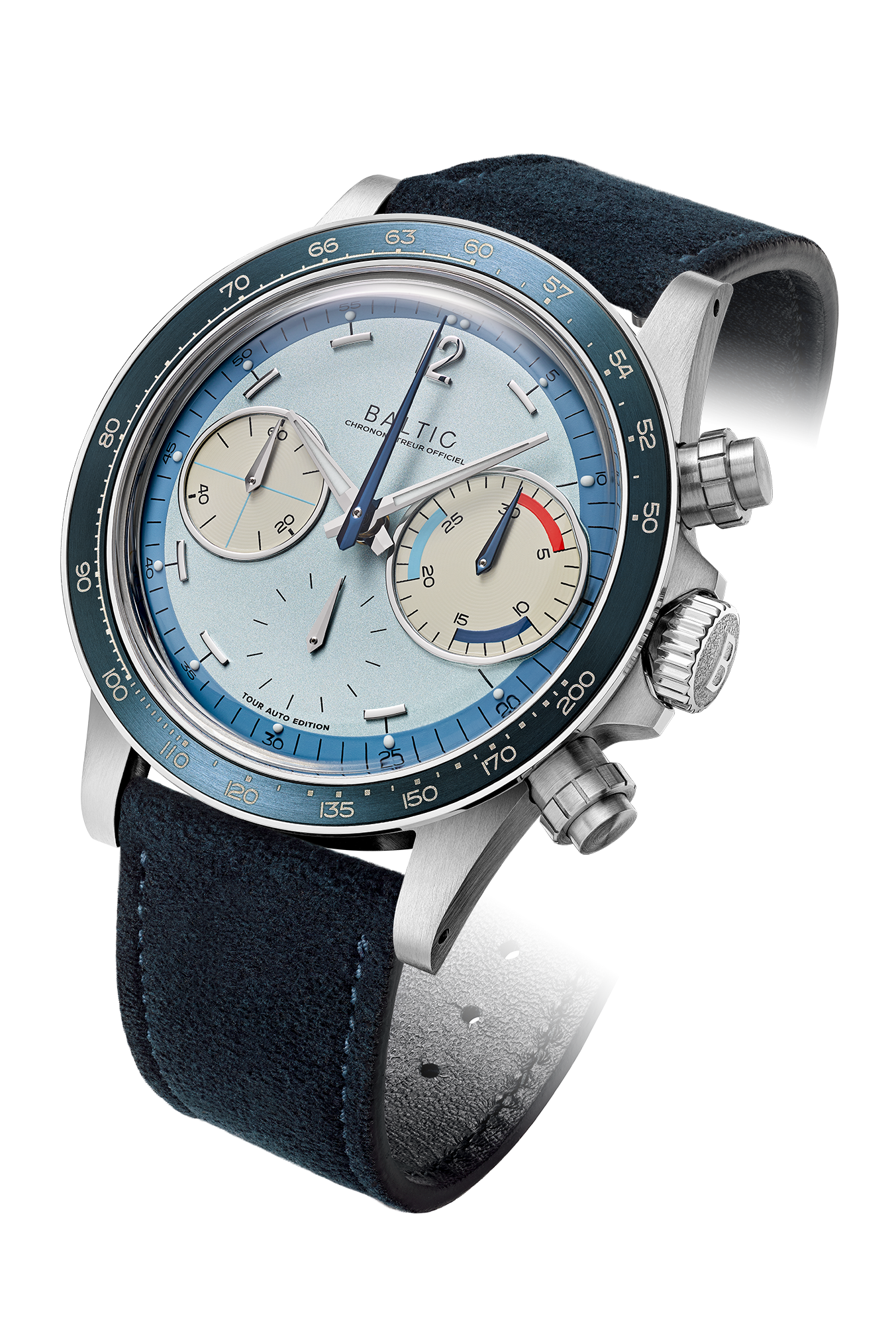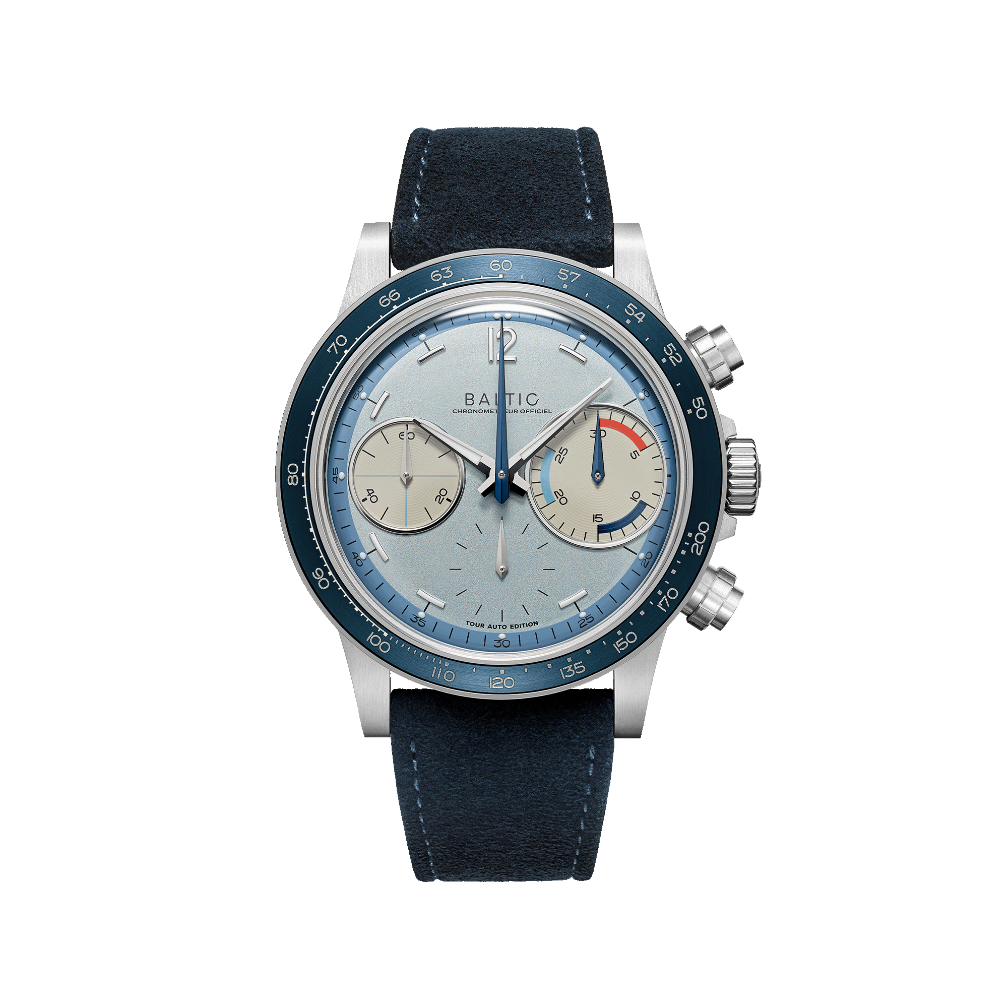 A modern interpretation of a classic design, the Scalegraph aspires to be a sports watch usable on a daily basis, yet more capable in extreme conditions thanks to its screw-down pushers. This new water resistant design, paired with the “Big Eye” layout and the concentric index line, are the signatures of this all new Scalegraph Tour Auto 2025 limited edition from the Baltic Racing department.
