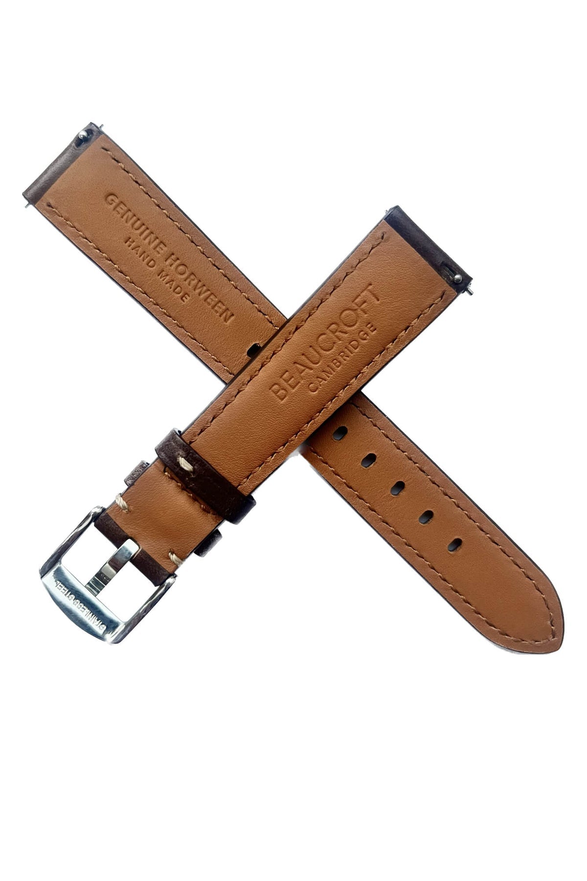 Beaucroft Dark Brown Horween Strap - Cream stitching