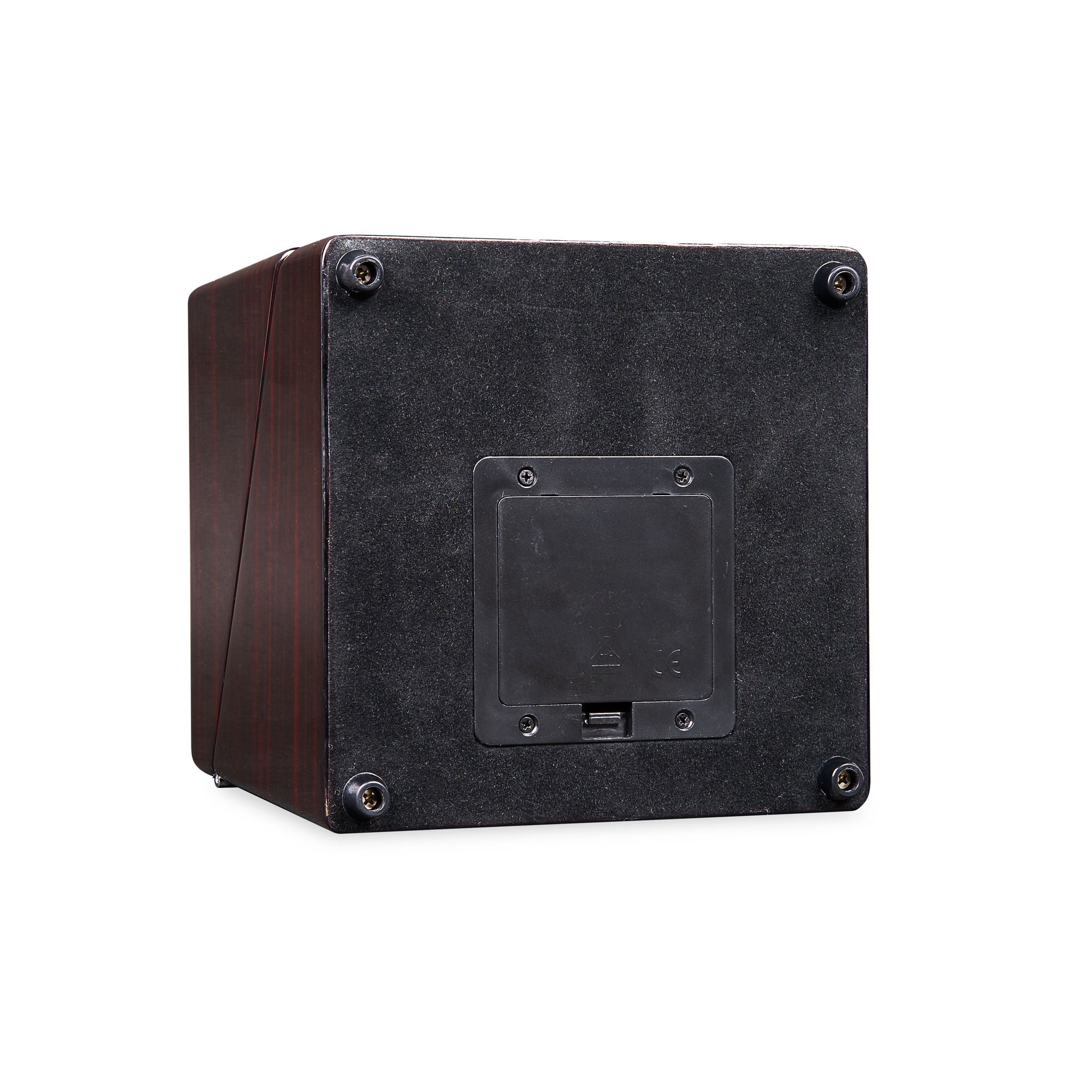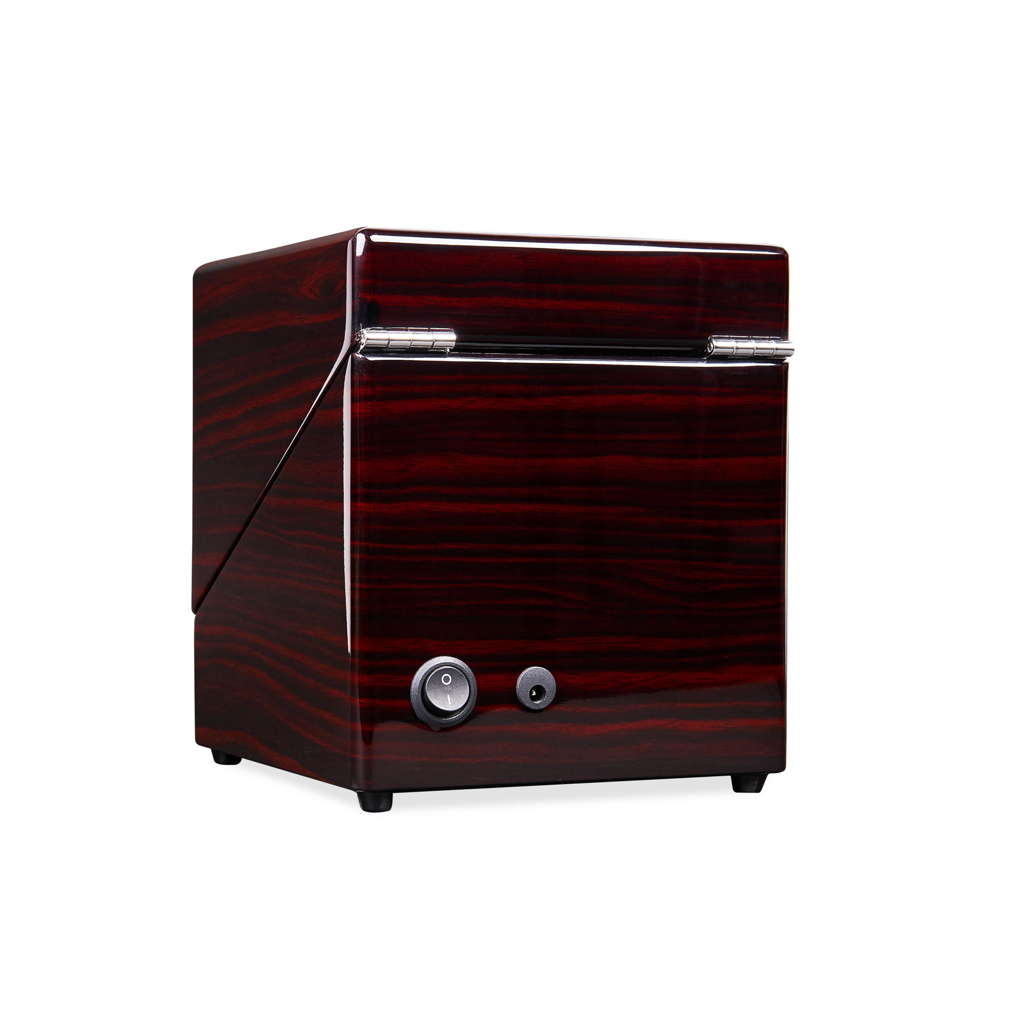 The watch winder's box is finished with Mahogany Wood veneer and then topped off with multiple layers of high-gloss, polished piano lacquer. The inside of the watch winder is lined with khaki velvet to protect your watches from scratches.
