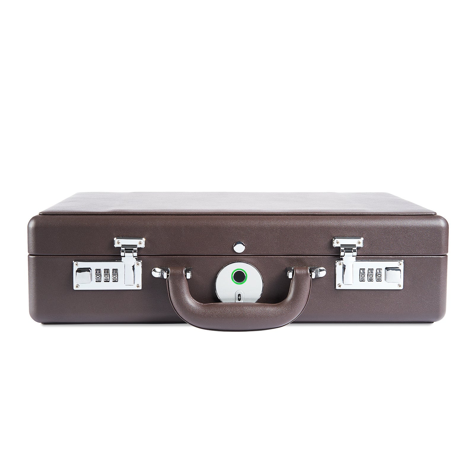 Simply touch the fingerprint sensor with a registered finger to unlock it. When the briefcase is closed, it will lock automatically. The fingerprint lock is powered by an internal battery that can be recharged externally. A maximum of 5 fingerprints can be registered.