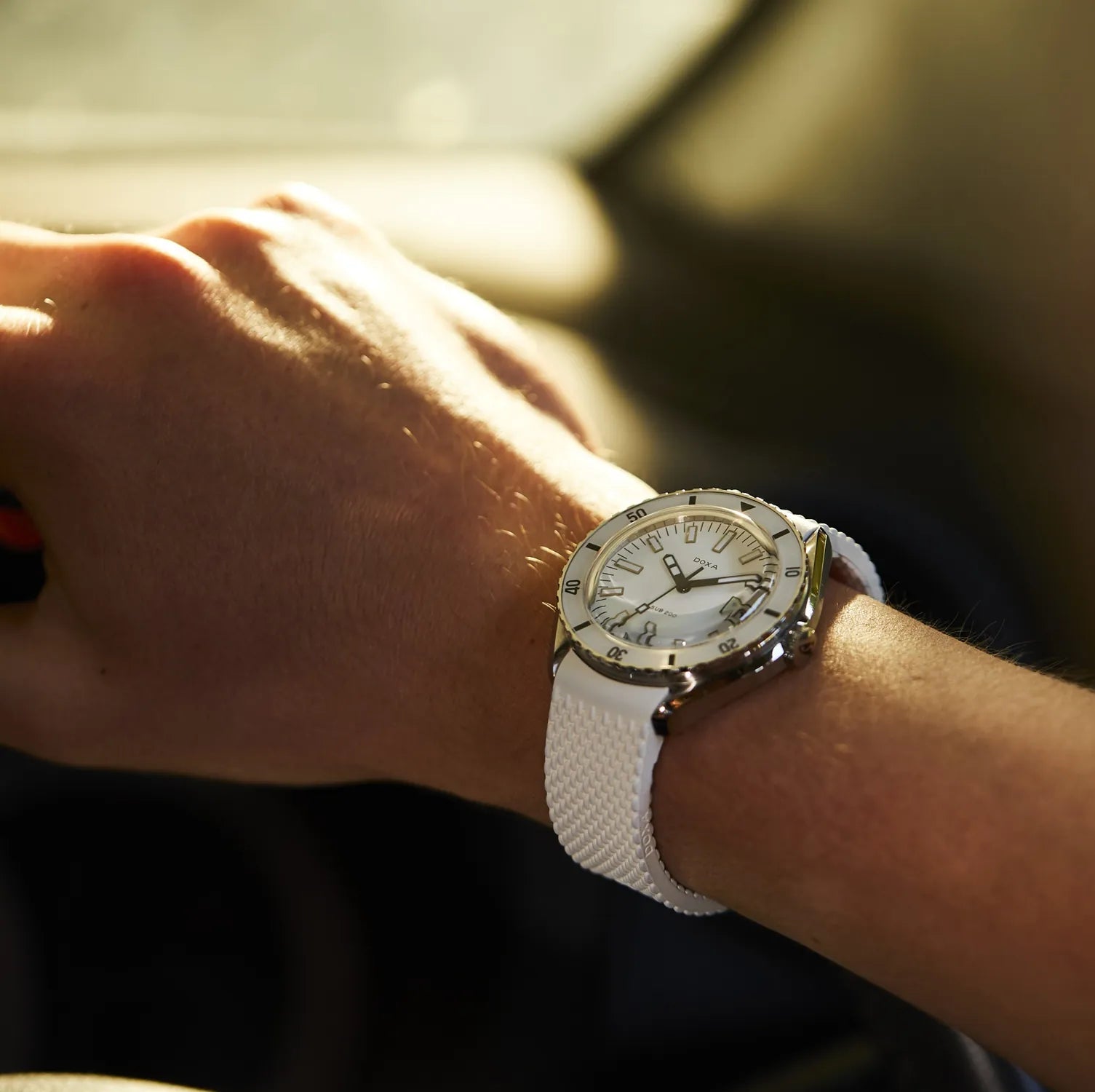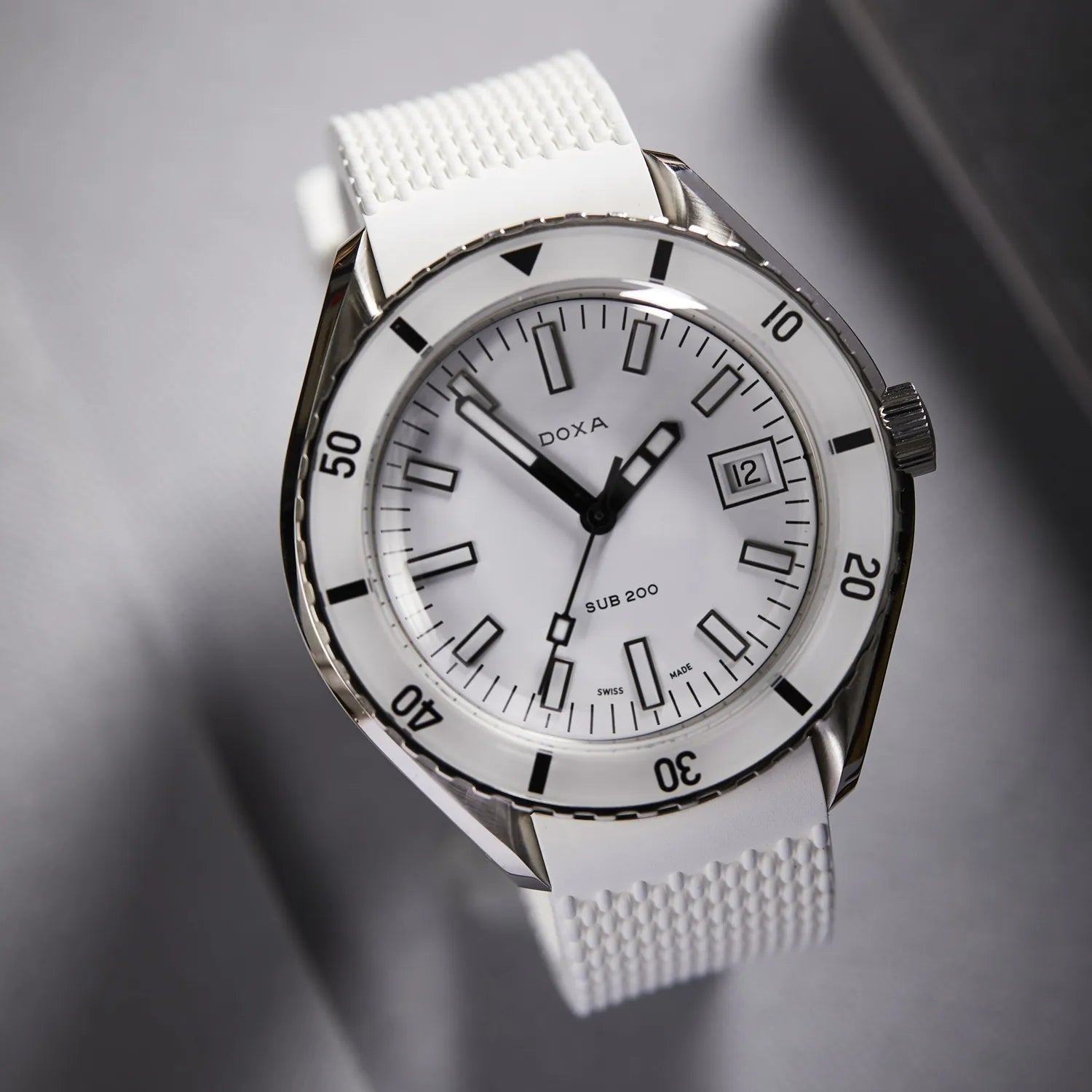 PRE-ORDER: DOXA SUB 200 Whitepearl, rubber strap
