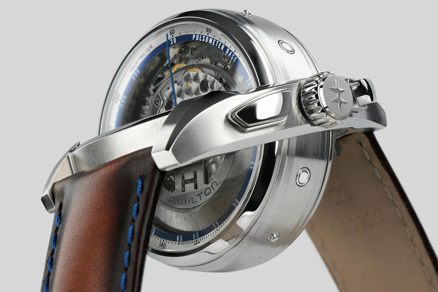 Blending the unconventional and the classic, the Jazzmaster Face-to-Face III is the epitome of double-faced excellence. This Limited Edition of 999 pieces features a reversible case with two dials – one a time-telling face comprising chronograph functions, the other featuring measurement scales and an exhibition movement. Paired with a patina-look brown leather strap, the Jazzmaster Face-to-Face III rewrites the rules by fitting out of the box innovation into a more traditional watch design.