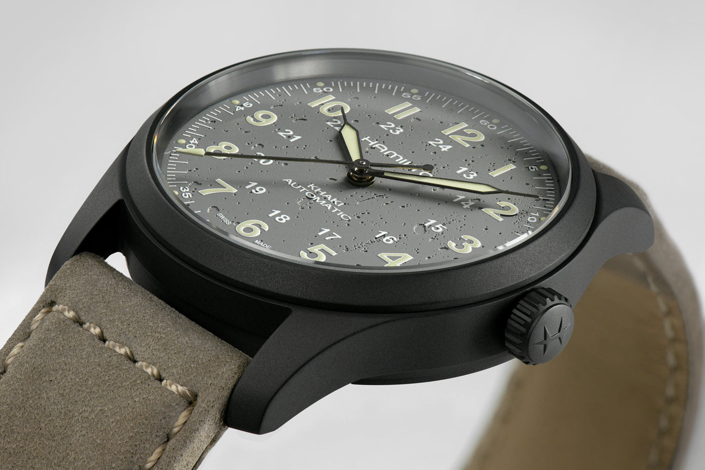 A century-long pedigree in military timepieces combined with lightweight materials make the Khaki Field Titanium Automatic the ultimate all-purpose watch for modern heroes. Truly fit for life in the field, the 38mm case size accentuates comfort and adaptability with a historically authentic design.