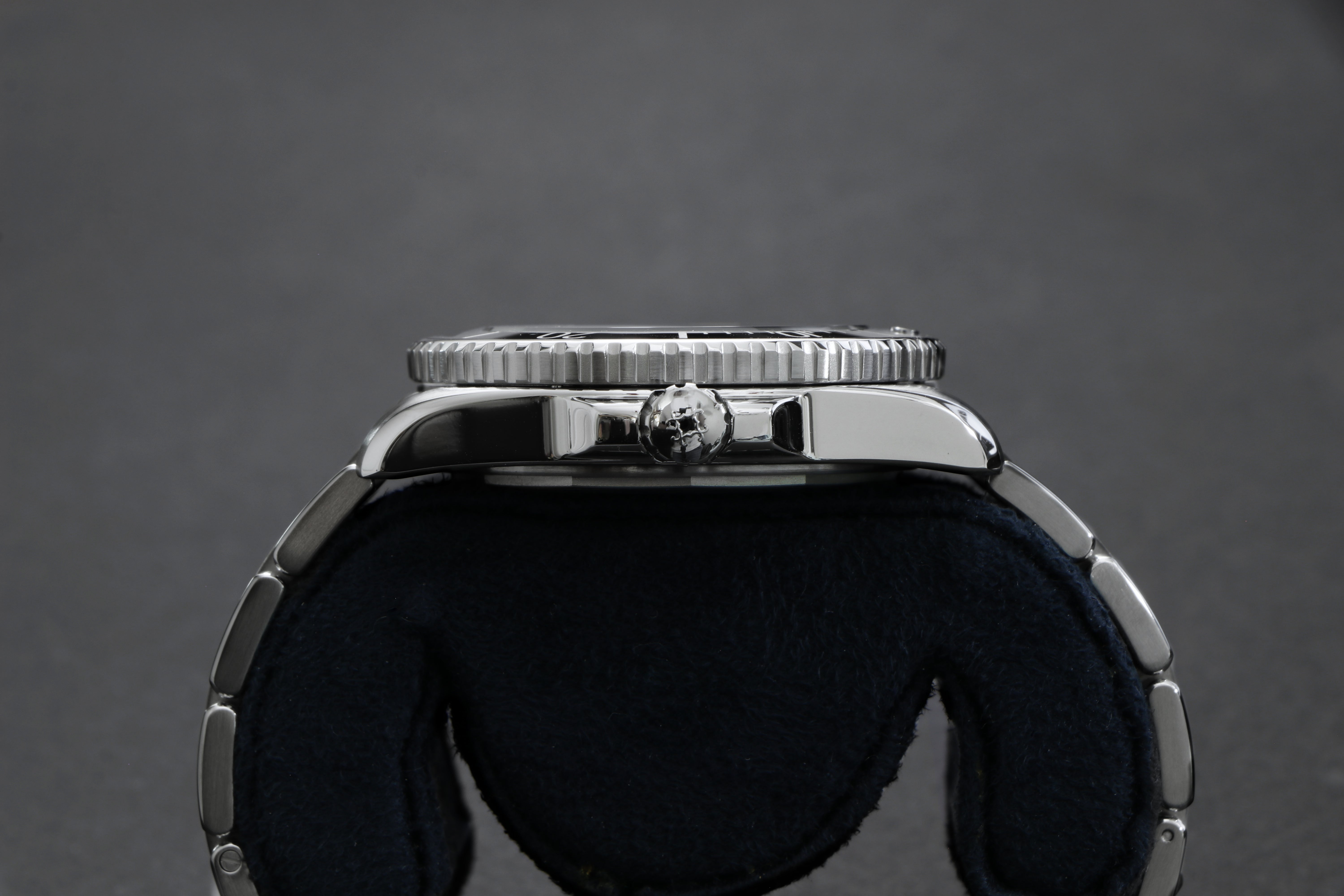 The newest Oceanking has a completely redesigned bezel. The ceramic insert features new indices, typeface, and a 12 o'clock luminescent capsule pip. The patent-pending bezel assembly contains 120 satisfying clicks. Â