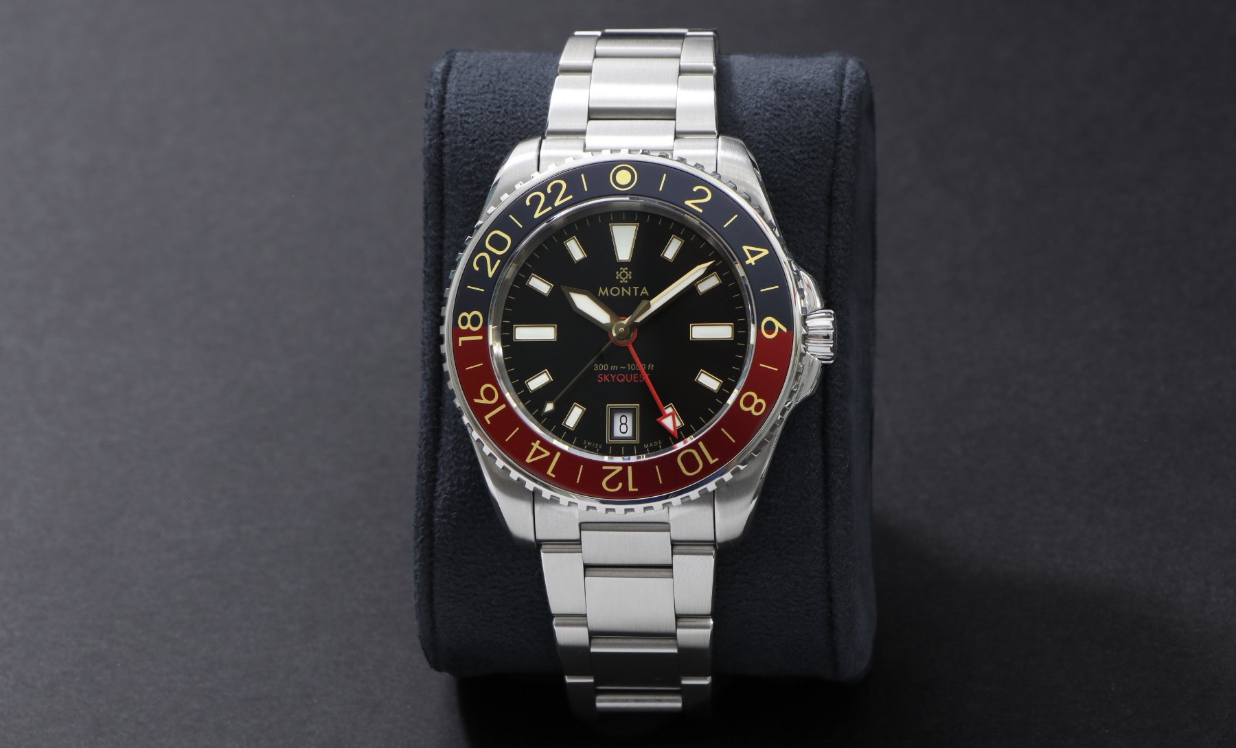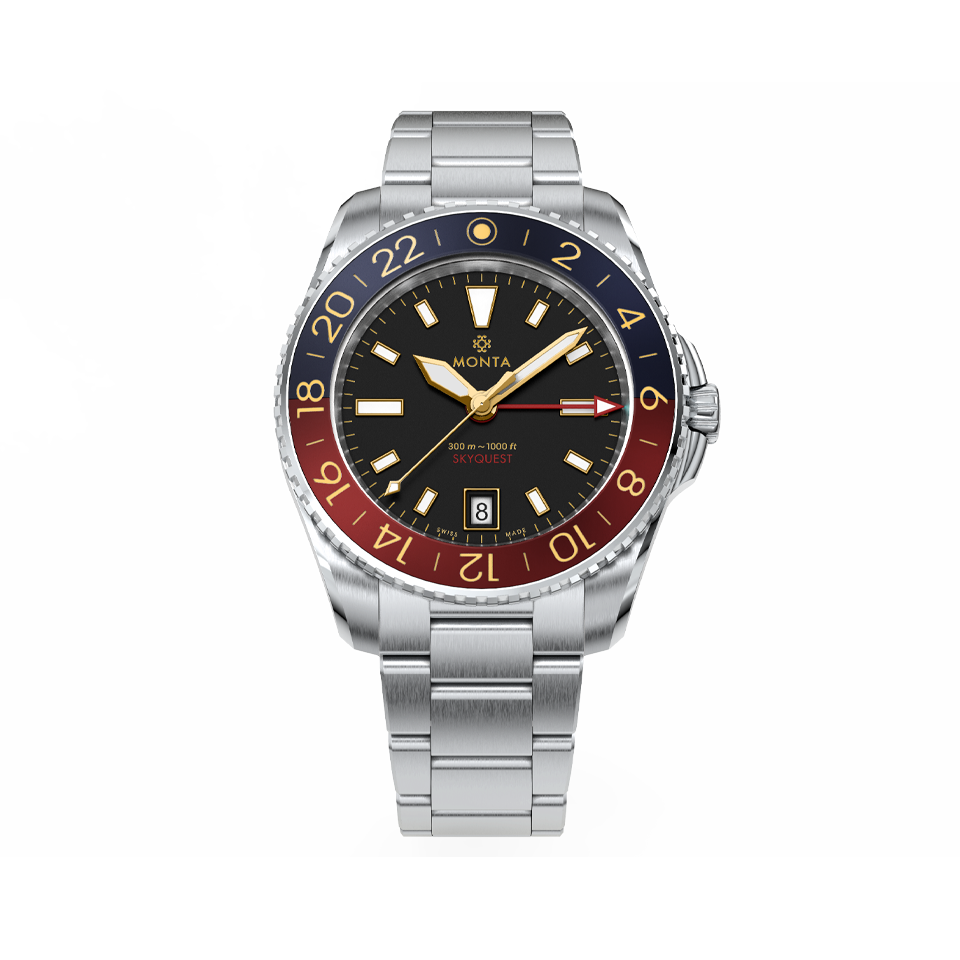 The Skyquest is designed for the MONTA customer with an adventurous spirit. Since its inception, the Skyquest has become a GMT tool watch which is perfectly balanced between capability, precision, and sophistication.