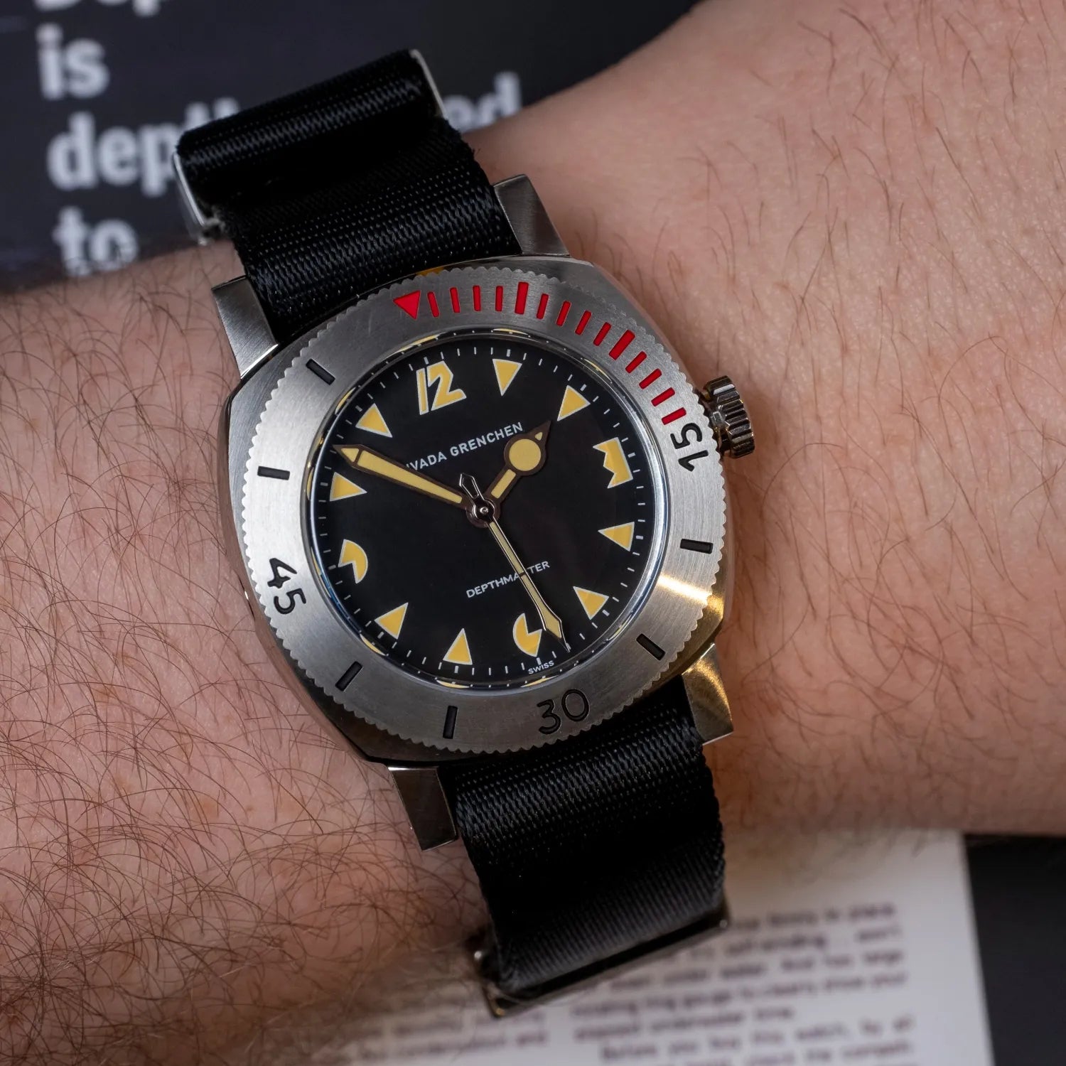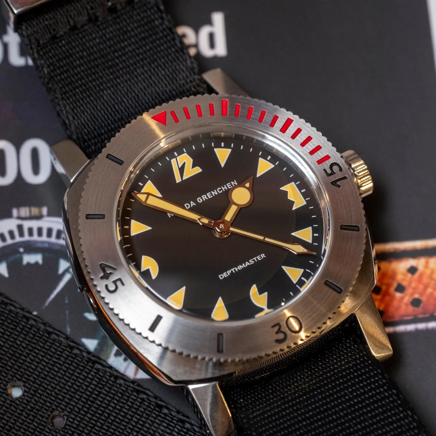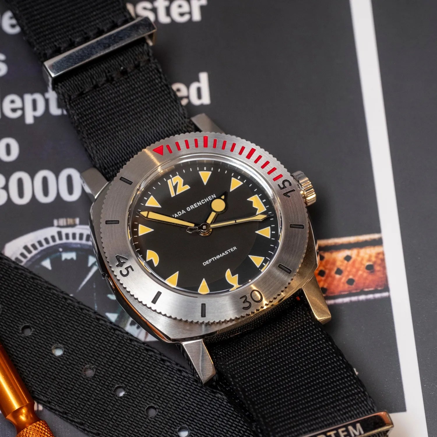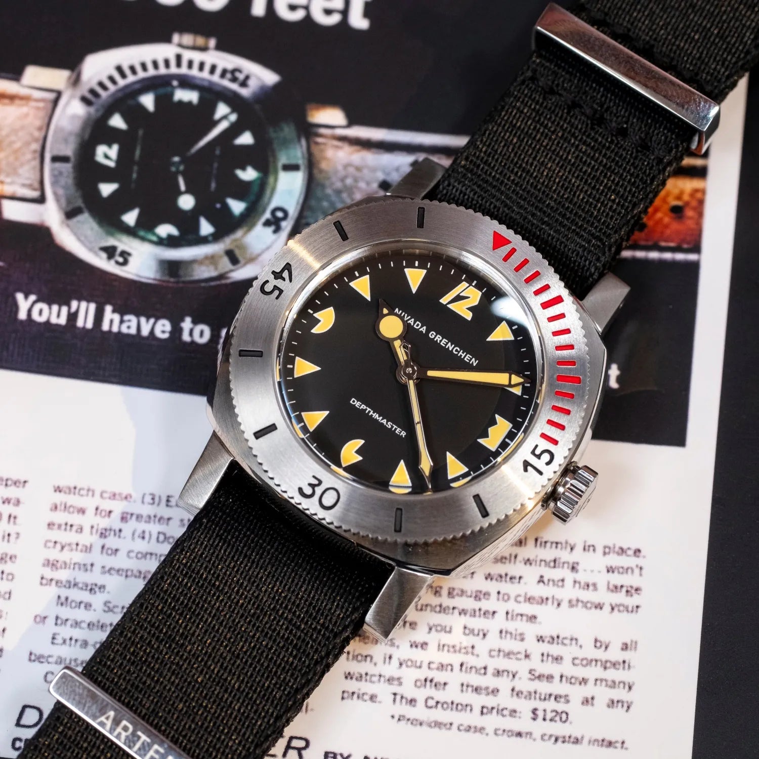 The Depthmaster is based on the 1964 classic from Nivada Grenchen called the "Depthomatic". The Depthomatic was one of the first true dive watches, as it was the first on the market that featured a depth gauge. One year later the Depthmaster came into productions as we know it today. The Depthmaster features a comfortable 38mm cushion style case, unique indices that somewhat resemble an iconic video game character and an astronomical 1000m water resistance.