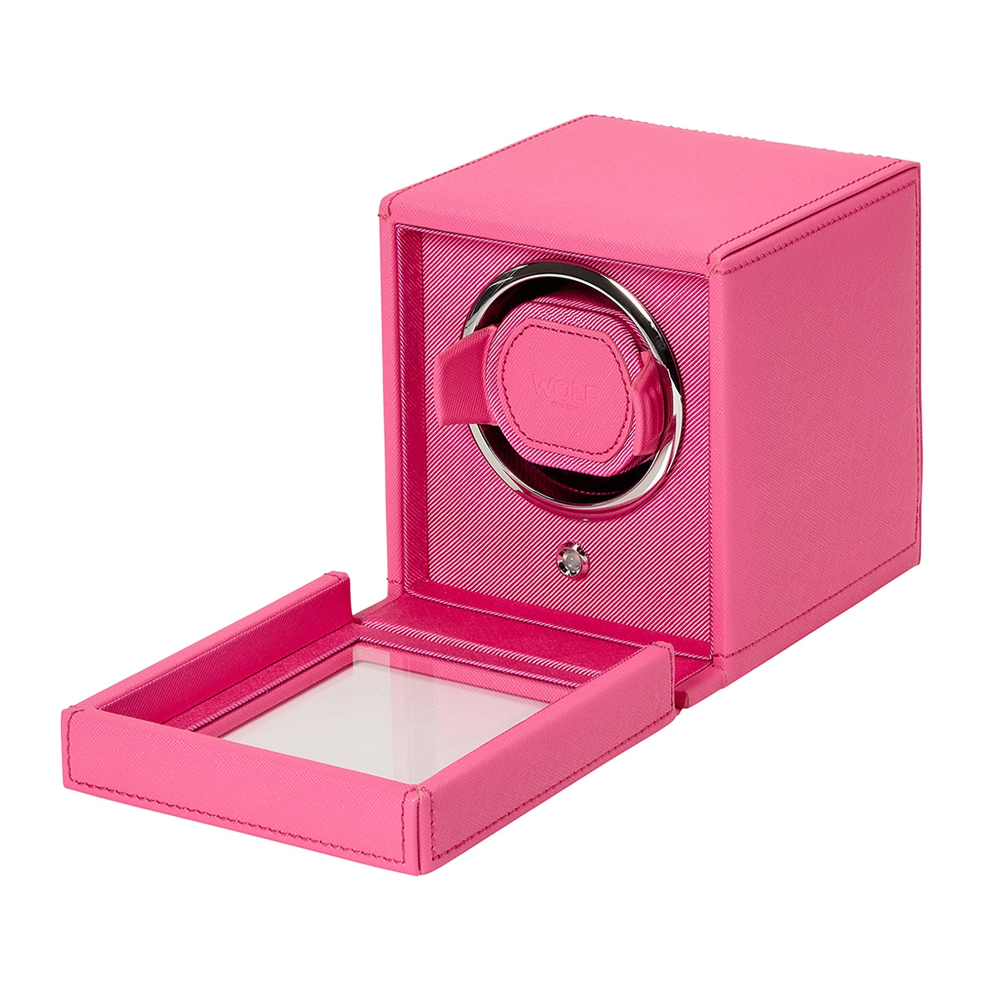 Young, smart and uncomplicated, the cub takes care of your watch with ease. Six sides perfectly proportioned to encase your timepiece safely and precisely. Never miss a beat in your busy life. Features orange vegan leather, chrome finished hardware and single winding module.